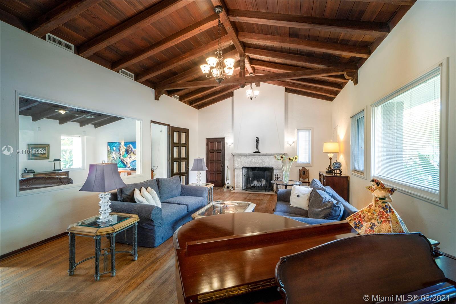 An iconic Mediterranean Revival residence by famed Miami architect Carlos B. Schoeppl. Proudly situated on an expansive double 15,600 SF lot in the heart of Miami Beach, this classic home flaunts superb craftsmanship & bright, spacious interiors. Appreciate the charm of an elegant rotunda staircase entry & grand living room w/ soaring cathedral ceilings & coral stone fireplace. Spacious gas kitchen complimented by huge pantry w/ double refrigerators. Main house boasts a friendly 3 bedroom up/2 down floor plan, with additional guest cottage offering more space. Surrounding grounds are a tropical paradise w/ lush landscaping, sprawling green space & patio/pergola. Nestled just off La Gorce Country Club, this address is a golden opportunity to restore/create your own Mid-Beach masterpiece.