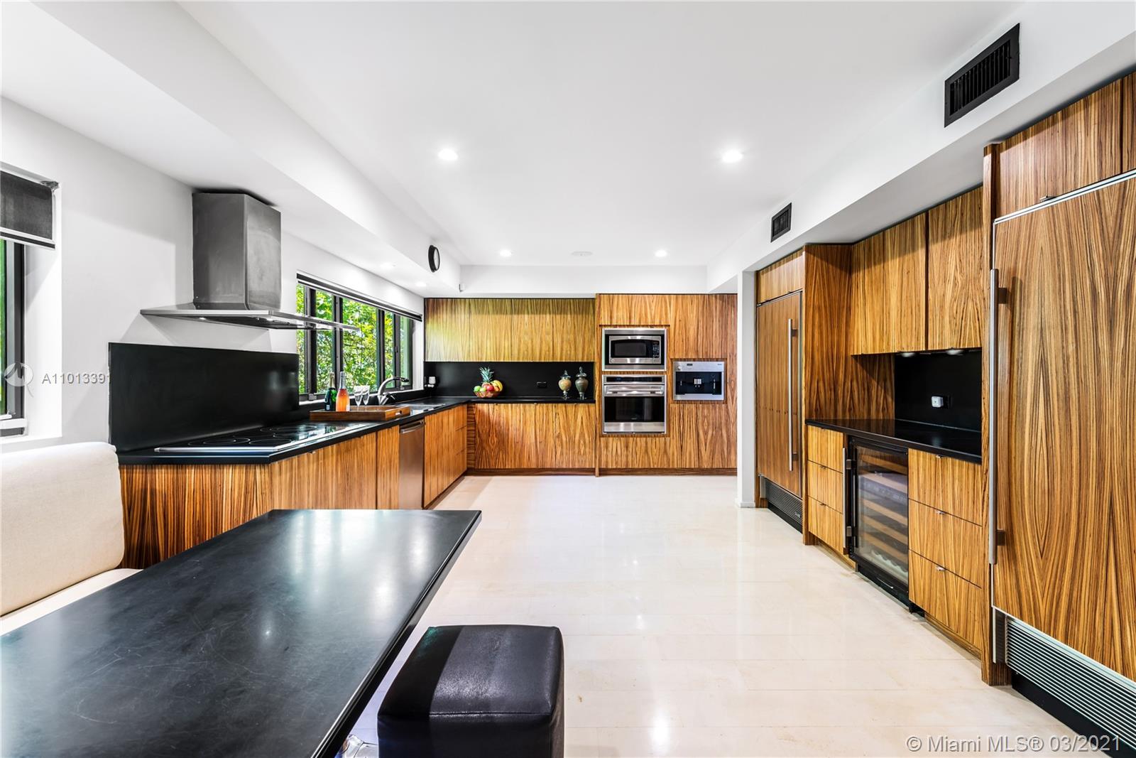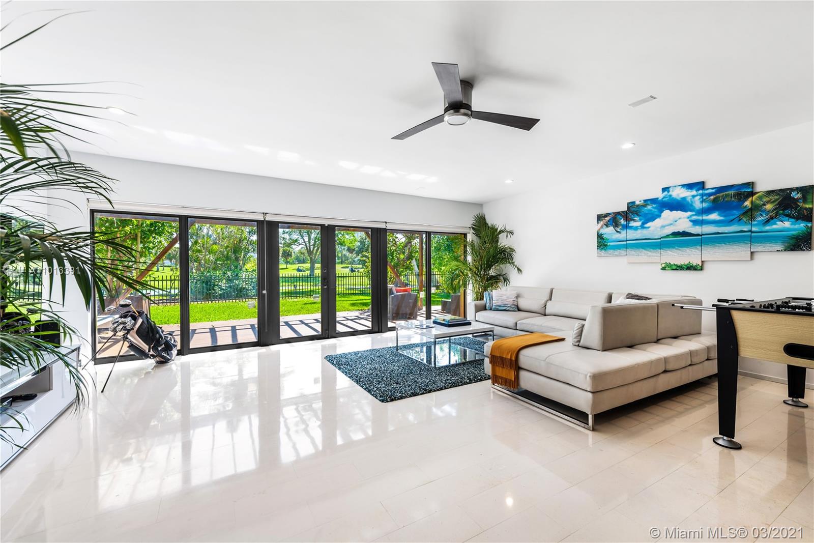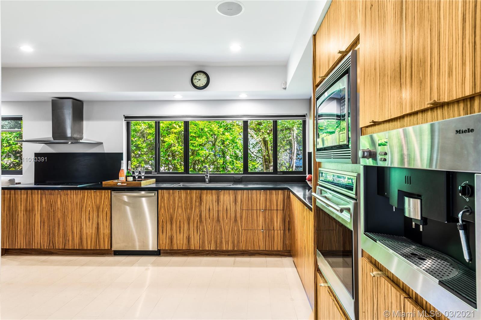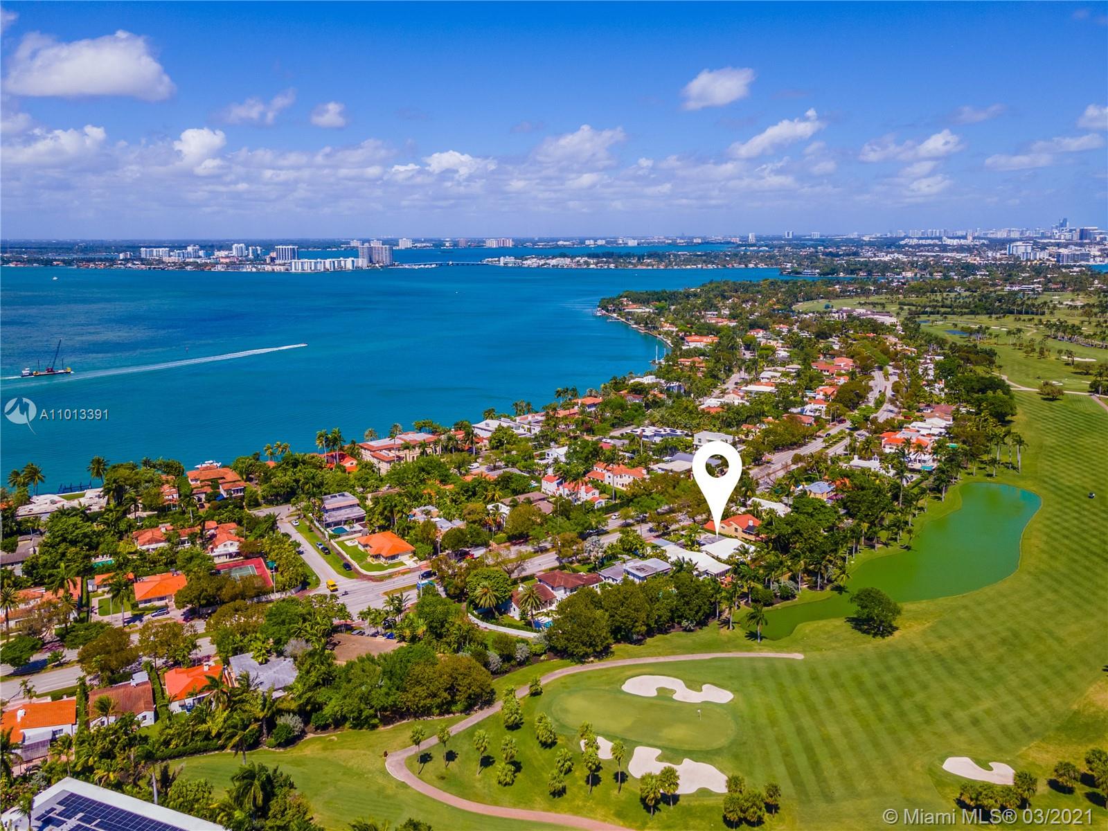 Enjoy premier views of the beach skyline & 11th Fairway on exclusive La Gorce CC greens from this totally renovated immaculate 5 bd/5.5 ba move-in ready home! From the moment you enter, be captivated by bright, airy & open plan boasting floor-to-ceiling complete impact glass & soaring vaulted ceilings. Fully upgraded kitchen sports Miele & Wolf appliances, 2 Sub-Zero refrigerators, wine fridge & breakfast nook. Relax in the spacious master w/ spa-like bath & direct access out to the lush yard overlooking pond & golf course. Attached 1/1 guest quarters w/ private entrance provides separate kitchen & laundry for office, in-laws or flex space. Kitchen & baths tastefully updated. Superior specs include: Lutron lighting, 2-car covered parking, & expansive outdoor wood deck/trellis!