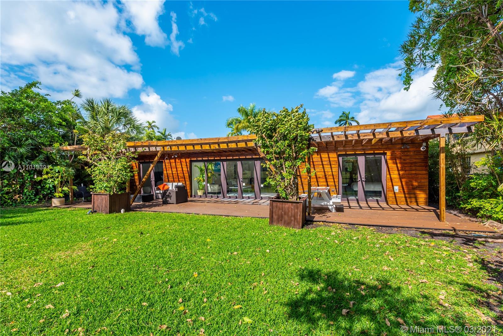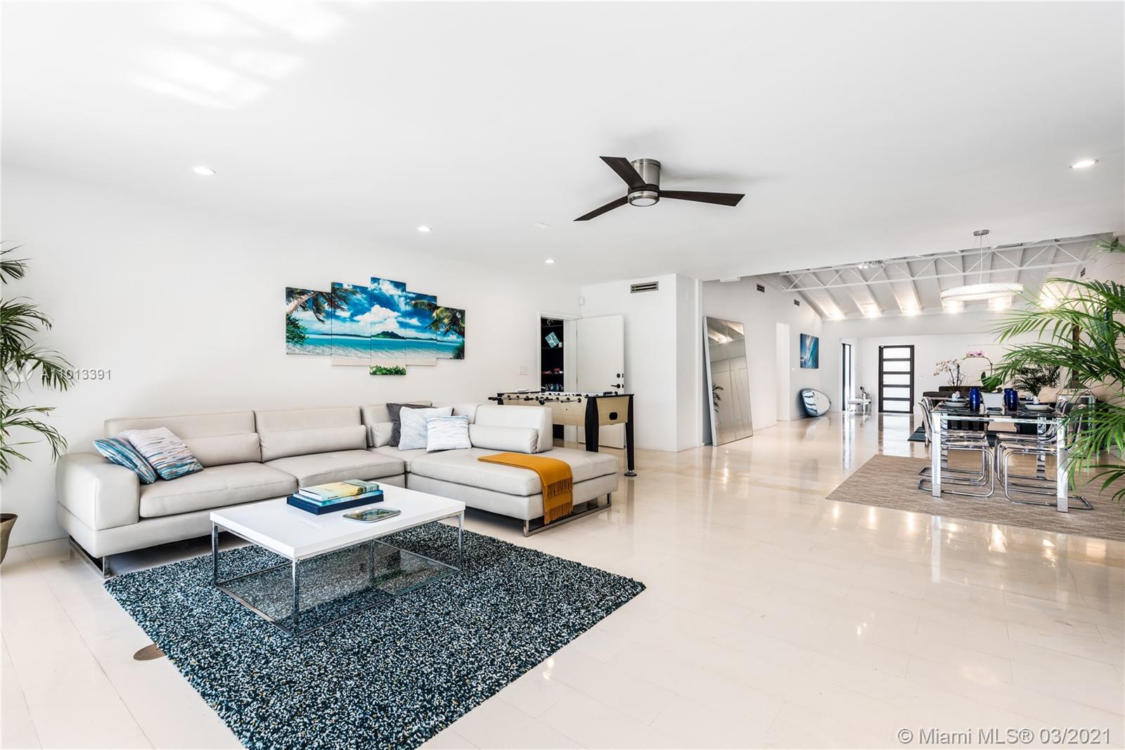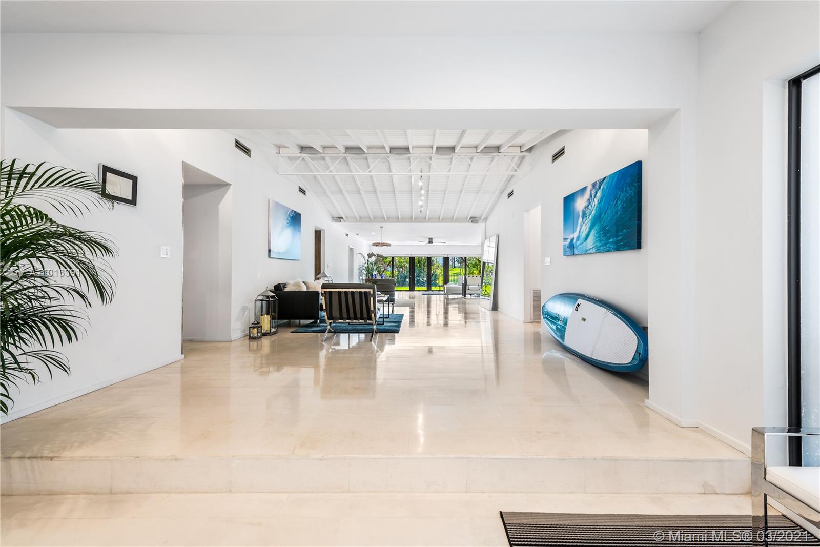 Enjoy premier views of the beach skyline & 11th Fairway on exclusive La Gorce CC greens from this totally renovated immaculate 5 bd/5.5 ba move-in ready home! From the moment you enter, be captivated by bright, airy & open plan boasting floor-to-ceiling complete impact glass & soaring vaulted ceilings. Fully upgraded kitchen sports Miele & Wolf appliances, 2 Sub-Zero refrigerators, wine fridge & breakfast nook. Relax in the spacious master w/ spa-like bath & direct access out to the lush yard overlooking pond & golf course. Attached 1/1 guest quarters w/ private entrance provides separate kitchen & laundry for office, in-laws or flex space. Kitchen & baths tastefully updated. Superior specs include: Lutron lighting, 2-car covered parking, & expansive outdoor wood deck/trellis!