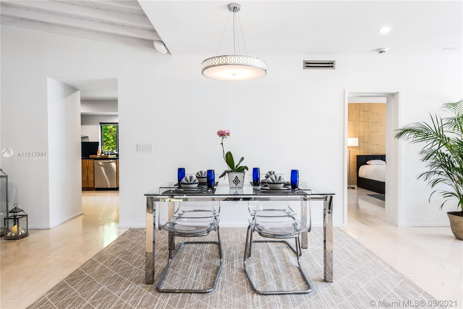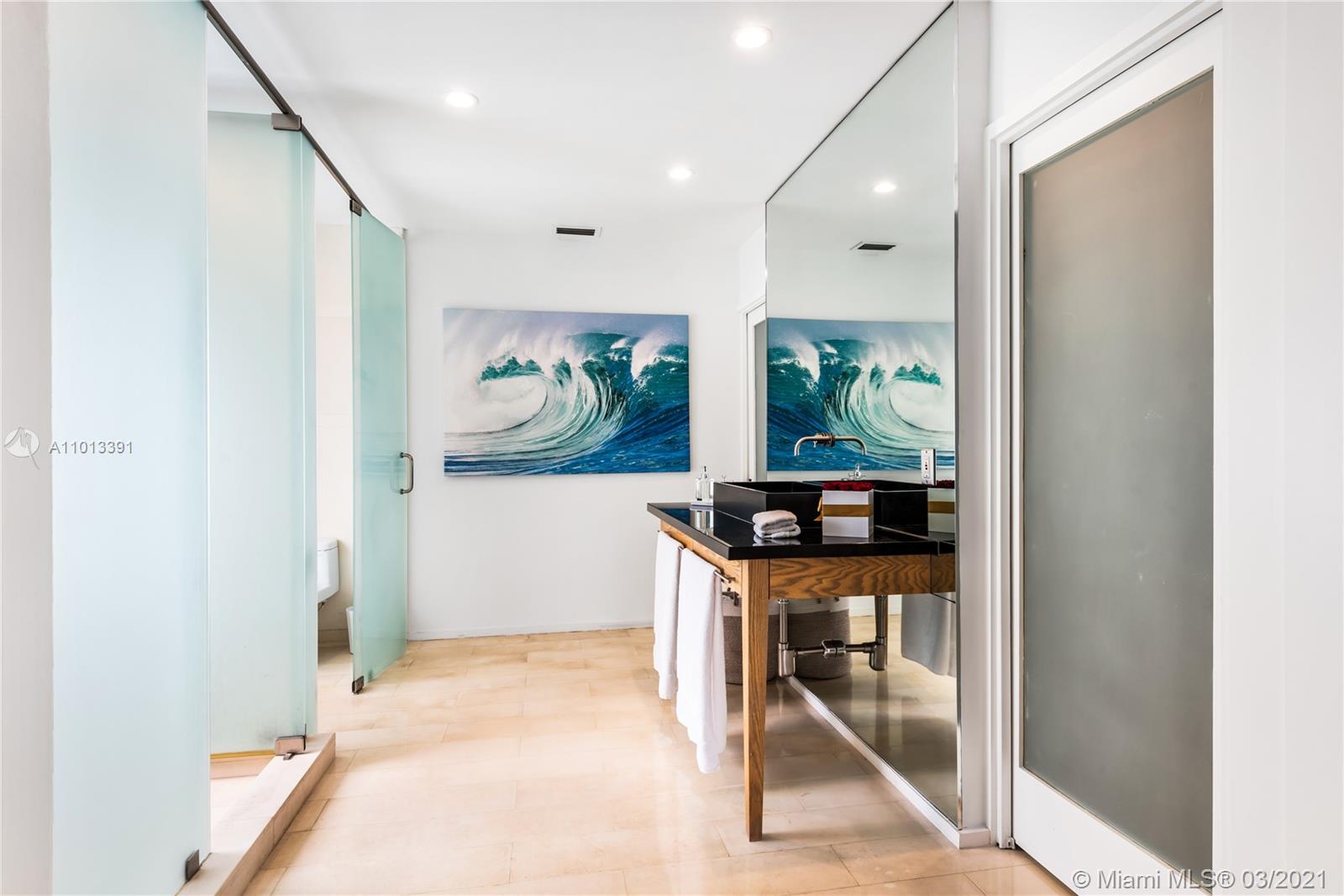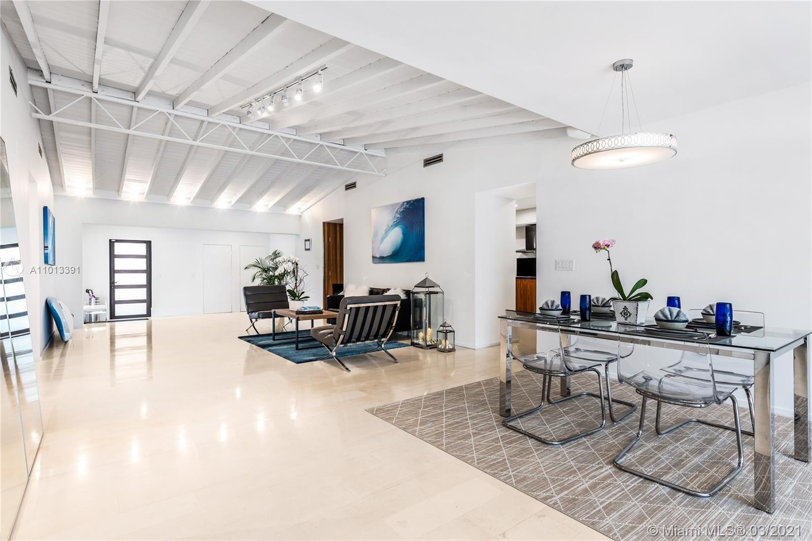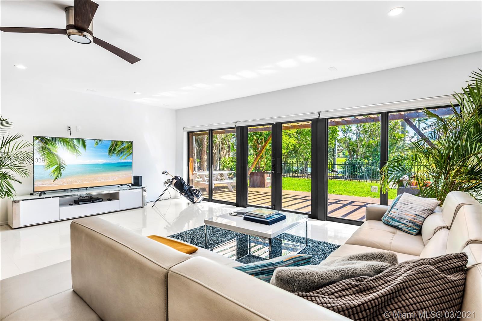 Enjoy premier views of the beach skyline & 11th Fairway on exclusive La Gorce CC greens from this totally renovated immaculate 5 bd/5.5 ba move-in ready home! From the moment you enter, be captivated by bright, airy & open plan boasting floor-to-ceiling complete impact glass & soaring vaulted ceilings. Fully upgraded kitchen sports Miele & Wolf appliances, 2 Sub-Zero refrigerators, wine fridge & breakfast nook. Relax in the spacious master w/ spa-like bath & direct access out to the lush yard overlooking pond & golf course. Attached 1/1 guest quarters w/ private entrance provides separate kitchen & laundry for office, in-laws or flex space. Kitchen & baths tastefully updated. Superior specs include: Lutron lighting, 2-car covered parking, & expansive outdoor wood deck/trellis!
