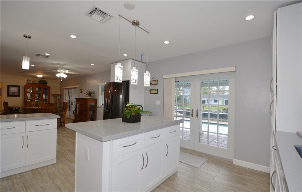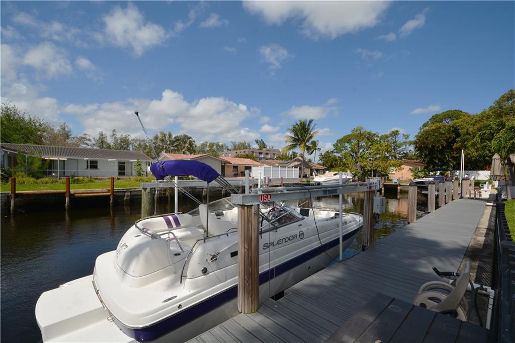 This property has all the important aspects done and permitted! New split AC system, new duct work, upgraded electrical panel, completely remodeled kitchen with center island and bar seating, new long plank wood look tile throughout, High impact windows, French doors and garage door, new tank-less water system, new whole house water filtration system, salt water filtration system for the screened in pool, new 69’ dock, newly reinforced seawall, new boatlift, new well for drastically reduced water bills and more! This 3 bed, 2 bath pool home is located on 75’ of ocean access waterfront. The lowest fixed bridge is 6’ at high tide and the intracoastal is only 25 minutes away! Excellent neighborhood with sidewalks! Close to the I-95 exit, all private & public schools and 3 miles to the beach!