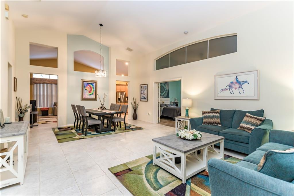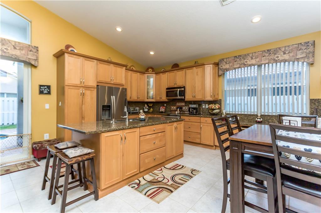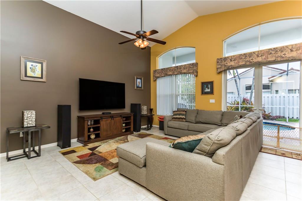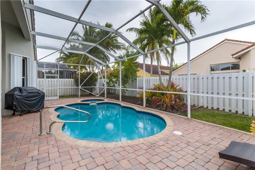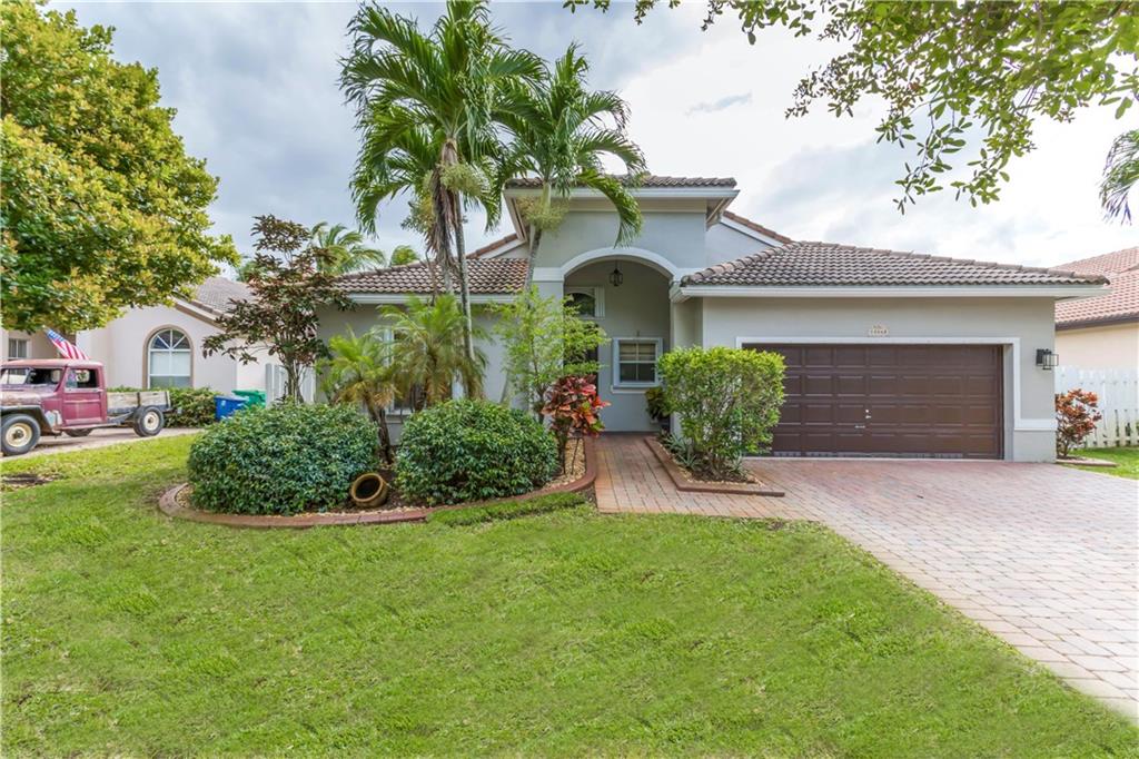 GORGEOUS ONE STORY POOL HOME WITH FOUR BEDROOM, TWO AND A HALF BATHS LOCATED IN SUNSET LAKES! THIS HOME FEATURES VOLUME CEILINGS, TILE FLOORING IN THE MAIN LIVING AREAS, AND WOOD LAMINATE IN BEDROOMS. SPACIOUS MASTER SUITE WITH WALK-IN CLOSET, AND UPGRADED MASTER BATH WITH NEW VANITIES. KITCHEN FEATURES GRANITE COUNTERTOPS, WOOD CABINETRY AND NEWER STAINLESS STEEL APPLIANCES. HOME IS PROTECTED BY ACCORDION SHUTTERS AND IMPACT FRENCH DOORS! EXTERIOR OF THE HOME WAS RECENTLY PAINTED. BRAND NEW A/C JUST 3 MONTHS NEW! PEACEFUL FENCED-IN BACKYARD WITH A SCREEN ENCLOSED POOL!