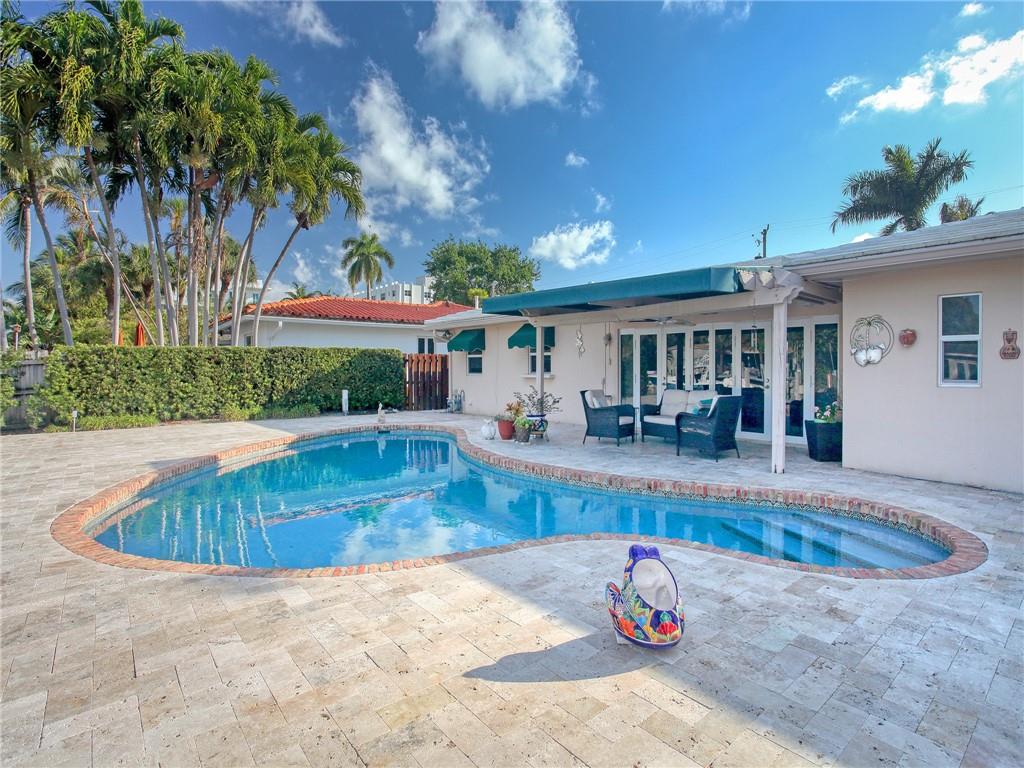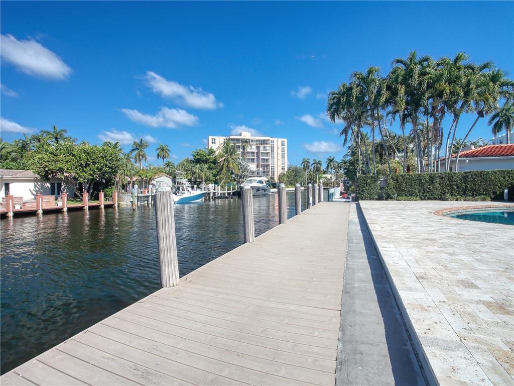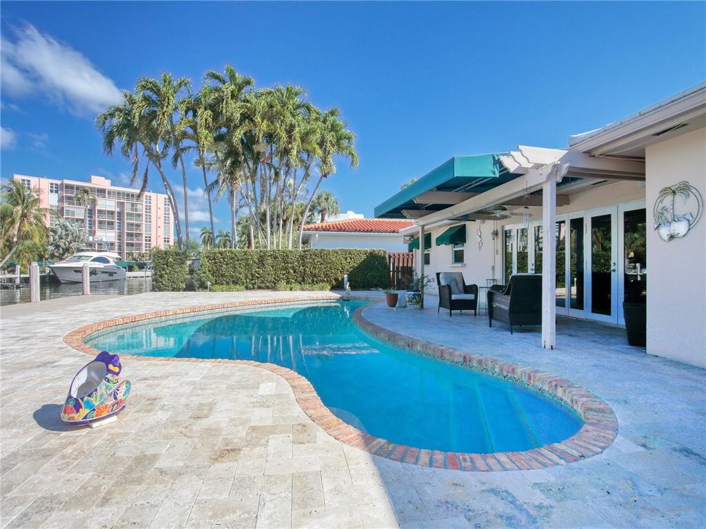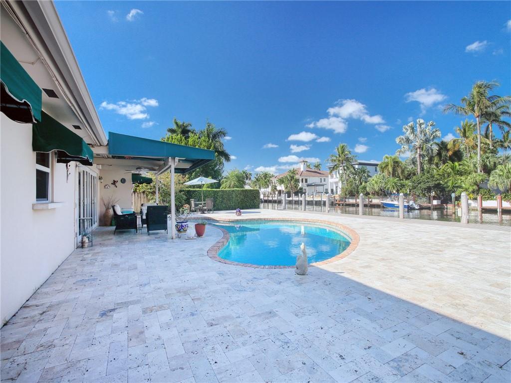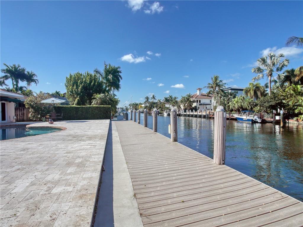 This waterfront beauty located off East Las Olas Boulevard boasts of 75ft. of water frontage with a maintenance free faux wood dock. Better yet.....no fixed bridges. Only minutes to the intracoastal and the New River. The open floor plan is perfect for entertaining your guests inside or entertain outside around the expansive pool. New travertine pavers surround the pool and extend to the awning covered patio. The kitchen gleams with Frigidaire appliances, custom cabinets and Corian counter tops. For your protection and safety, the home has impact windows and doors throughout. This home is exceptional and a rare find in east Fort Lauderdale!