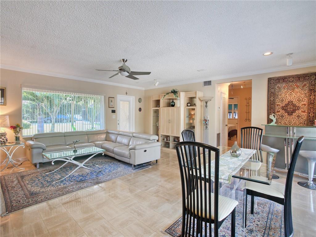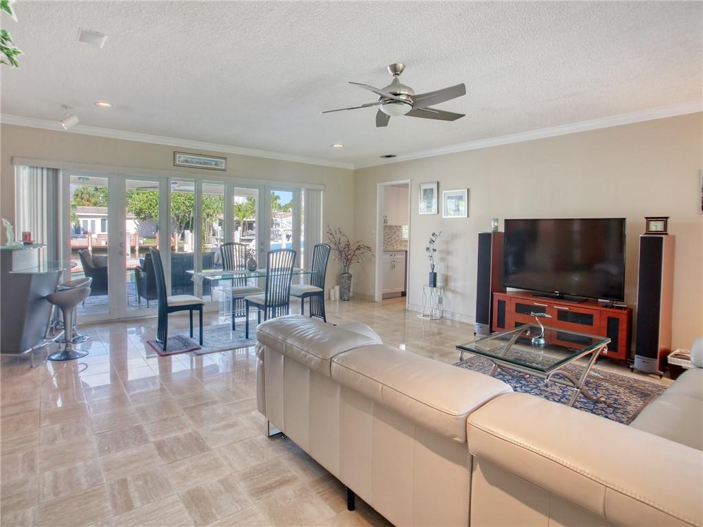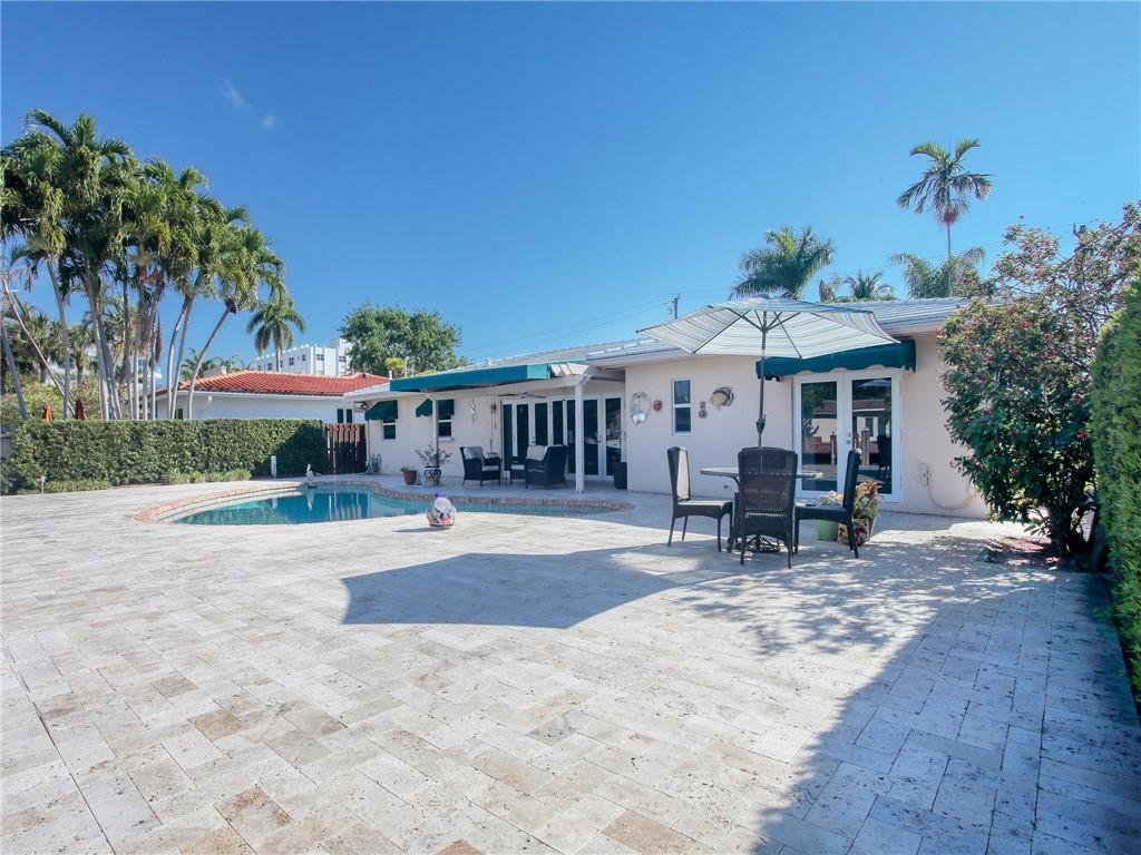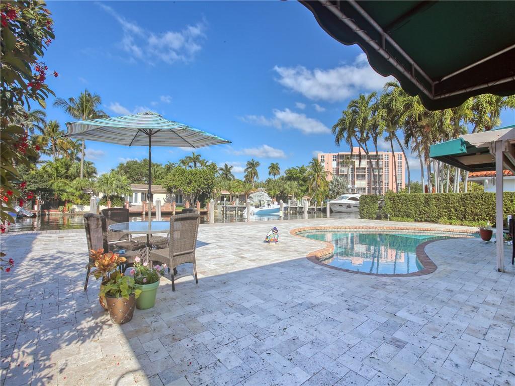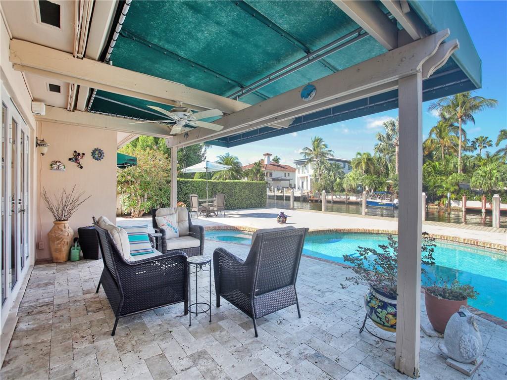 This waterfront beauty located off East Las Olas Boulevard boasts of 75ft. of water frontage with a maintenance free faux wood dock. Better yet.....no fixed bridges. Only minutes to the intracoastal and the New River. The open floor plan is perfect for entertaining your guests inside or entertain outside around the expansive pool. New travertine pavers surround the pool and extend to the awning covered patio. The kitchen gleams with Frigidaire appliances, custom cabinets and Corian counter tops. For your protection and safety, the home has impact windows and doors throughout. This home is exceptional and a rare find in east Fort Lauderdale!
