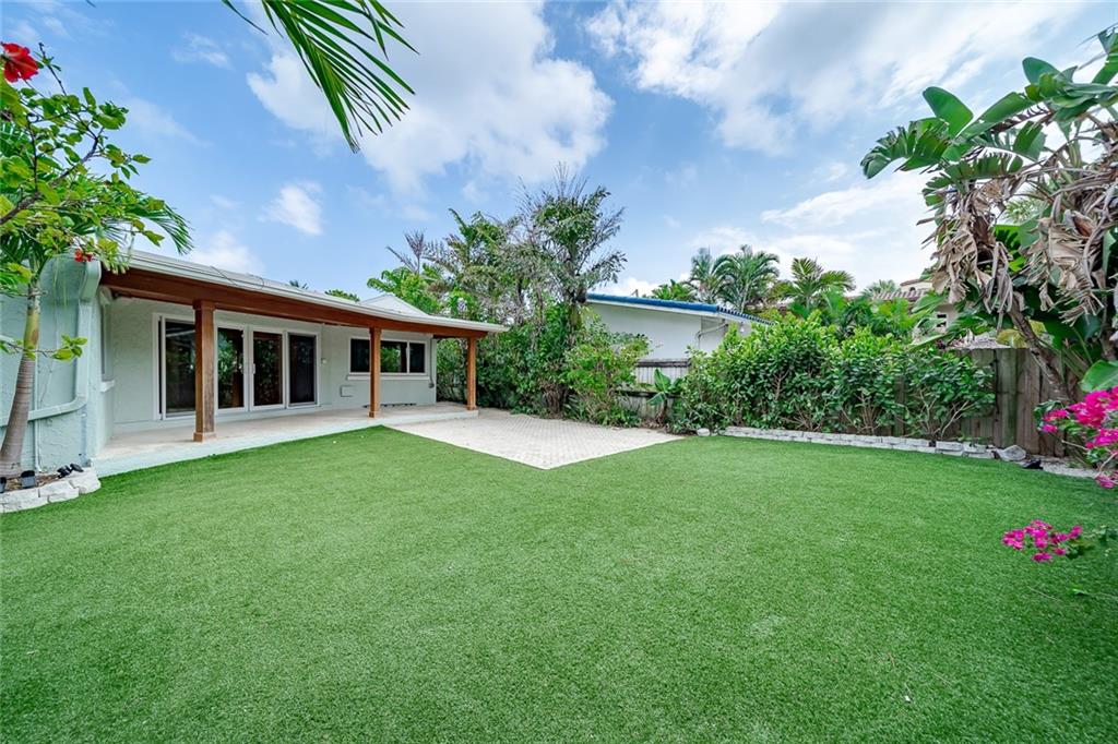 ADORABLE beach house in one of Ft. Lauderdale's best hidden neighborhoods and ONE HOME FROM THE BEACH. Located just TWO homes from Vista Park and BEACH ACCESS, this beach home has a brand new metal roof and high-impact windows/doors. The high-arched, wood-beamed pecky cypress ceiling in the open living area is a great addition to the light wood floors and fireplace; all naturally lit by the beautiful outdoors. In addition to the 3 bedrooms, there's an extra room ideal for an office/nursery. Two bedrooms share a Jack and Jill bathroom with shower and the master bedroom bathroom was completely redone with separate tub and shower. Ample storage in the back and plenty of closet space. Nice-sized driveway plus add'l driveway for golf cart. Current owner has plans for a 3-story new residence.