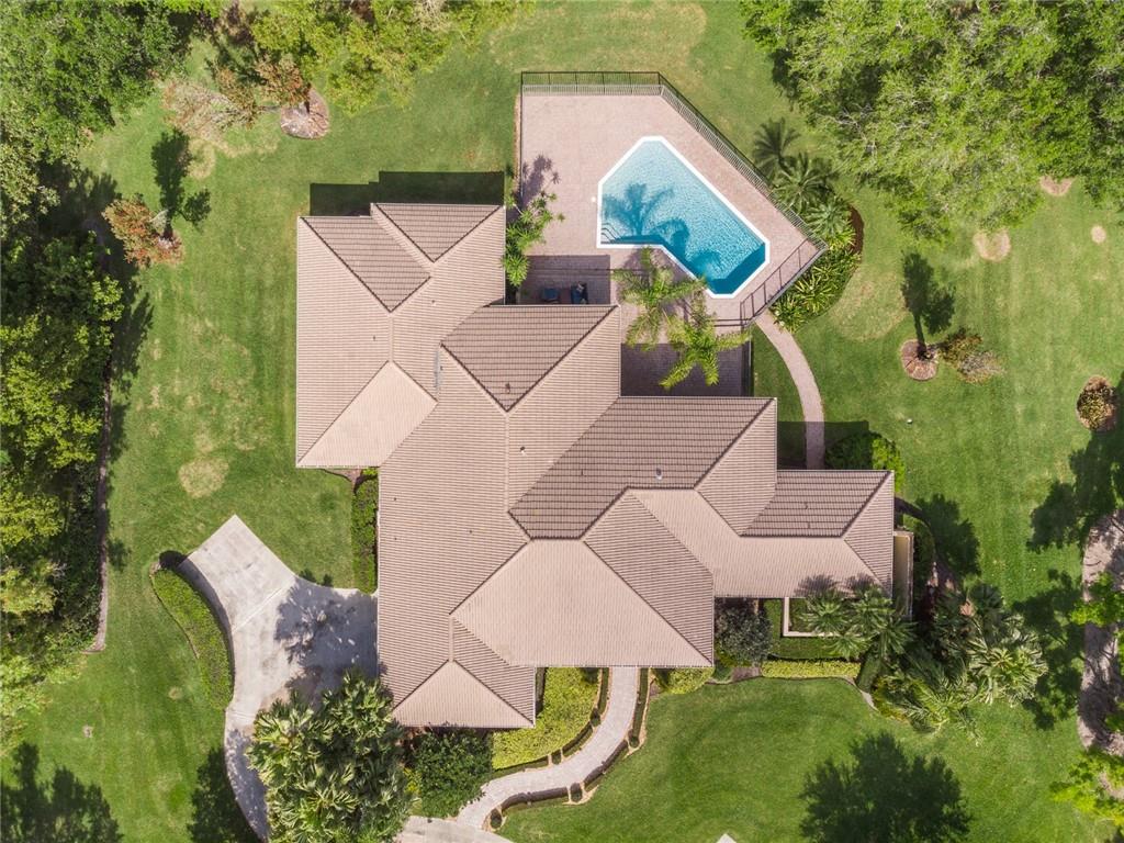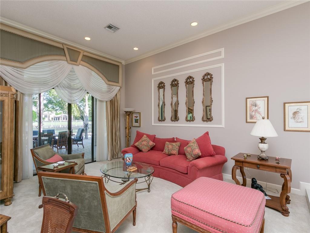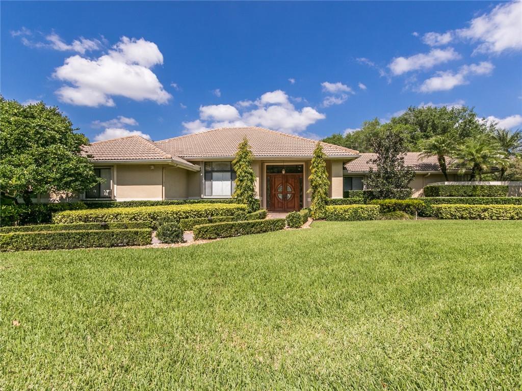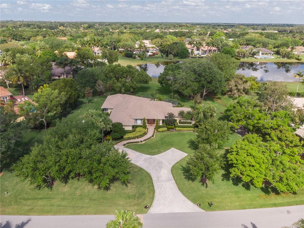 Windmill Ranch Estates - This beautifully landscaped Ranch Style home is located on over 68,523 sf (1.57Acre) Waterfront lot. The Residence has been well maintained by the original owners. The 4 Bedroom 3.5 Bath Pool home has a split bedroom plan with volume ceilings and crown molding throughout. The Kitchen has custom lighted cabinetry, granite countertops, built-in kitchen aid microwave, wall oven & warming oven. Subzero refrigerator plus a Bosch dishwasher. The open kitchen & family room areas are combined for dining as well as entertainment. Full size separate laundry room equipped with washer, dryer, built-in storage cabinetry and sink. The two car garage is equipped with vehicle charging station. There is approximately 562 sf of Patio and Pool area with fantastic lakefront views.