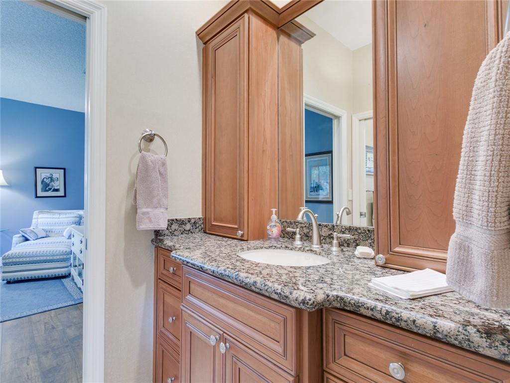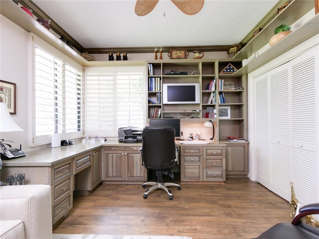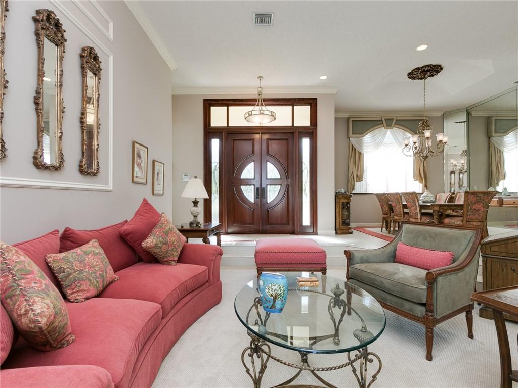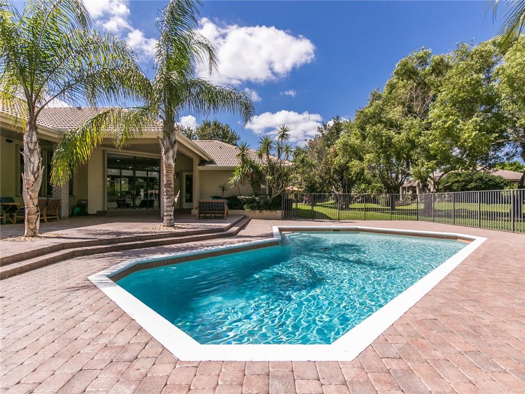 Windmill Ranch Estates - This beautifully landscaped Ranch Style home is located on over 68,523 sf (1.57Acre) Waterfront lot. The Residence has been well maintained by the original owners. The 4 Bedroom 3.5 Bath Pool home has a split bedroom plan with volume ceilings and crown molding throughout. The Kitchen has custom lighted cabinetry, granite countertops, built-in kitchen aid microwave, wall oven & warming oven. Subzero refrigerator plus a Bosch dishwasher. The open kitchen & family room areas are combined for dining as well as entertainment. Full size separate laundry room equipped with washer, dryer, built-in storage cabinetry and sink. The two car garage is equipped with vehicle charging station. There is approximately 562 sf of Patio and Pool area with fantastic lakefront views.