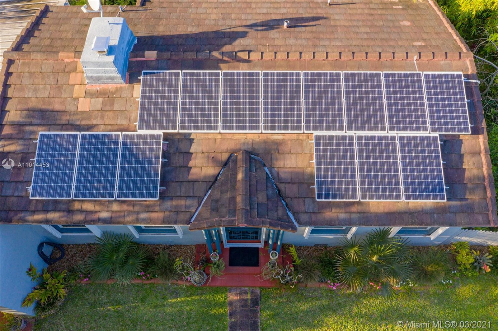 Where serenity & sustainability come together! This tranquil, energy efficient 2/1 sustainable home with garage features over 400KW a month of free energy, including solar hot water from its own solar panels, 16 SEER AC unit, reflective heat barrier & extra insulation in attic & heat reflective film on windows keeping the home cool while capturing the views. This classic home is encapsulated on a 9,225 lot with towering oaks, tropical fruit trees, diverse & exotic palms, orchids & plants. This green home of the future offers a tiled sunroom with french doors overlooking a zen meditation garden & Koi pond with waterfall. Updated working fireplace, wood and tile floors throughout, newly renovated kitchen, updated bathroom and a 10 year old roof with warranty. Make this green home your own!