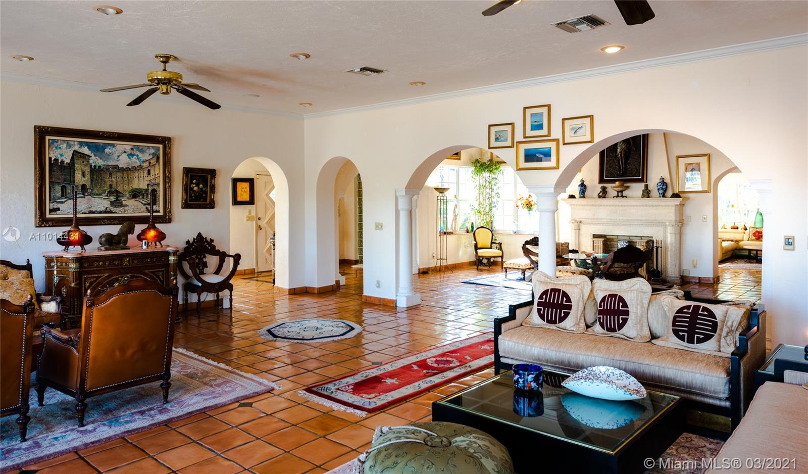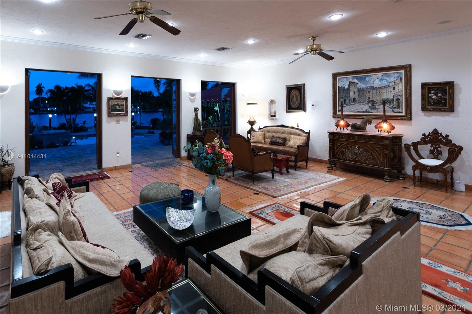 Dramatic Waterfront 4/4 5,000+ sf Mediterranean villa with wide water views and dock on large lot with resort-style swimming pool, spa and tennis court surrounded by tropical foliage in sought-after Hollywood Lakes neighborhood. A few short blocks from the beach and many shops, restaurants and nightlife. Home features dramatic soaring ceilings throughout massive living area with high French doors uniting interior with outdoor paradise. Lots of charm and character and many updates. Quality construction engineered to endure. Ideal to entertain with ample parking. Great for boating, jet ski, paddle board. Your own personal Florida paradise.