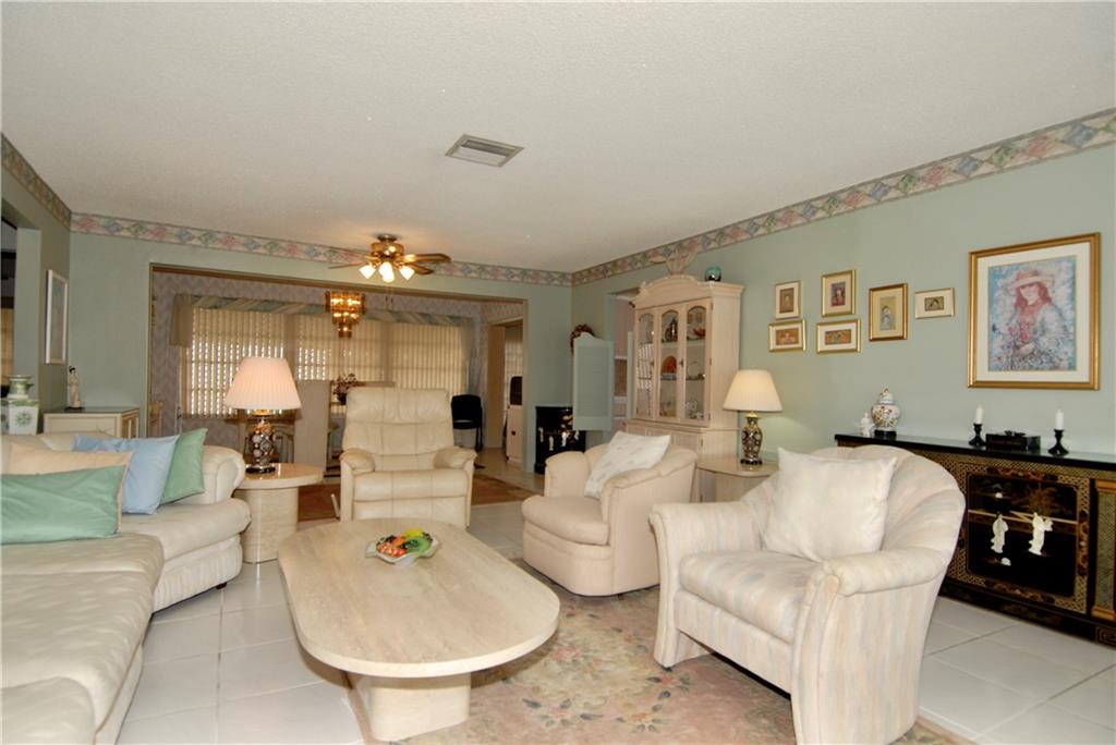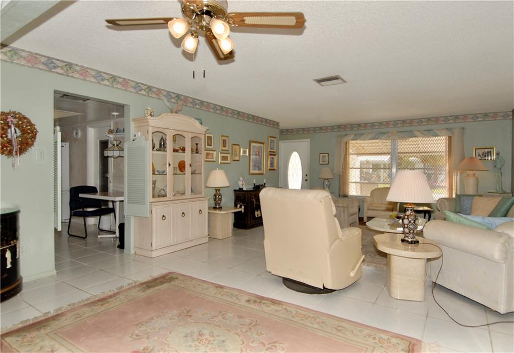 Immaculate, luxury living in the largest model with NO recreation/land lease in Leisureville! Free golf for all owners. NEW ROOF in 2012. Remodeled kitchen with newer cabinetry. Tiled floors in the living room, dining room, Florida room and kitchen. Active senior community with two heated swimming pools, two clubhouses, an Executive 9 hole golf course, a community bus, and many activities. Close to beach, entertainment, and I95. Pets welcome.