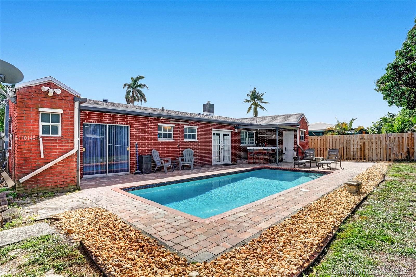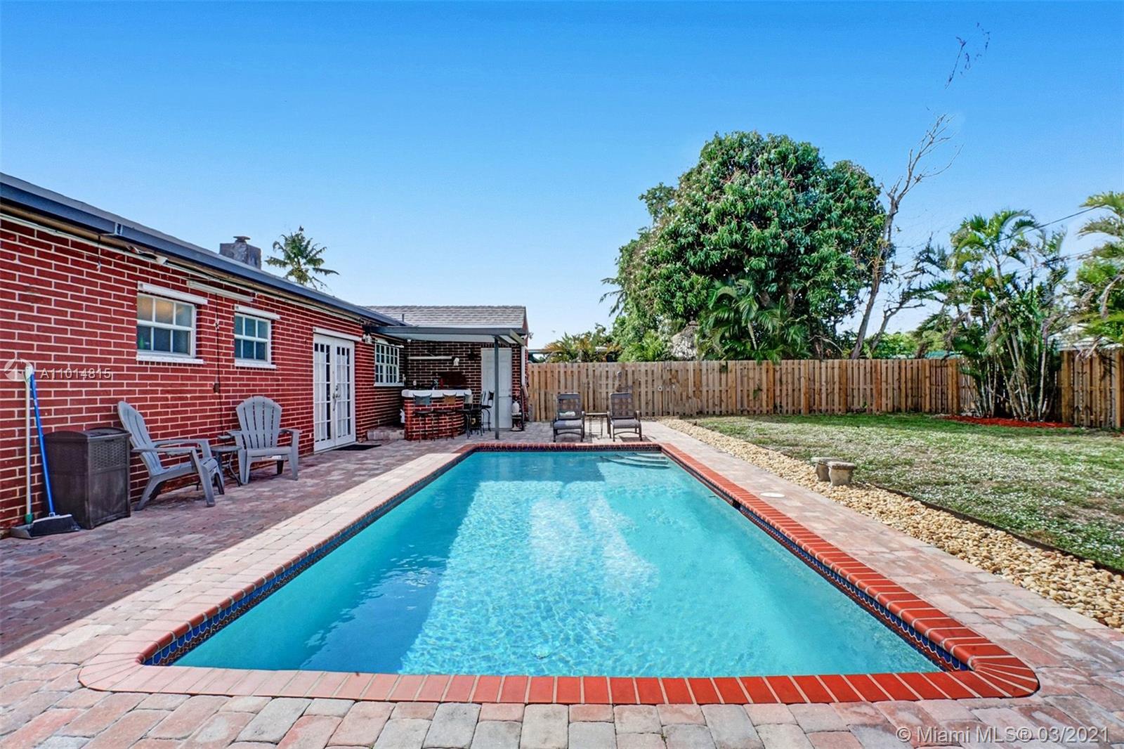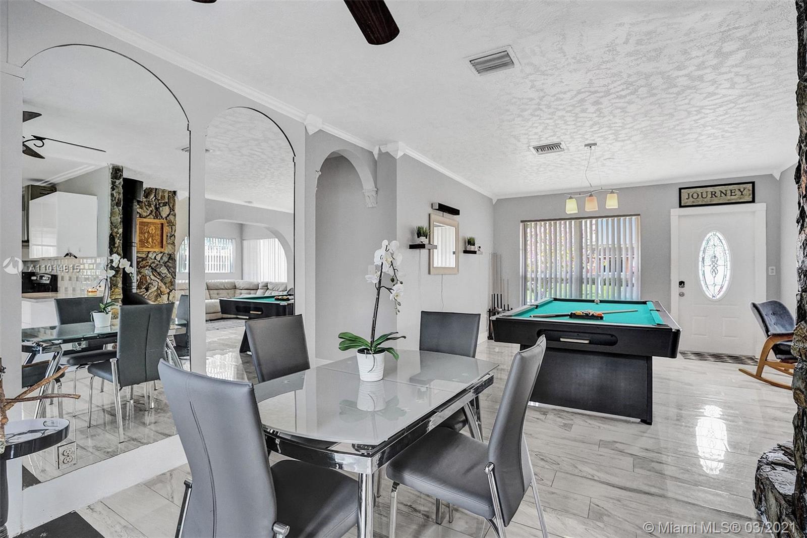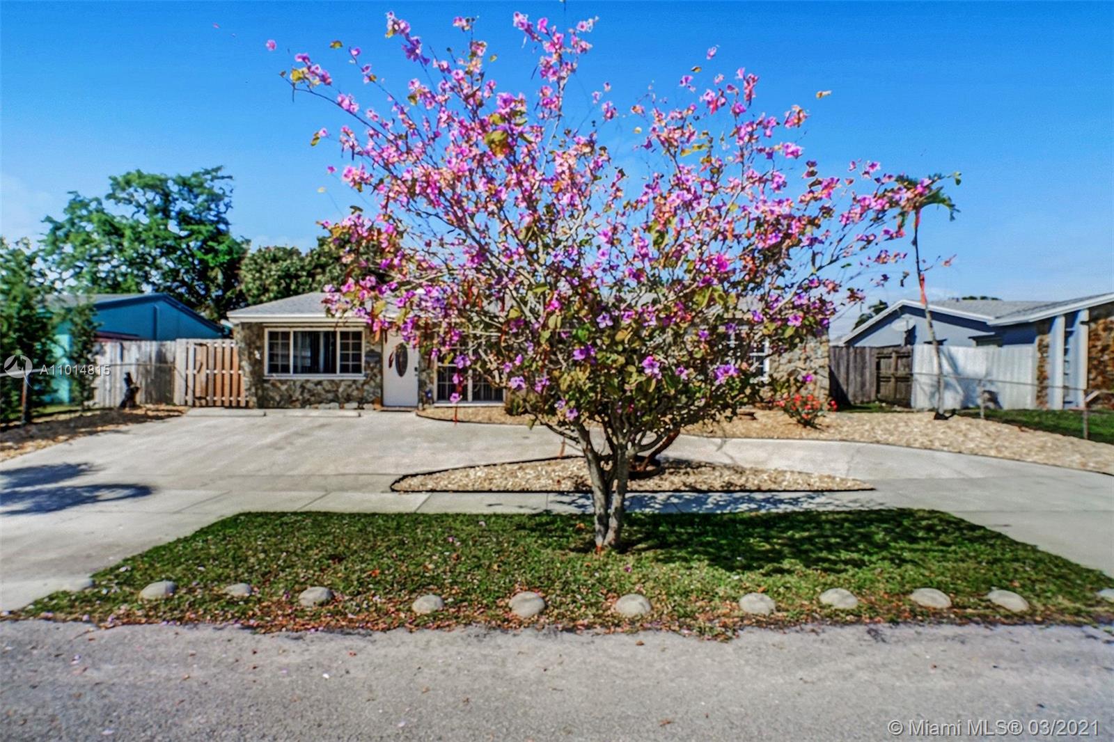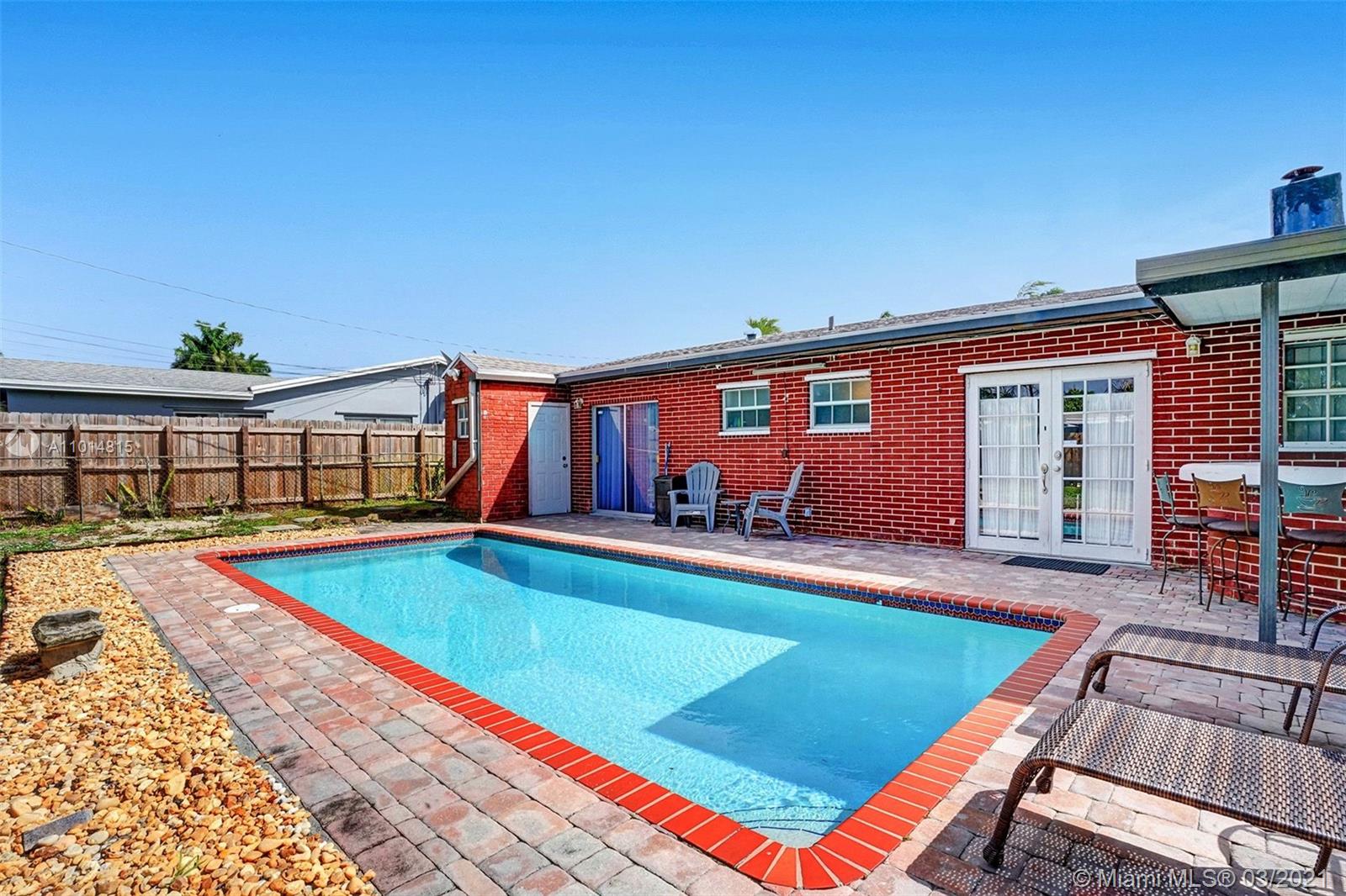 THIS IS IT! Nestled in the sought-after, family-friendly West Hollywood community, this upgraded beauty features a spacious living area with amplified natural light and a comfortable layout your family can flow through. Circular driveway with unique landscaping for inviting curb appeal introduce you to HOME. This 3 bedroom, 2.5 bathroom single-family home boasts a beautiful kitchen, Quartz countertops, stainless steel appliances, double counters, and access to the laundry room within the kitchen. Beautiful french doors invite sunlight and introduce an exquisite pool and bar area into a generous yard to make incredible memories for years to come. Nest air-control, metal shutters and cameras included. It's perfect! You've found it, come tour it. Open House Tours 12pm-2pm Sat, 3/20.