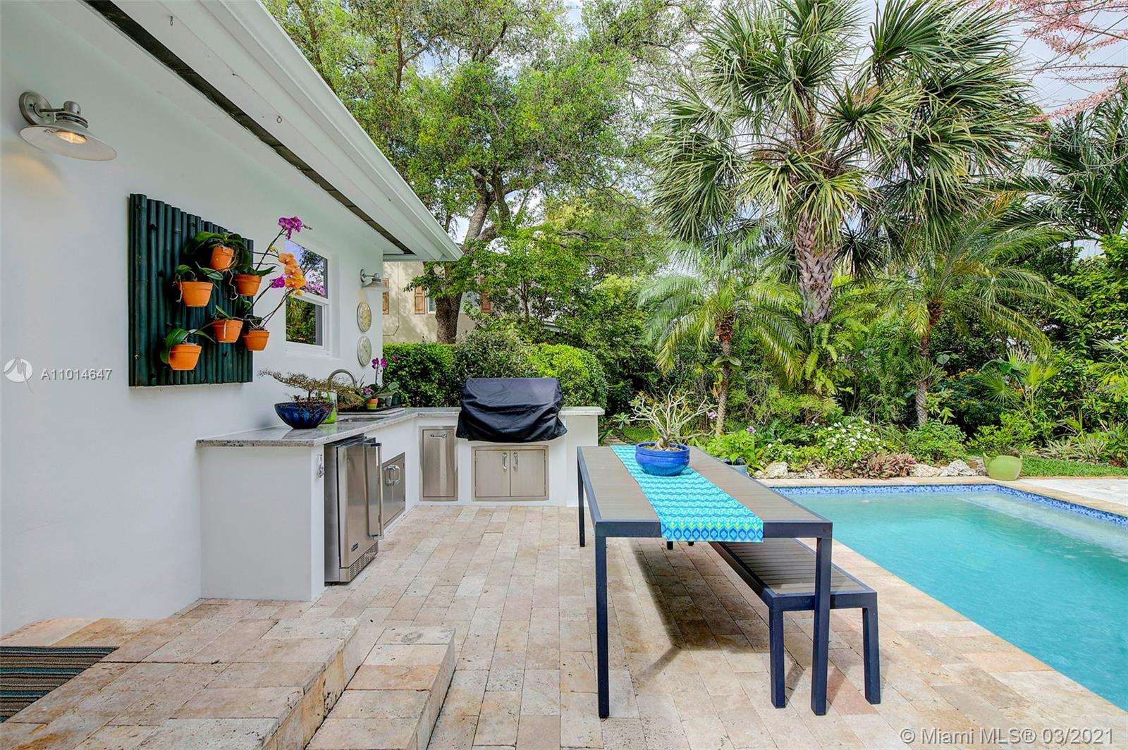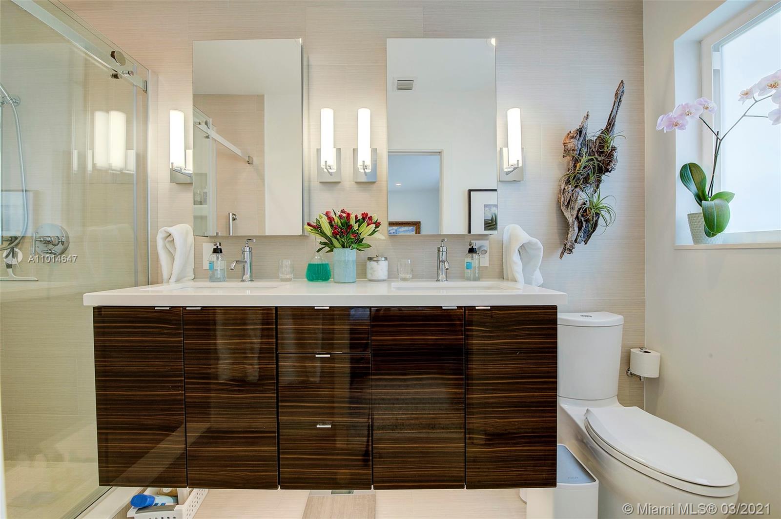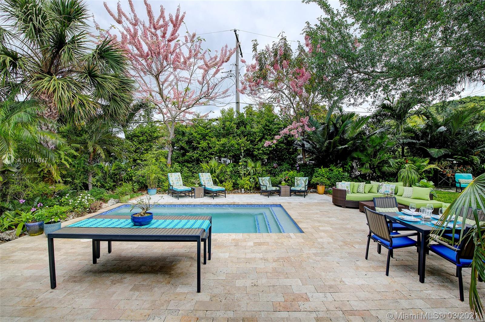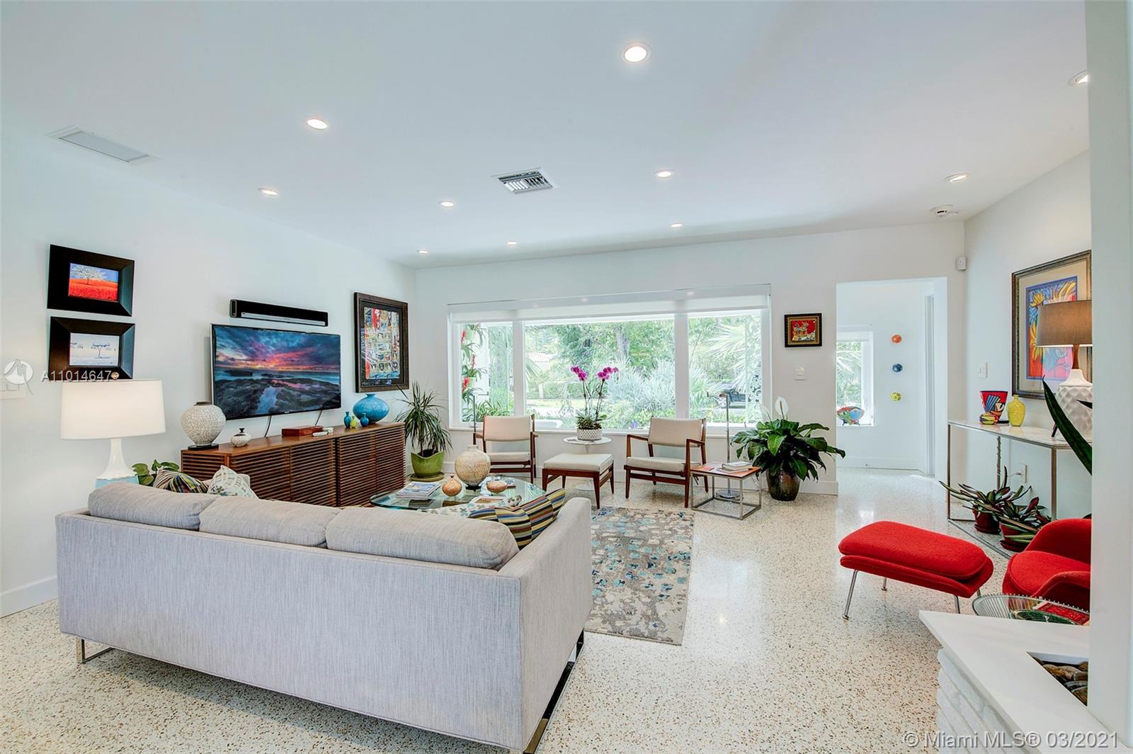 Mid century classic three bedroom renovated to perfection inside and out in the coveted Riviera section of Coral Gables. Offered furnished to complement the home design and neighborhood. Expansive windows and doors provide beautiful views and access to the professionally designed landscape featuring native flora. The smallest details were considered in maximizing the space to make the most of the Florida lifestyle. Multiple living areas make entertaining a breeze. Home chef's dream kitchen, induction & integrated Bosch appliances. Bedrooms have custom outfitted walk in closets and spa like baths. Heated salt water pool, built in summer kitchen, landscape and pool lighting with plenty of room for entertaining on this double lot. Complete renovation from the roof to the septic.