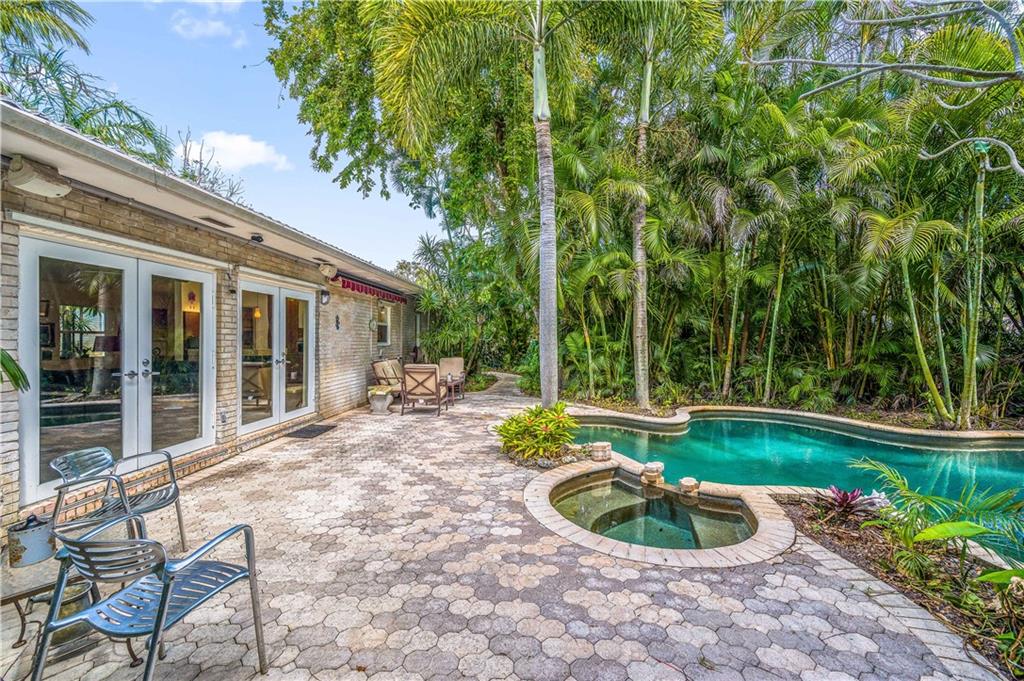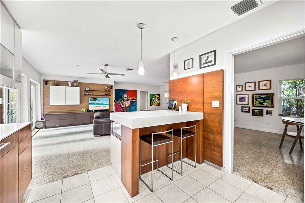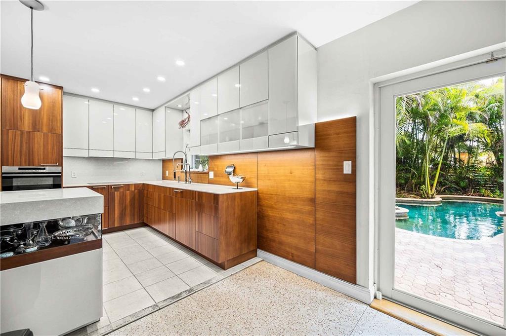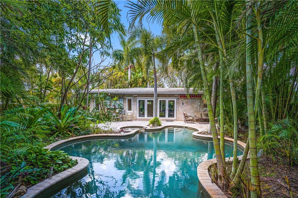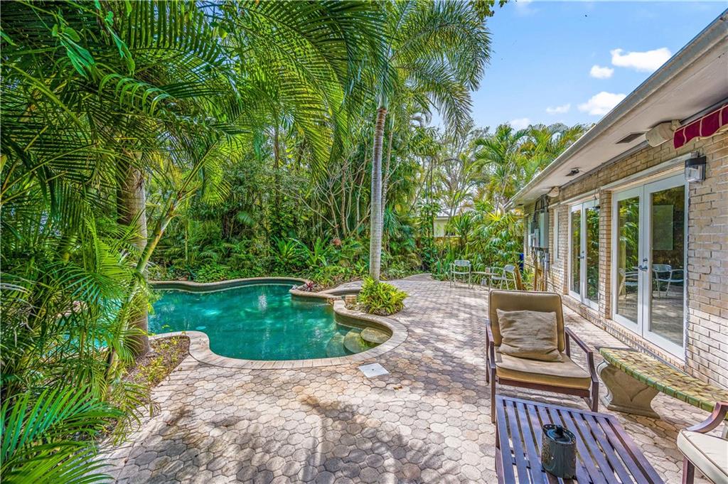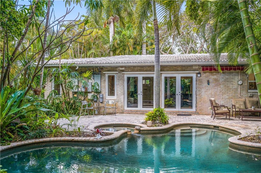 Situated on one of the most desirable streets in Victoria Park. Spacious 3BR/2BA boasts a wide-open floor plan perfect for entertaining. This split plan offers a central living-dining room with open kitchen that separates the Primary suite and office from the two guest bedrooms and hall bath. Sets of French doors provide pool views from the moment you enter through the front door. Pristine scored terrazzo floors run throughout most of the home providing a cool retro look. A Poggenpohl brand Euro kitchen offers the latest in cooking technology with a Wolf wall steam/convection oven and induction cook-top, built-in Miele refrigerator and dishwasher. A heated lagoon-like pool with spa surrounded by dense tropical landscaping plus a whole house generator make this home the perfect find.