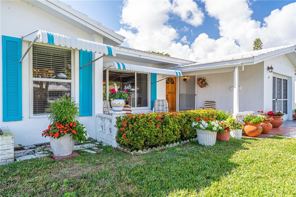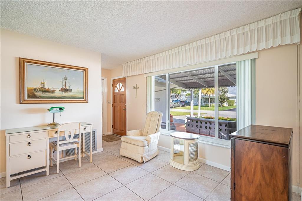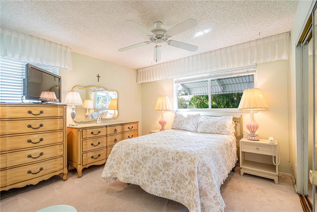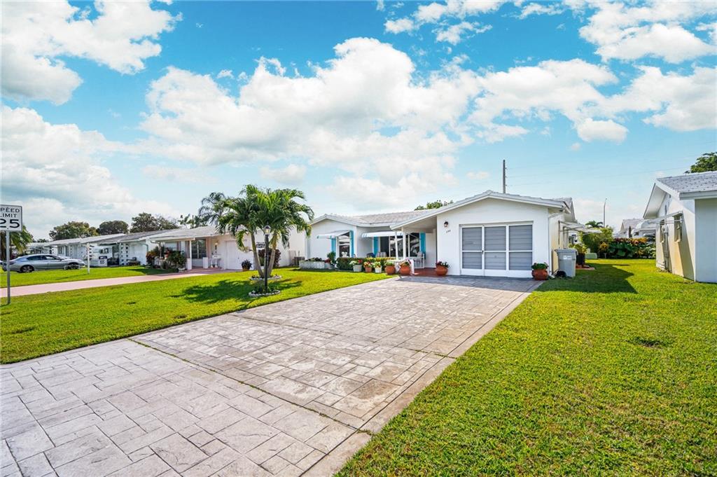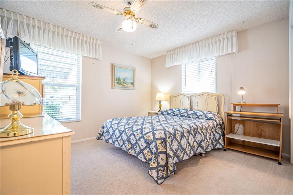 Pride in ownership in this 2/2 well-maintained home w/garage featuring workbench & cabinetry. Open front porch&private back patio. Eat-in kitchen includes wood cabinetry, stone backsplash, neutral countertops. Large living/dining area extends to family room. Exiting through glass sliders to patio.Updated guest bath. Tile throughout living area. Carpet in bedrooms. Lots of natural light throughout,2016 Hurricane windows installed, Reroof tile&flat 2007, double stamped driveway 2004. Very nice landscaping. 55+, pets welcome, NO LAND LEASE/REC LEASE. Easy access to shopping, restaurants, 95, beach, $232.00/mo Association fee which incl water/sewer &lawn sprinklers, lawn mowing, house painting, roof cleaning, 2 pools, courtesy bus, 2 clubhouses w/wifi, golf, and so much more!