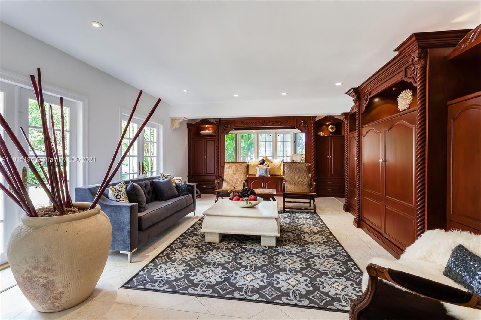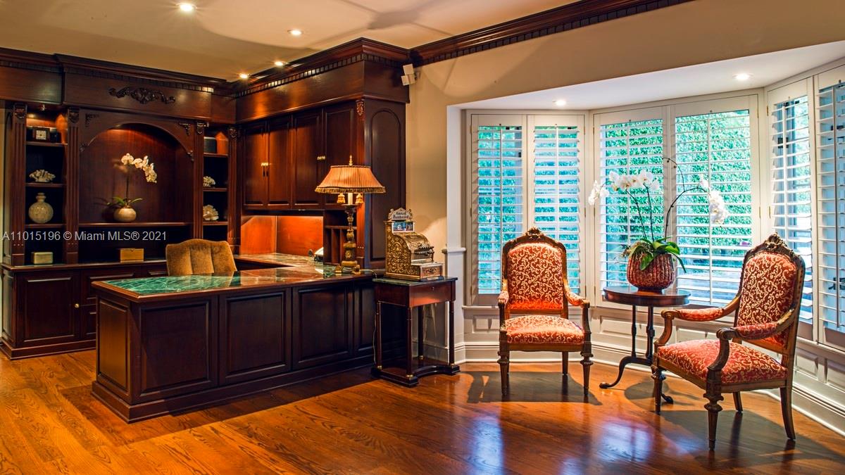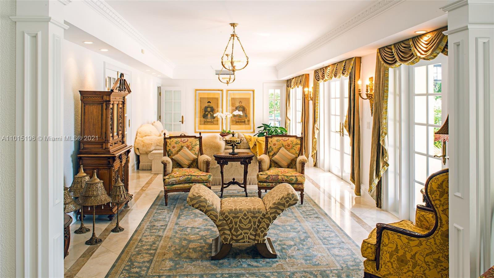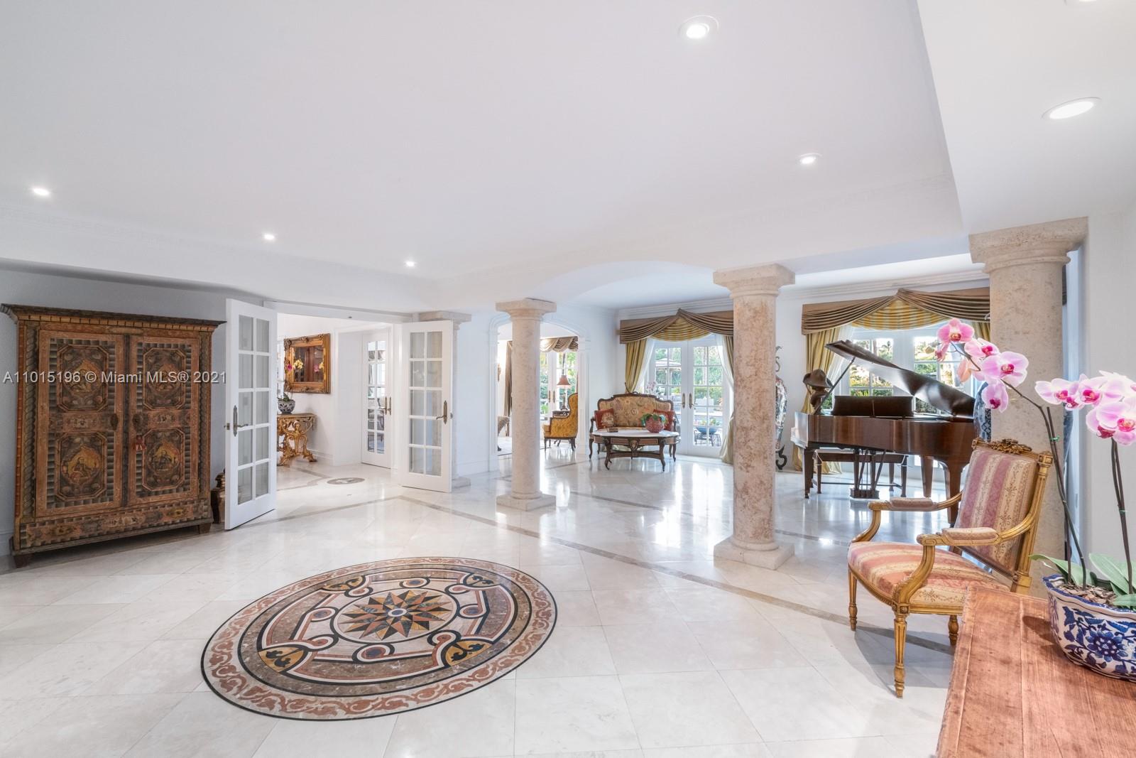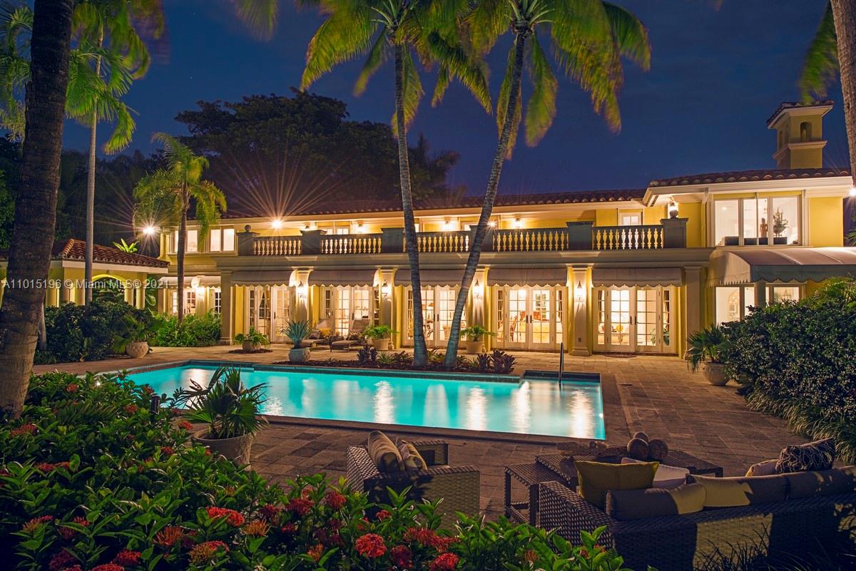 “Living on the edge” has a new meaning with 327 ft of incredibly lush waterfront views showcasing this secluded, private tropical peninsular estate. Located on a tranquil cul-de-sac with 10 ft ornate iron gates and no bridges to Biscayne Bay, this Key Biscayne villa has 2 boat docks, 4-car garages, 15+ car driveway and porte-cochere, located on a rare expansive 31,000 sf lot, making it exceptional and unparallelled for boating and car enthusiasts alike. The epicurean French kitchen reveals hand-carved artisan antique cabinets, Sub Zero appliances LaCornue range, pizza oven and rotisserie, beckoning entertaining for 5 or 50. Opulent marble and granite finishes throughout with a fabulous layout include 5 second-floor en suite bedrooms and private balcony allowing exceptional water views.
