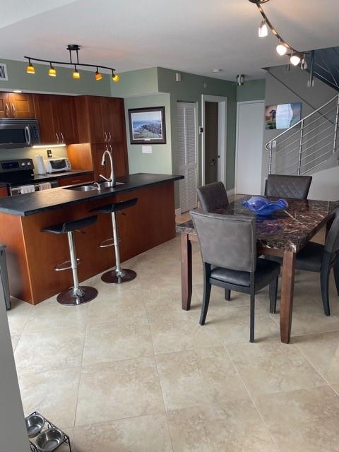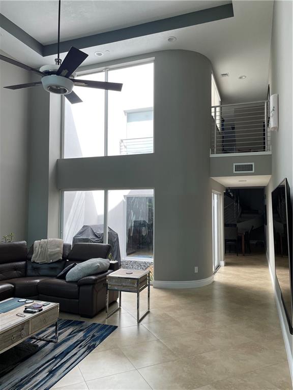 Unique 3 story townhouse in Victoria Park with indoor atrium, rooftop terrace, 20 foot ceiling in living room, 2 car garage, impact windows and doors, granite countertops, stainless steel appliances, tile and vinyl flooring in main area, central A/C systems replaced in 2018.