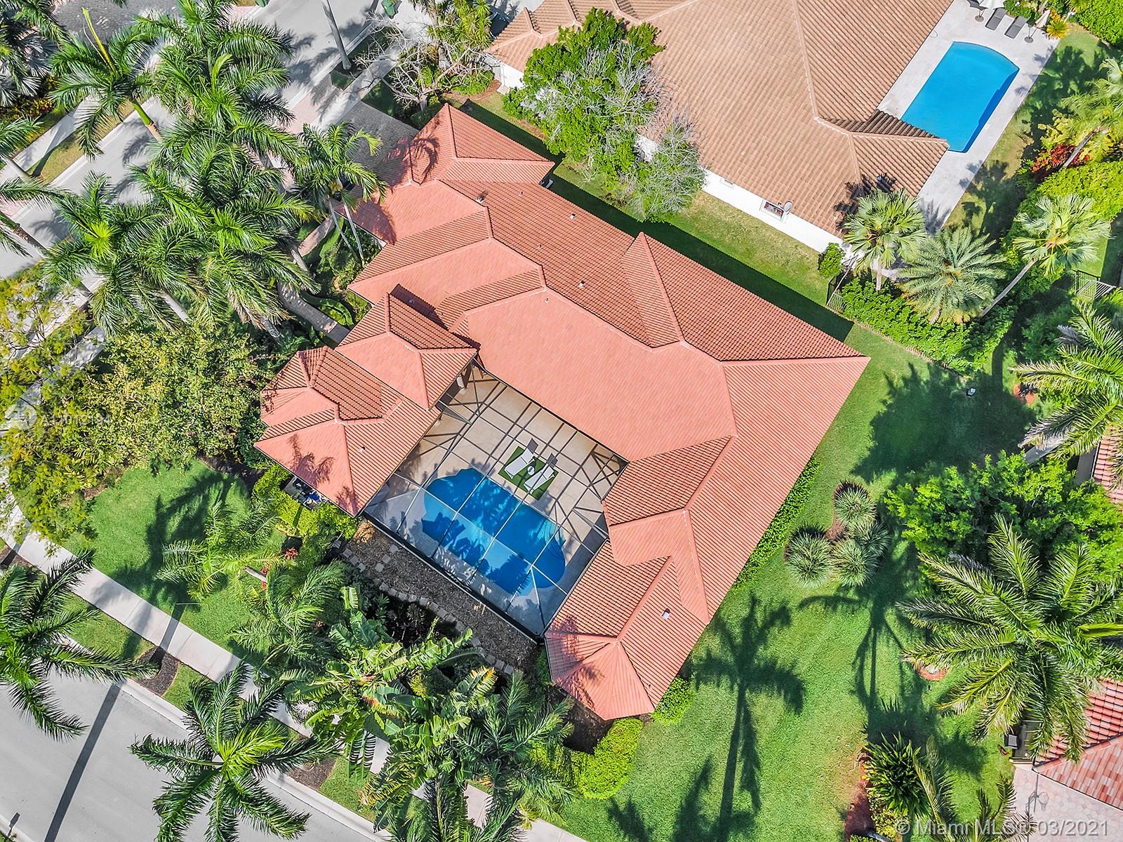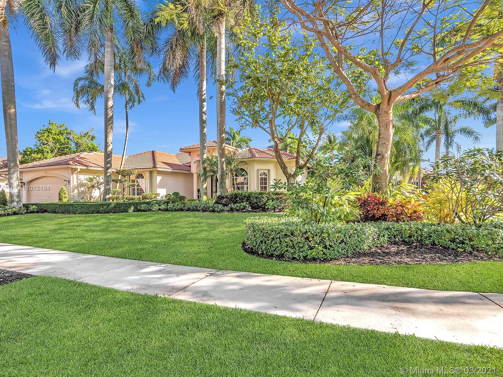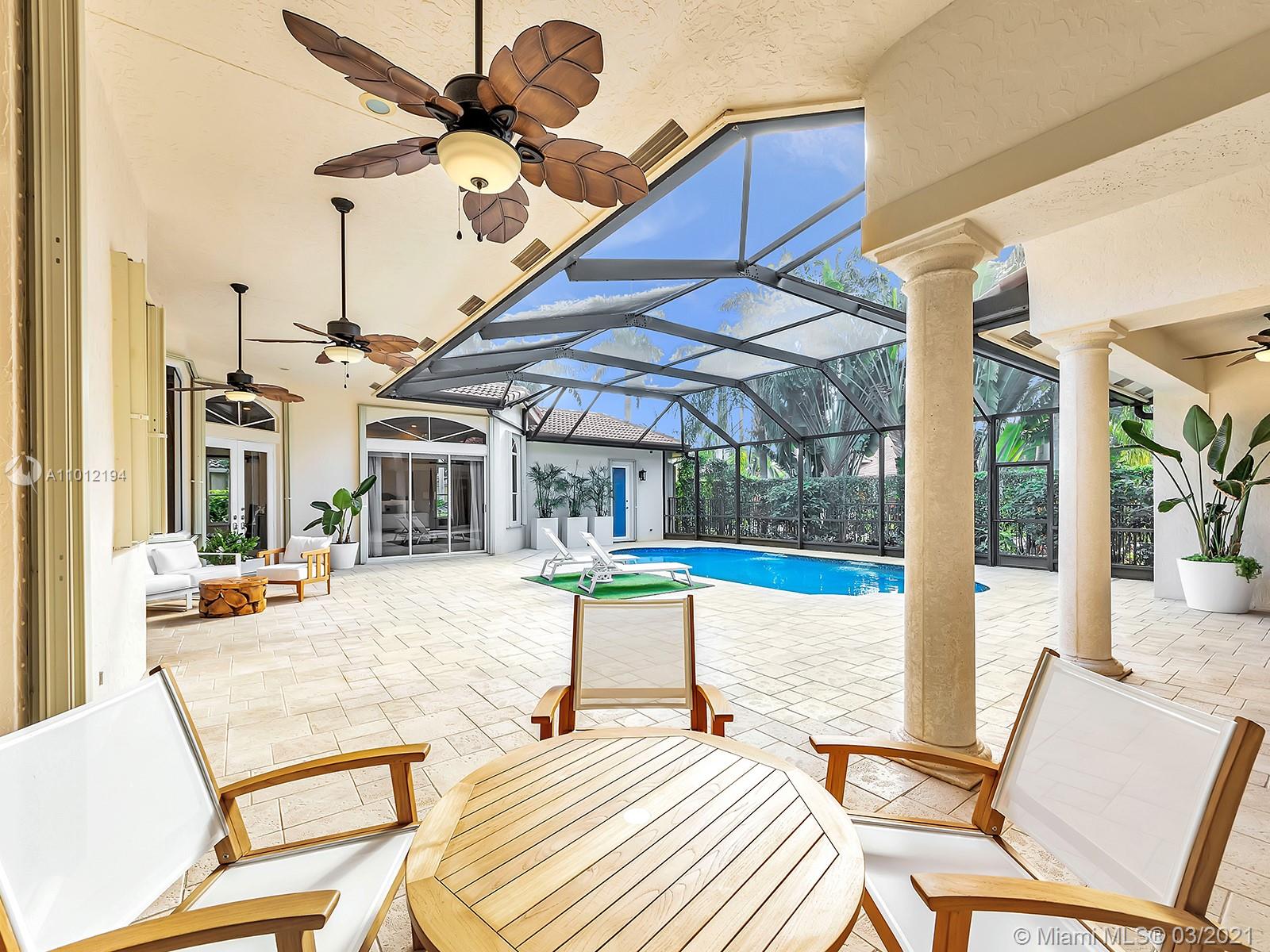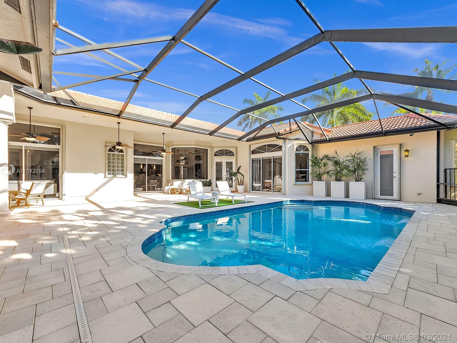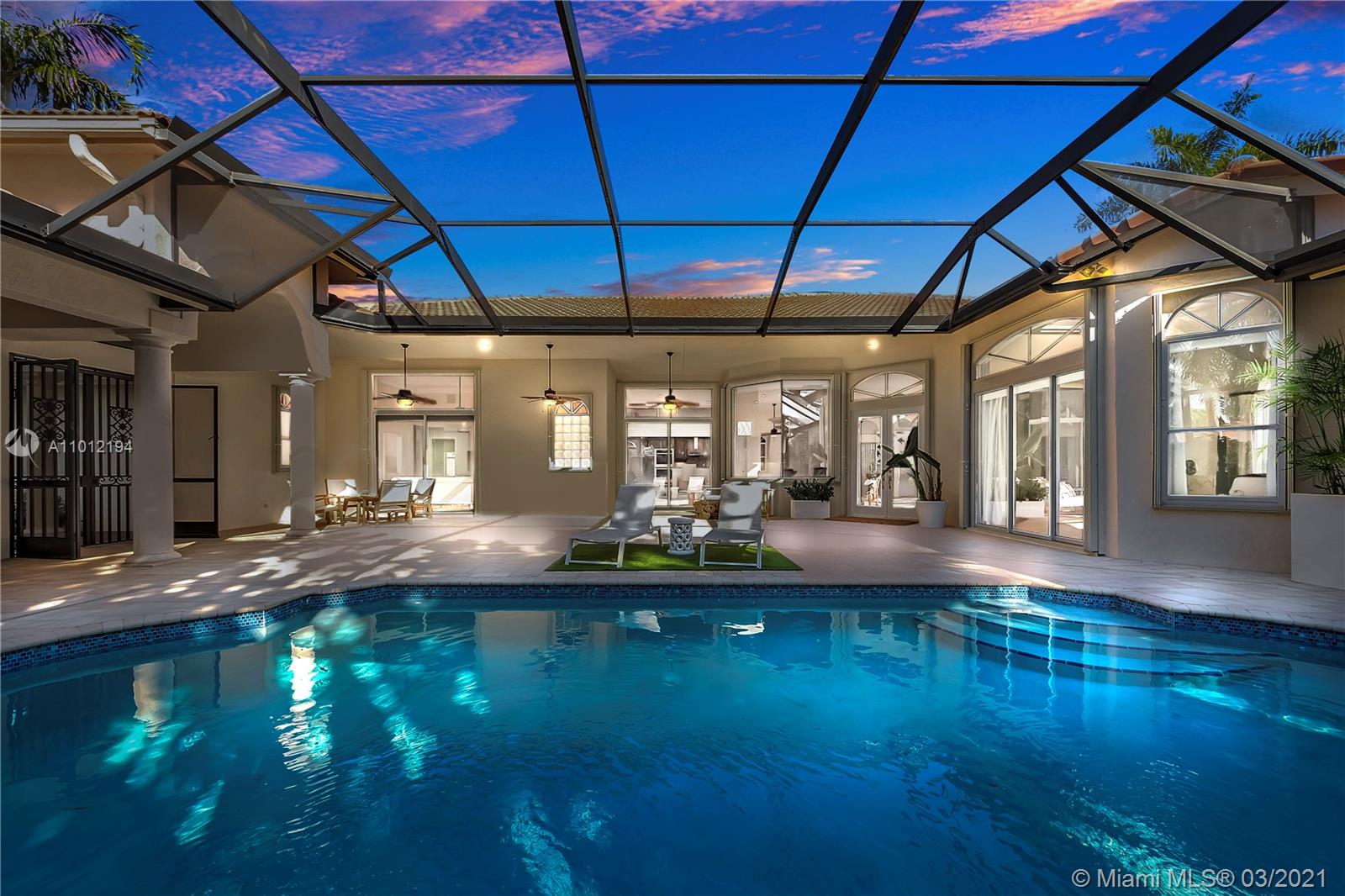 Absolutely Stunning! This custom courtyard home sits on a private corner lot of a cul de sac street and features 4BR/3.5BA in the main house plus 1BR/1BA in the guest house. Completely remodeled, updated and expanded chef's kitchen offers classic cabinets w/undermount lighting, top of the line appliances, Miele double ovens, 2 Miele dishwashers, quartz counters, large butler pantry w/beverage center and large storage area. Children's wing with social area. All bathrooms are tastefully updated. Large porcelain tile in living areas, wood flooring in bedrooms. The screened and heated pool with saline chlorination system is surrounded by spacious paver patio and lush landscaping, perfect for entertaining or just relaxing. Easy closing Accordion shutters. Paver driveway leads to 3 car garage.