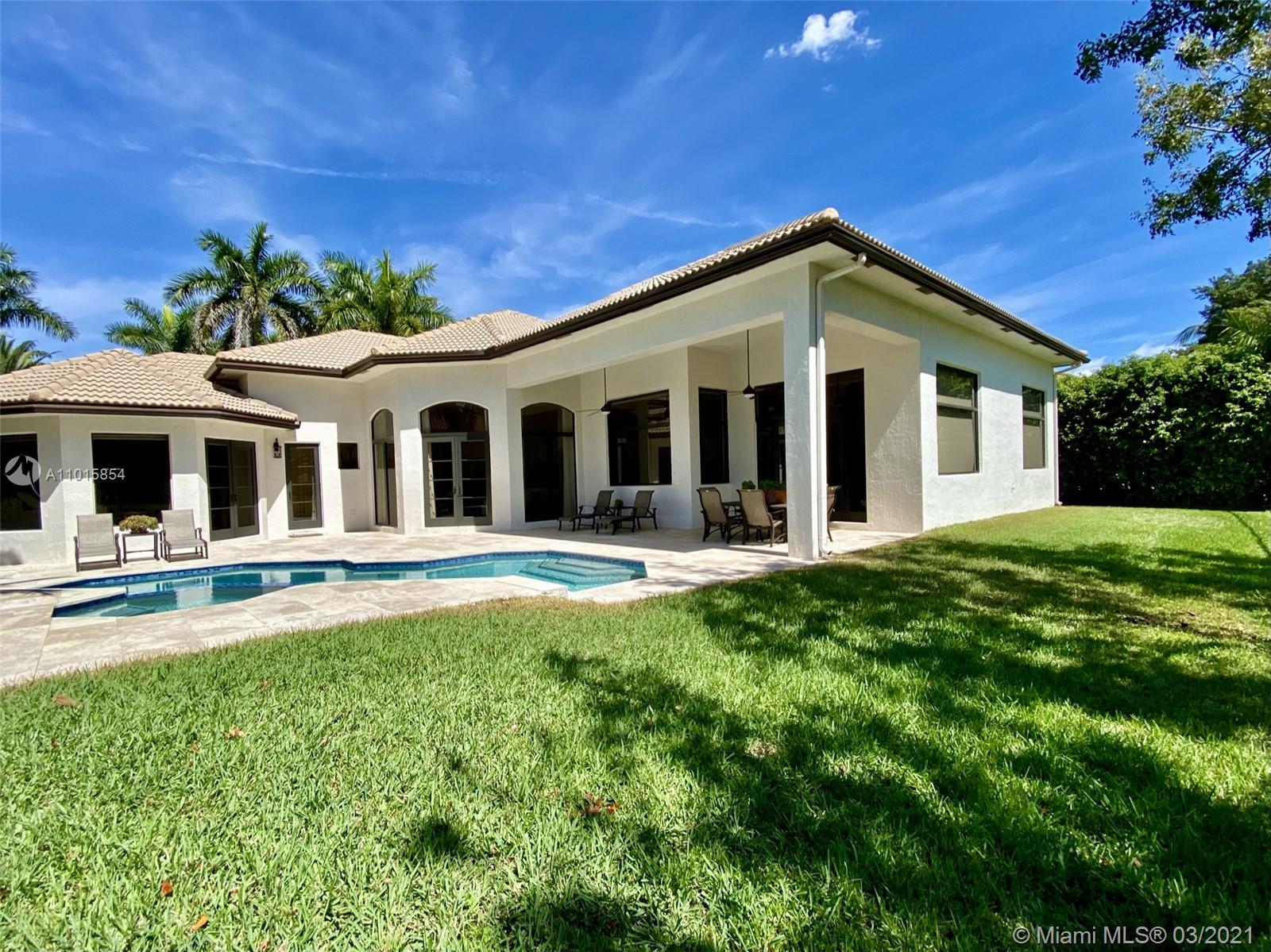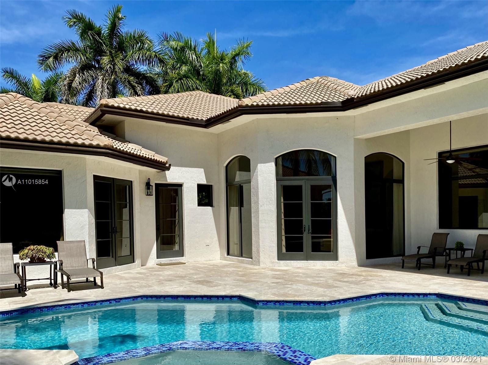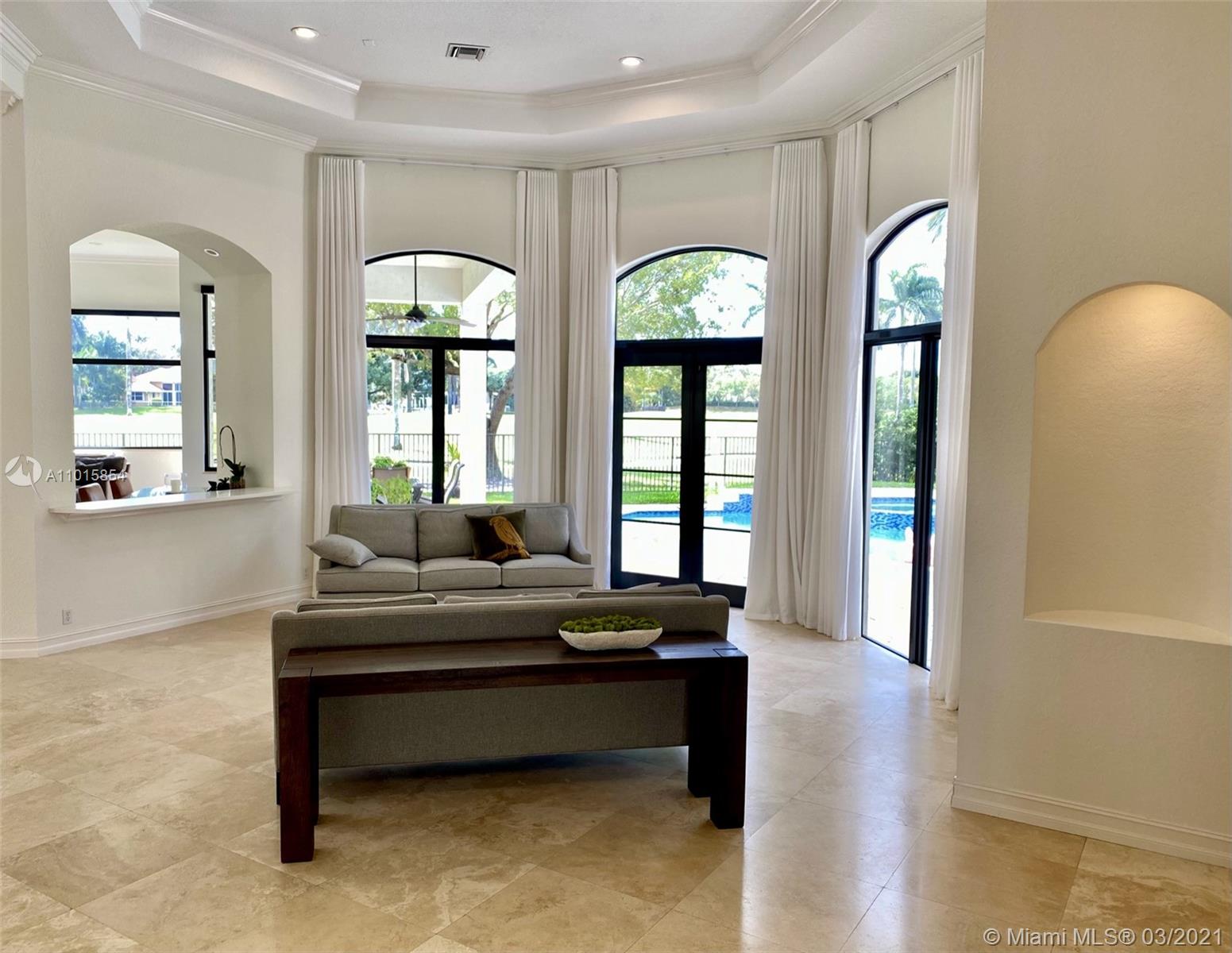 LIGHT, BRIGHT & OPEN 4,700 sq.’ custom-built & updated estate home on the 10th green in the boutique area of The Retreat in Weston Hills Country Club. On nearly one half acre, this five bedroom, four bath home features IMPACT WINDOWS & DOORS, marble & wide wood plank flooring, 16’ volume ceilings & more. The kitchen is equipped with Wolf and Sub Zero appliances, walk-in pantry, wine fridge & separate bar, quartz countertops with waterfall edges, spacious eat-in breakfast area, all open to a 36’ wide family room. Private Master wing has 2 walk-in closets, exercise space, & spa bath with freestanding extra deep soaking tub. Relax by the remodeled Pool + Spa surrounded by a travertine deck, covered patio, & fully fenced backyard, perfect for entertaining all while enjoying amazing views!