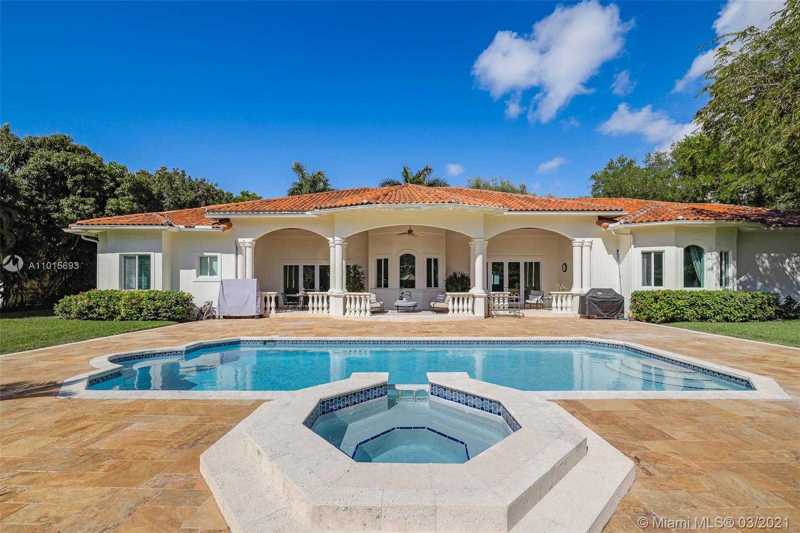 Lovely North Pinecrest property on a builders acre corner lot, in a calm one way street. The 5 bedroom house offers bright and spacious rooms, as well as high ceilings. The floors are marble throughout the common areas, and solid wood in the bedrooms. The open plan kitchen was just remodeled - and the wine cellar can store 1000 bottles! The windows are all impact and look out to a beautiful and spacious manicured back yard. The private outside is perfect for entertaining. The trees and fountain give the property a peaceful sanctuary feel. The fully gated property is also equipped with a generator.