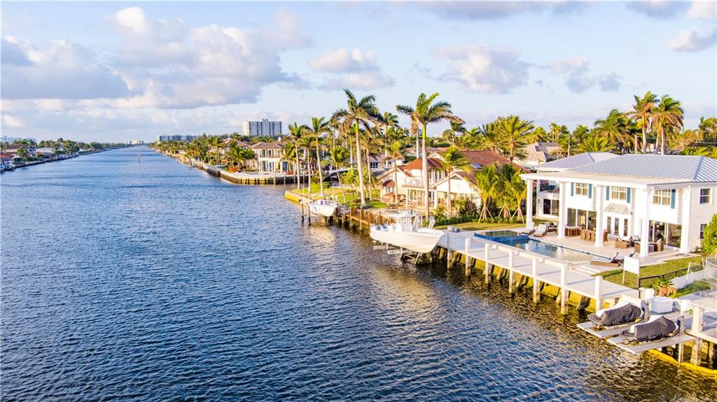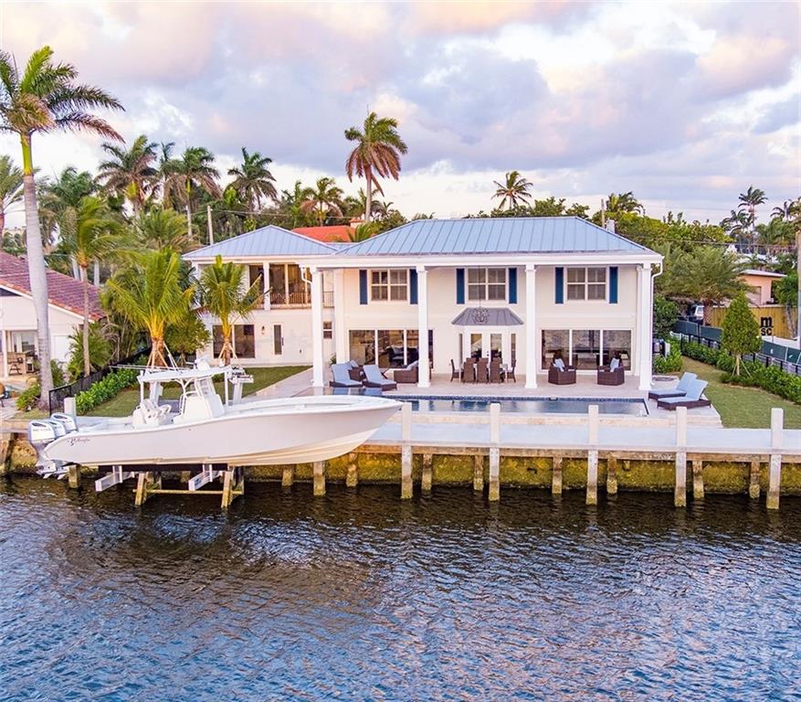 Sparkling water views heighten the allure of this newly renovated coastal-inspired estate fronting 100 feet +/- on the Lettuce Lake cove of the Intracoastal Waterway in east Pompano Beach. Celebrating the natural beauty of its surroundings, impact-glass windows and doors from almost every room open to the pool and patio, and porcelain-tile floors complement a neutral color palette.