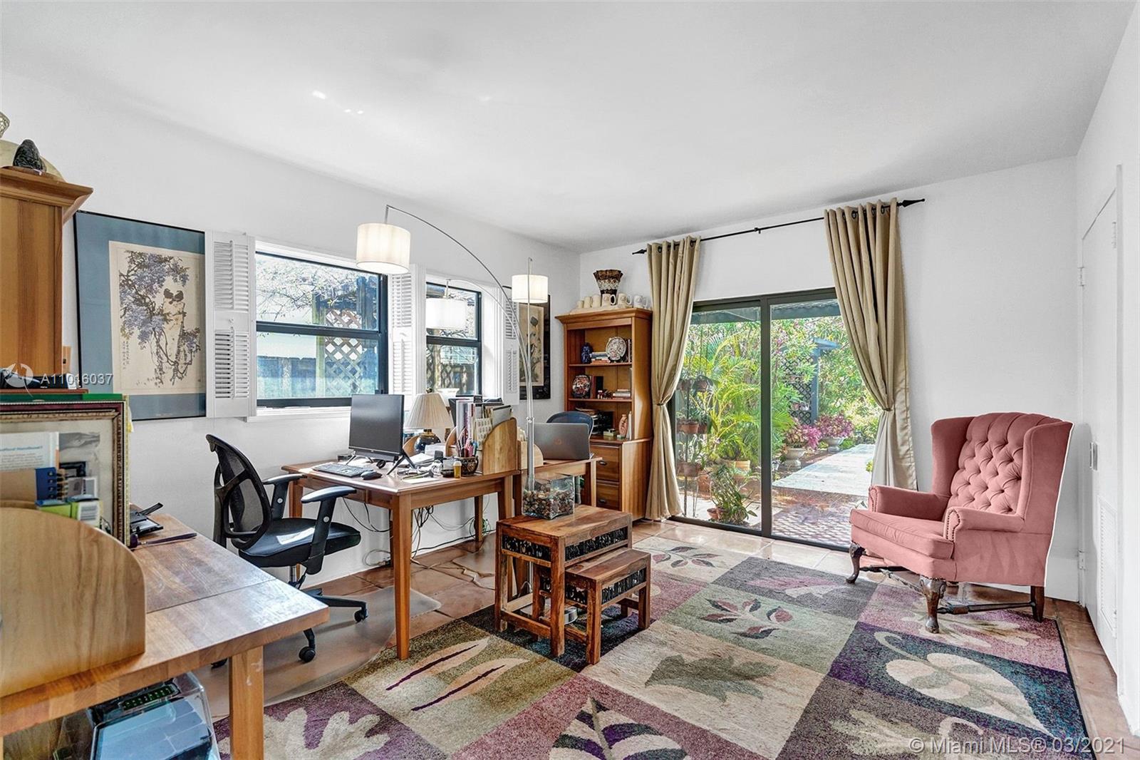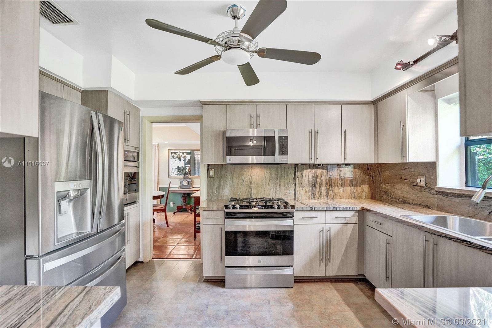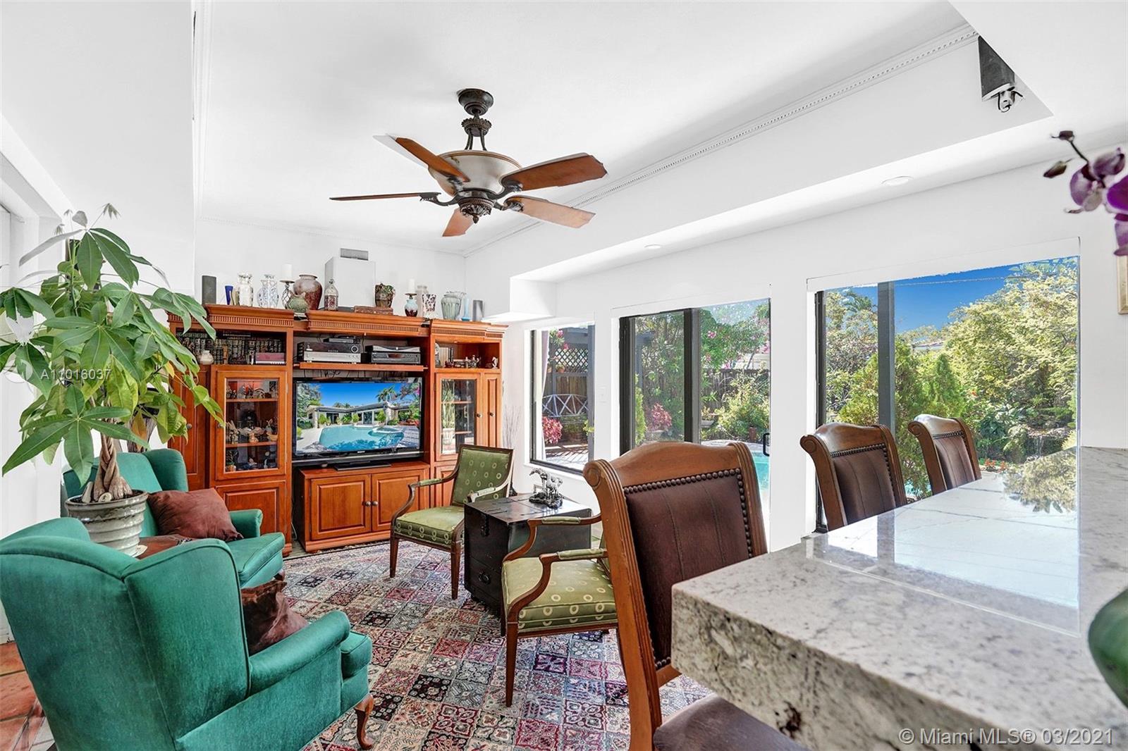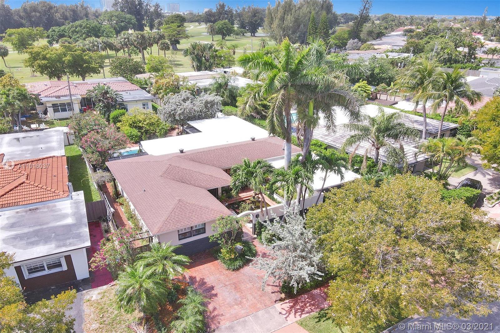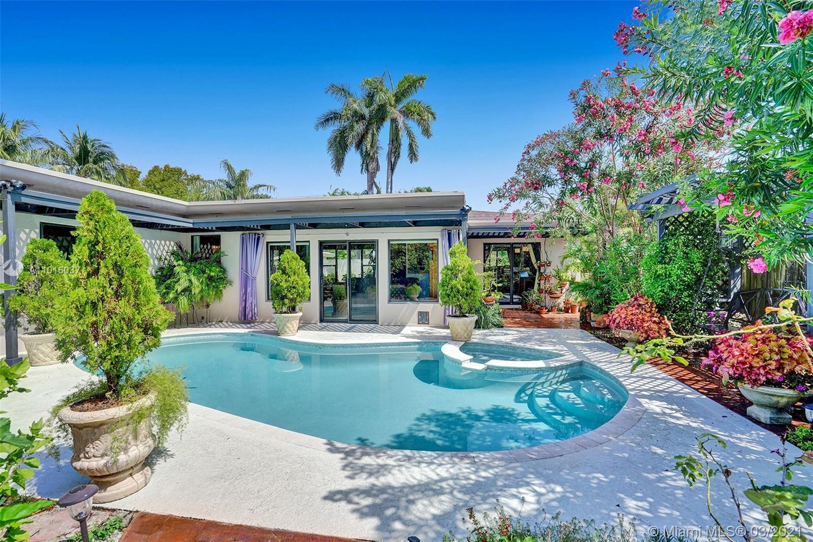 Enjoy your privacy and a fabulous backyard / tropical garden in this house located in a quiet street in a gated golf course community in Normandy Island and Miami Beach Just few blocks from shopping, dining, parks and public transit. The spacious kitchen has been upgraded with granite counters and stainless steel appliances, and dining and living areas are extremely spacious. All high impact windows. Florida room open through a fully fenced backyard with large patio, heated pool, Jacuzzi and a lush tropical garden. One-car attached garage and room for three more cars in the driveway.
