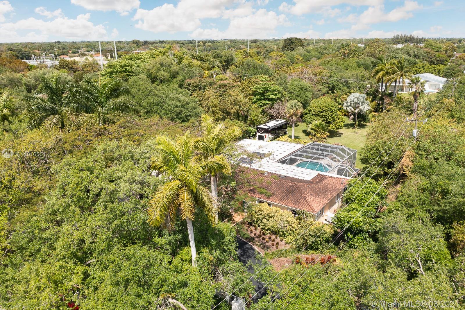 Highly sought after very deep acre with gorgeous perimeter landscaping in the heart of Pinecrest with McMansions popping up all around it. Classic gated ranch with almost 3000 sq ft and huge outside covered patio living areas and large sliding glass doors with tons of light. 4/3 with 4 covered carport spaces, large master bedroom, big eat-in kitchen, and more. Garage converted to cozy family room and 20 x 40 dome screened pool. Accordion and panel shutters.