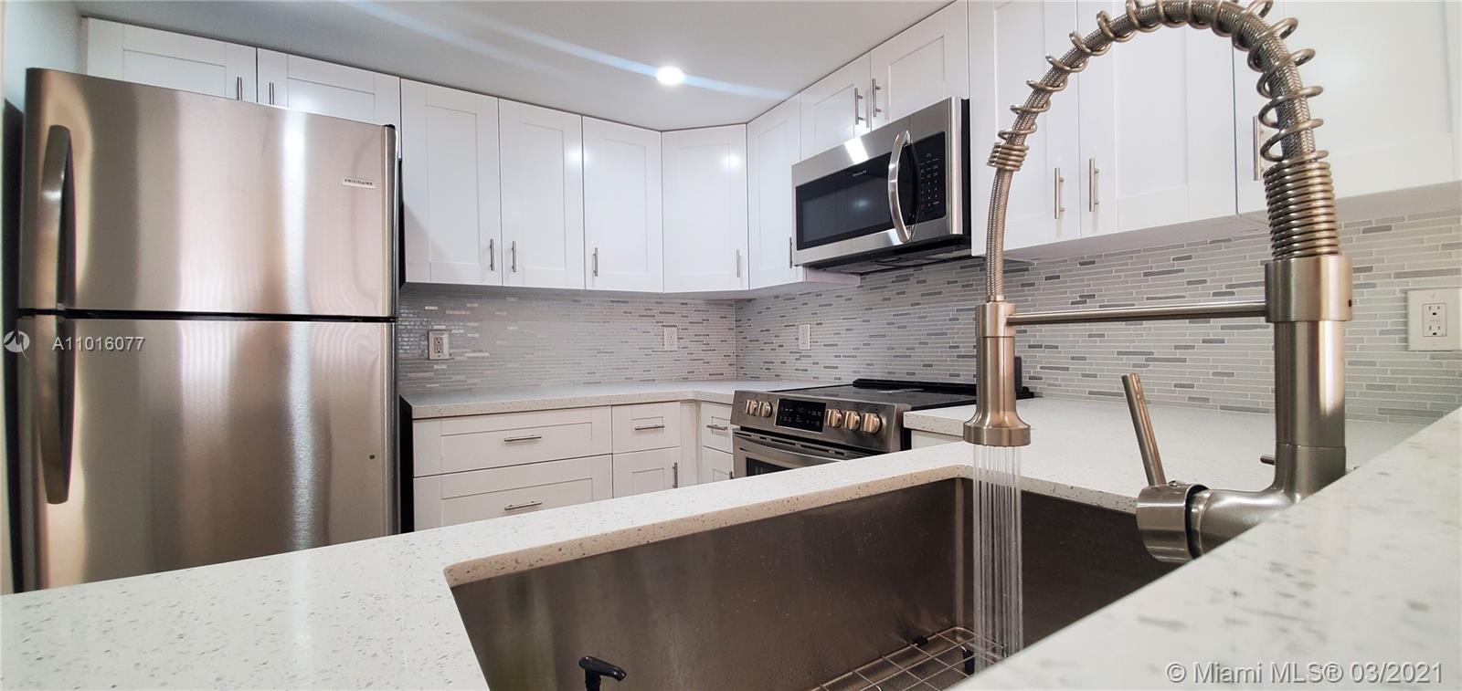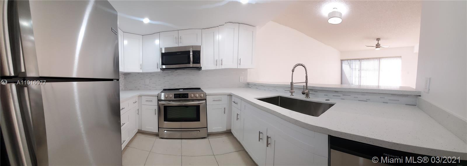The ultimate in carefree living beautiful fully remodeled CORNER townhome in Davie. Lots of green on side of the home and in the back to play and entertain. Screened in patio to enjoy your BBQ's . 3 nice size bedrooms and 1 bedroom downstairs for your convenience. Gorgeous white modern brand new updated kitchen, with new white cabinetry and sough after QUARTZ countertop. Brand new stainless steel appliances. Also fully beautifully remodeled modern 1/2 bath and master bathroom with double sink style, new everything, from faucets, counters, cabinets, toilet and stunning shower . Don't miss it, very worth to see and consider to live in or as an investment, so easy and quickly to rent. Close to colleges, all important shopping and dining. Nice community and neighbors.