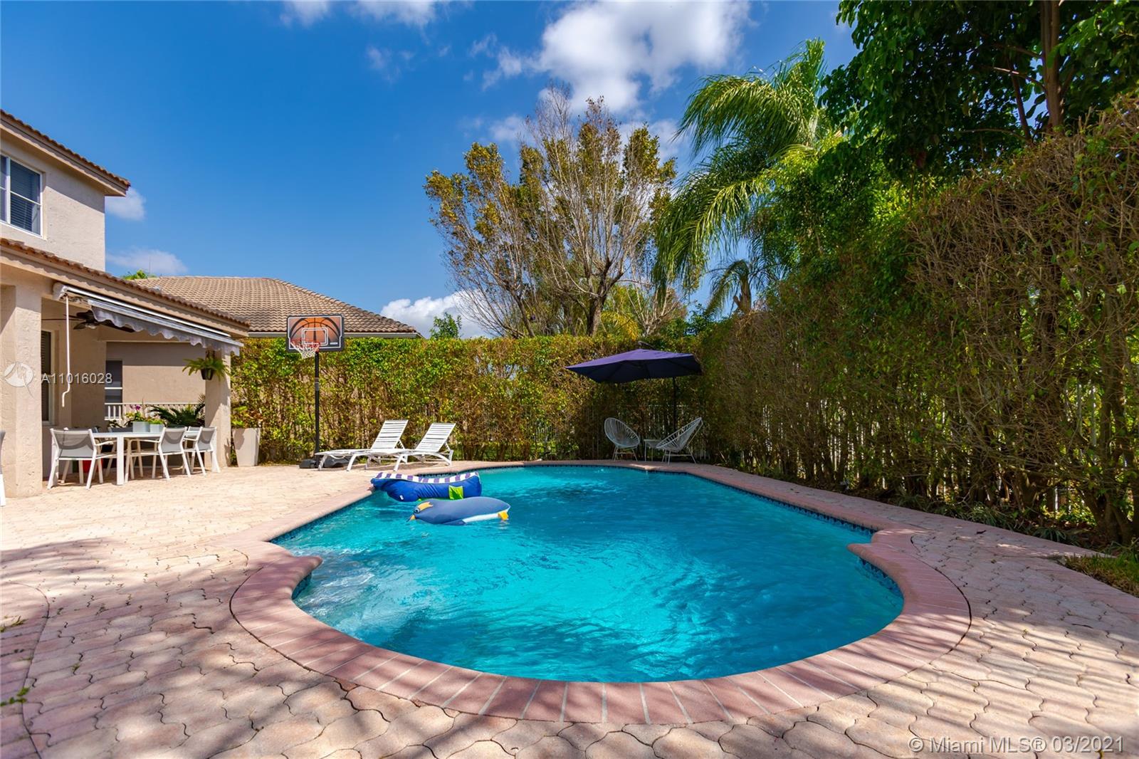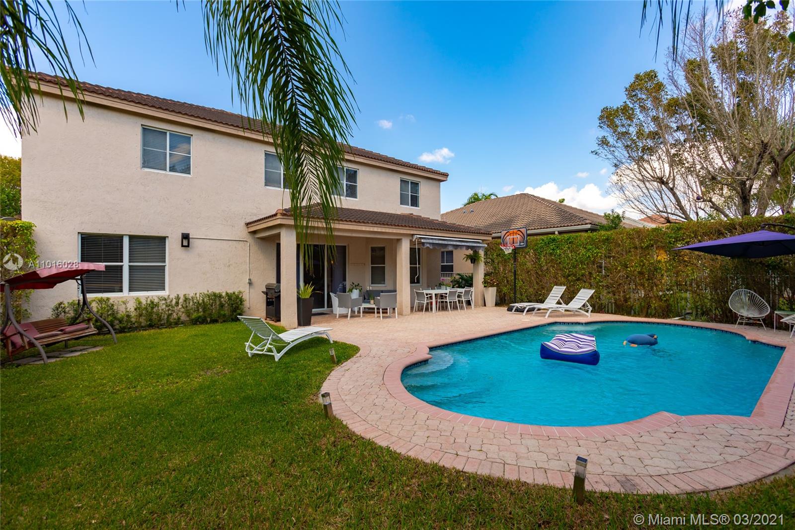 Enjoy this beautiful property in the most exclusive area of Weston with the best schools in the area. With a beautiful pool to enjoy with family and friends and a completely private garden. Home features impeccably maintained 5 BR, converted bonus room with newly renovated flooring. The home has ceilings and windows that allow natural sunlight to flood inside. The gourmet chef's kitchen features top of the line stainless steel appliances, double sinks, fully custom island, and granite-topped breakfast bar.