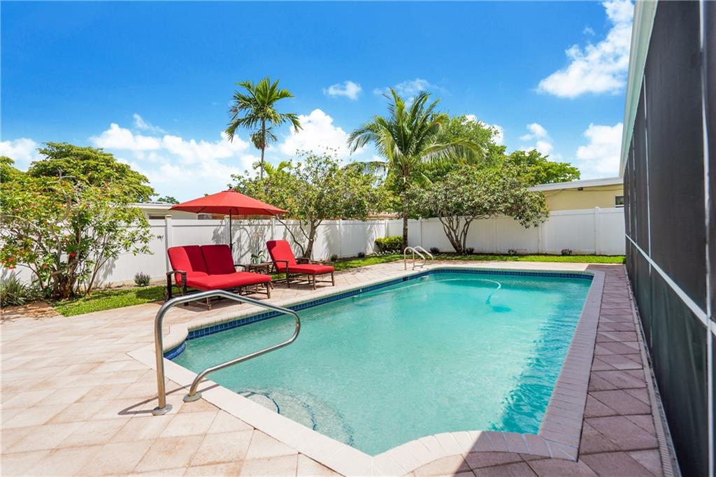 Emerald Hills at its best! Beautiful one story 4/3 plus 2 car garage, with large pool and screened patio for entertaining, plus fenced yard. ALL IMPACT WINDOWS AND DOORS. Inside laundry room with utility sink. Updated baths and kitchen with extra large family room, PLUS a formal dining room with french doors to patio, and living room with custom floor to ceiling wine cooler. Remodeled kitchen with granite counter tops, tiled back splash and stainless appliances, with pass thru window to patio pool area. Lot size 9595. Master bedroom has walk in closet with custom closet designed. NEW Modern master bath with all tiled step in shower. Sarazen is an easy walk to houses of worship. Great home home in a great location. SHOWN BY APPOINTMENT ONLY. Owners requesting 120 day closing.