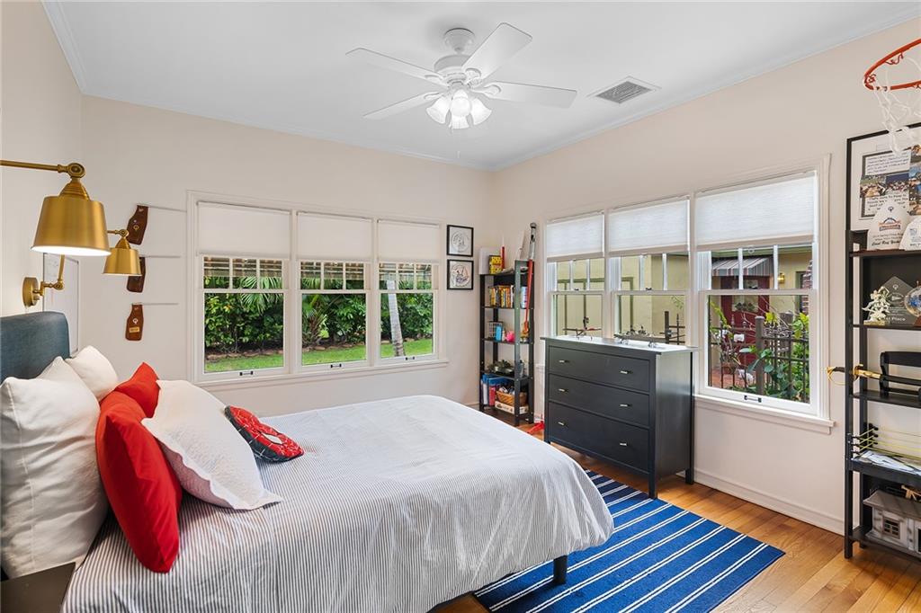 Story book charm abounds in this lovely (!!) 3/bed 2/bath home (primary bdrm has ensuite bath) located on one of the prettiest streets in Rio Vista. Stained glass entry door welcomes you into the family/foyer w/daybed swing(!!) Home has retained its original hardwood floors, coral stone wood burning fireplace & French doors which grace the entry foyer, living & dining rooms filing the rooms with ambient sunshine & a guest bedrm opening on to a private patio. Centrally situated is the kitchen with natural gas cooking & new appliances (2018) Just off kitchen is a family fun room w/xtra pantry storage! Private hall to bedrms & bath. Grand (98’x125’) lot is lush w/foliage, has paved pathways leading to glistening pool w/pergola, 1/1 guest house with vaulted ceilings & a laundry/storage shed.