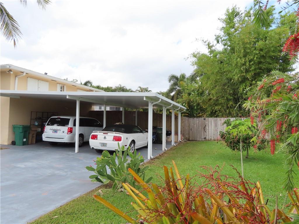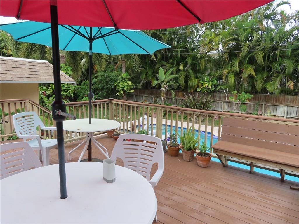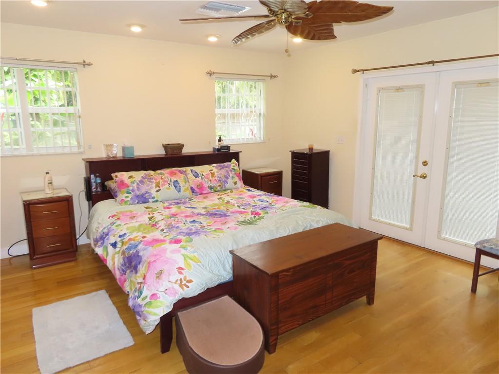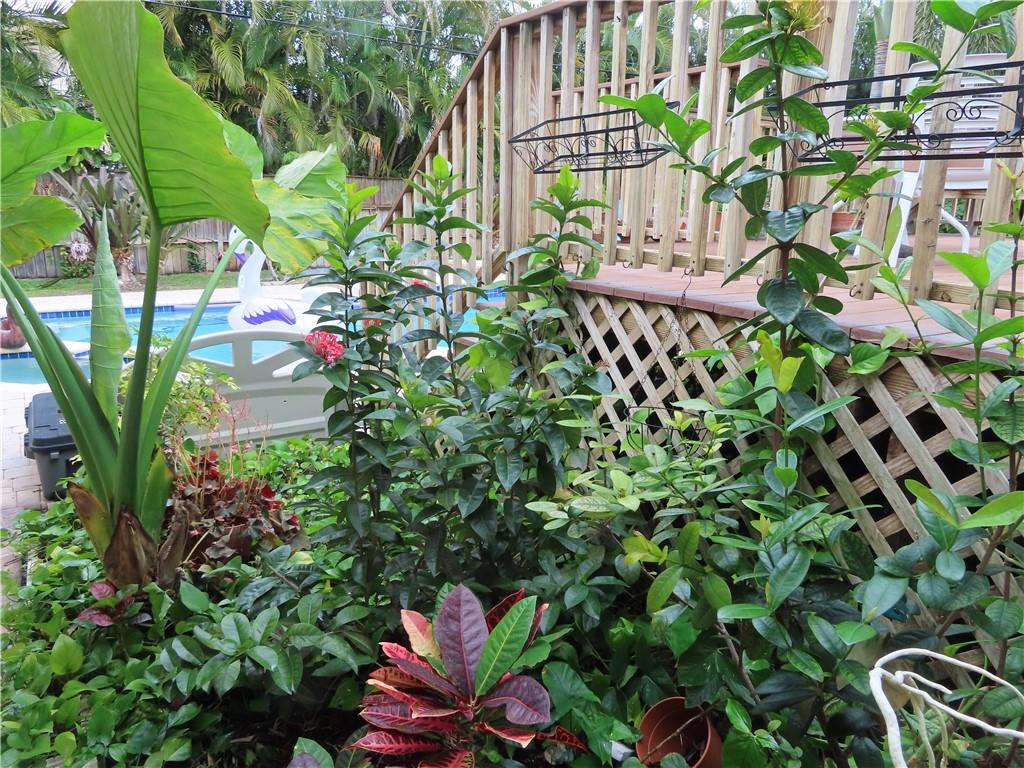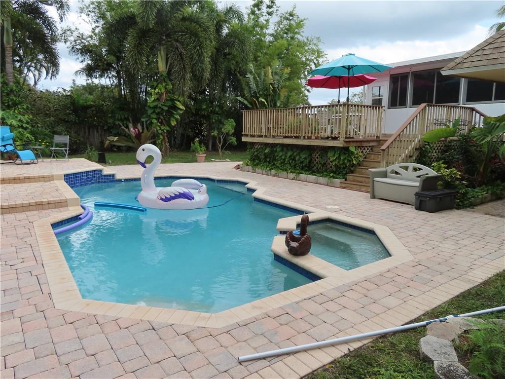 One of a kind on huge lot! Tons of parking - bring the boat, trailer, or RV - bring all 3! Circular drive plus 2 car carport & separate driveway. House re-built in 2007 after a fire. Tri-level home with basement storage. Eat-in kitchen features wooden cabinets & stainless steel appliances. Private Master suite on ground level may be accessed from house and/or has private entrance. Large two story deck overlooking free form pool & paver patio Yard is a lush private tropical oasis with fruit trees, heliconia, bamboo & space to spread out. Dual A/C. Additional storage shed on side (outside fence) has electric. Accordion shutters for house windows but not enclosed porch (lanai). Lanai cooled with wall unit. Septic tank on west side of house replaced in 2019. A/C new in 2019.