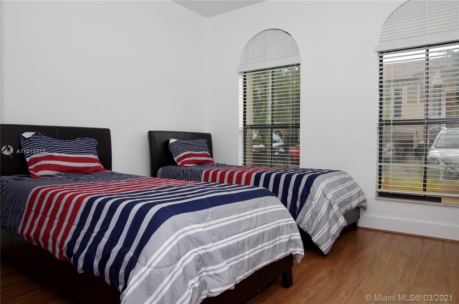 Gorgeous corner townhouse with amazing floor plan, located in the beautiful community of Milan at Doral. The home features 4BR/3BA, glass stairs, granite countertops, wood kitchen cabinets, stainless steel appliances. One bedroom conveniently located on the first floor with a complete bathroom. Spacious master bedroom with a large separate bathtub/shower bathroom. Accordion shutters, and paver patio. Gated Community offering 24 hr surveillance, security patrol, clubhouse with new pool and gym, and plenty of guest parking.This Mediterranean style community, is close to A rated school, Dolphin Mall and highways. Community features 24 hr surveillance, security patrol, clubhouse with new pool and gym, and plenty of guest parking. Unit is rented until January 2022.DO NOT DISTURB TENANTS