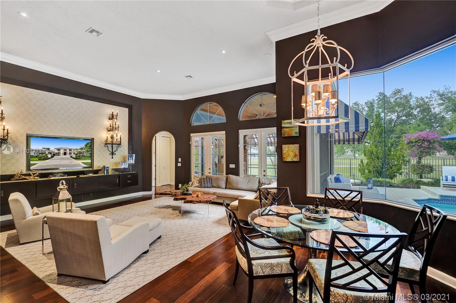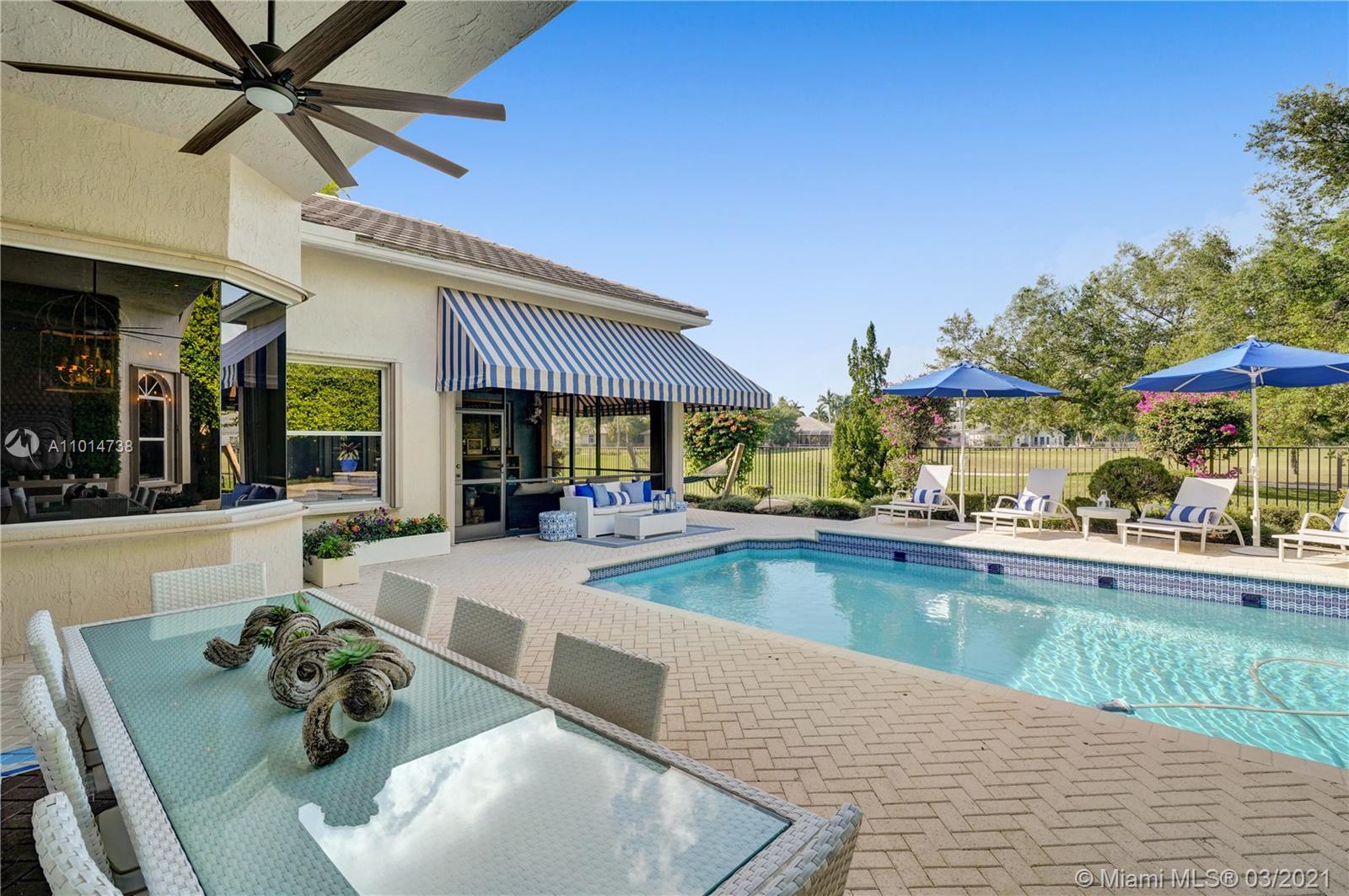 One-of-a-kind residence located in the extremely desirable neighborhood of the Retreat in Weston Hills Country Club consisting of only 19 homesites. Stunning designer finishes & attention to detail throughout this one story, 6 bedroom, 4 1/2 bath home. Features include: spacious living areas with wood floors, formal living & dining rms, built-in bar, luxurious master suite with sitting area, amazing closets & spa-like master bath, gourmet kitchen with center island & walk-in pantry, the family room opens to the covered patio & flows seamlessly from interior to exterior. The tranquil backyard offers a heated pool, spa & picturesque golf course views. Complete with A/C filtration system, hurricane protection & 4 car garage. Original owners, first time on the market, meticulously maintained!