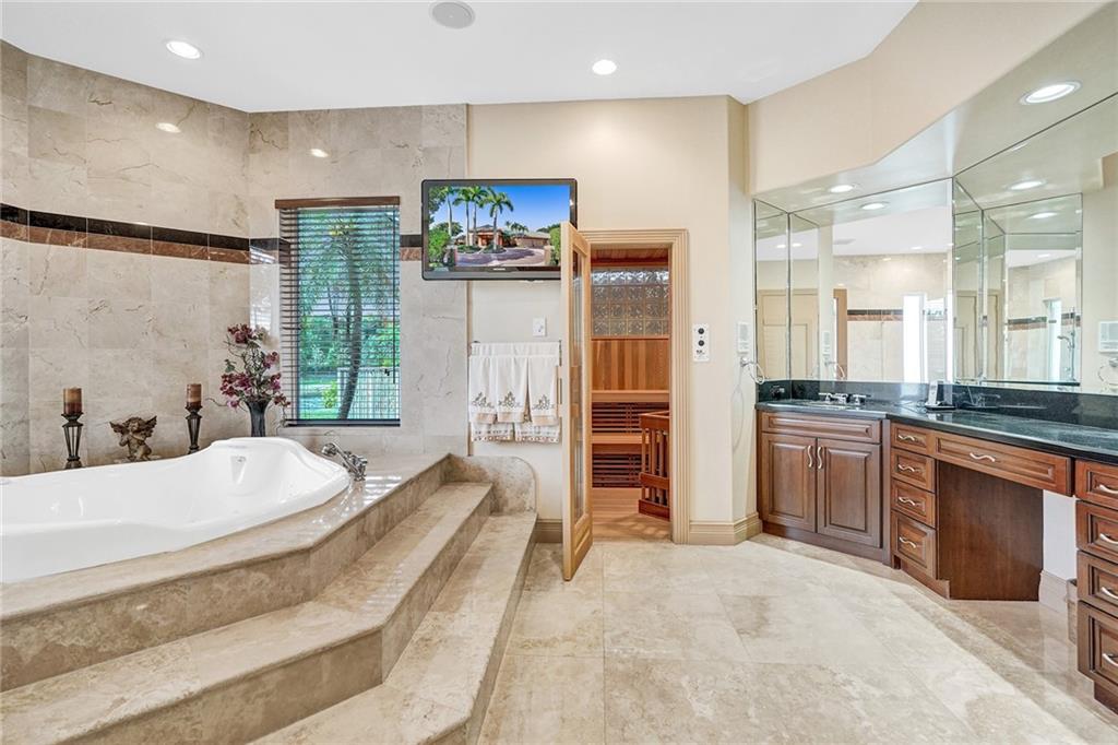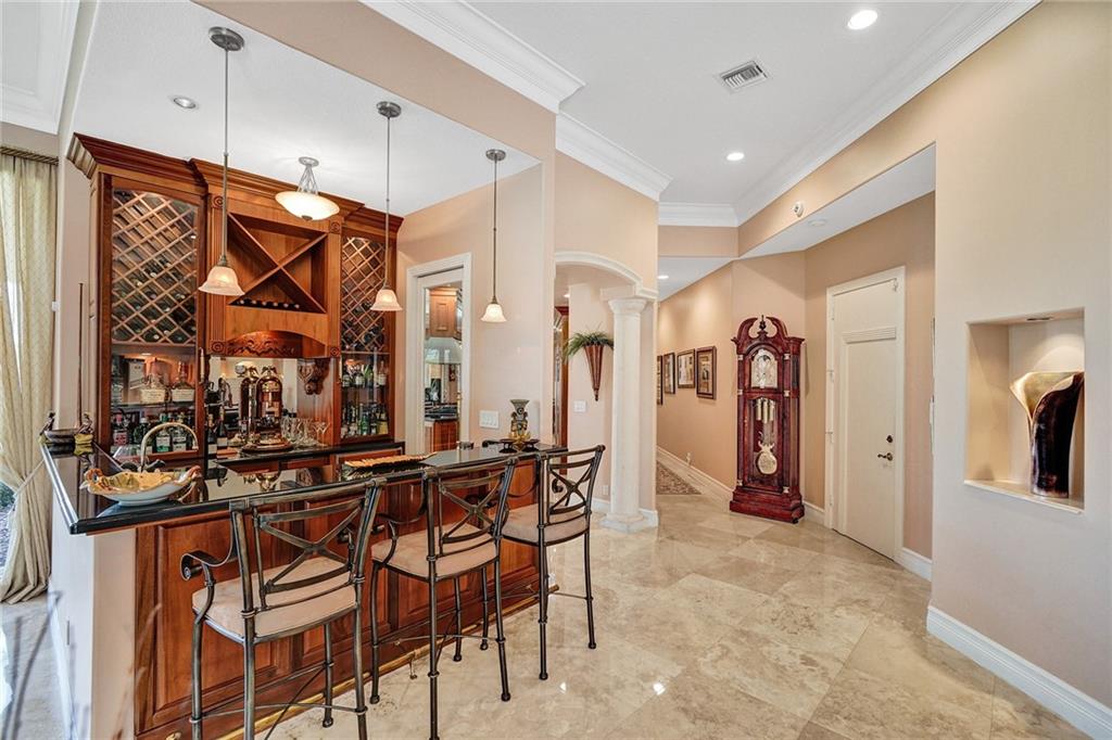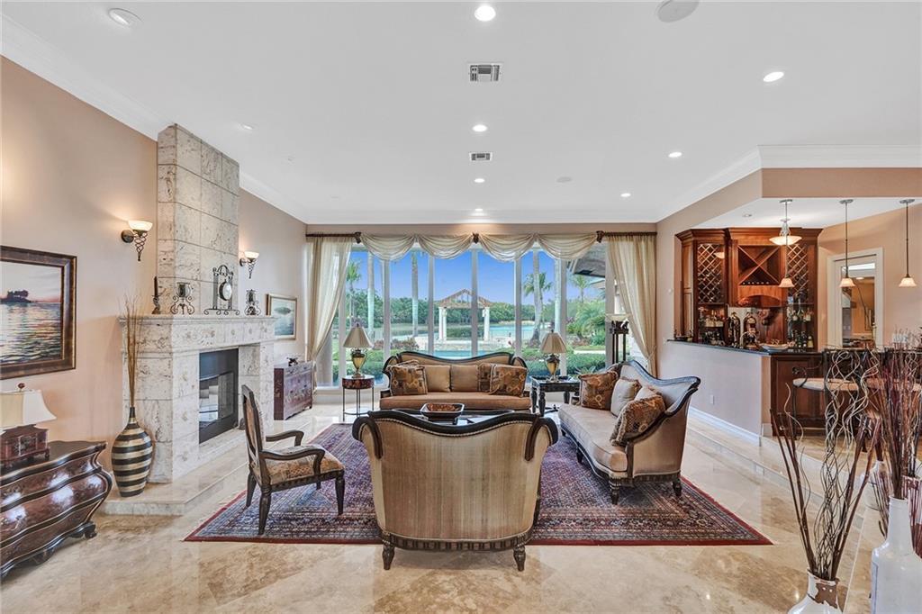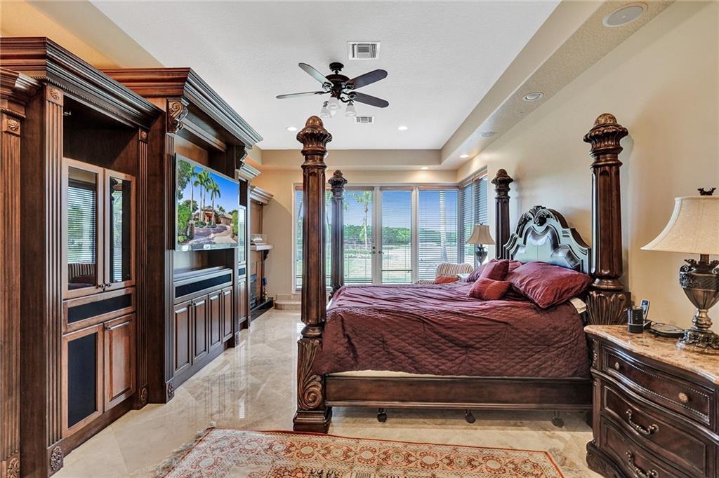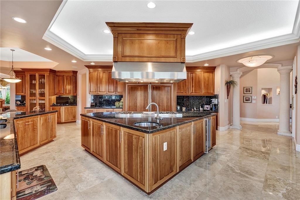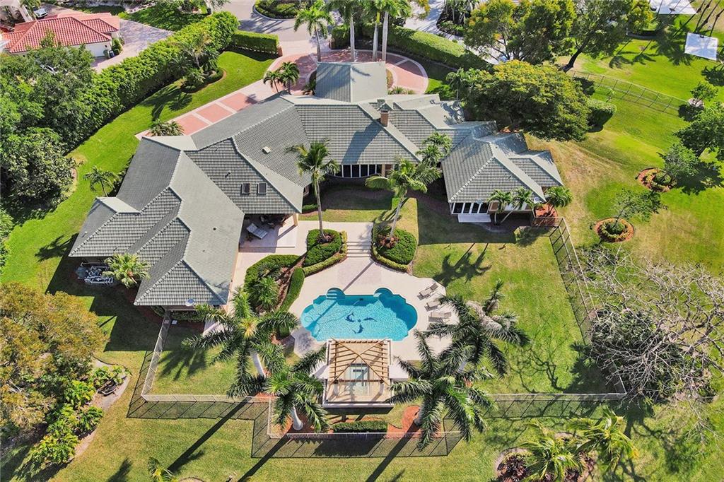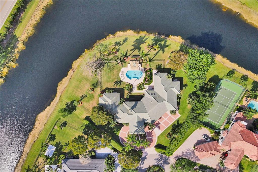 Windmill Ranch Estates home on 1.34 acre lot w/400ft lakefront. Single Story, 6,196sqft U/A, 5 bed & 6 full baths & 1 half-bath. Grand porte-cochere entrance & double Impact door entry. Breathtaking pool grounds & lake w/spectacular sunsets daily. Outdoor entertaining area w/oversized heated pool, pergola covered spa, fully equip summer kitchen & spacious fenced yard. All new PGT Hurricane Impact Glass Windows & Custom Impact Doors, Crown Moldings & Custom Built-In Closets in all bedrooms. Gas and/or Wood Fireplace. Owner’s Bathroom suite w/giant spa tub, custom shower, & dry heat sauna. Chef’s Kitchen w/commercial grade Viking & Sub-Zero Appliances, real wood cabinetry, ample walk-in pantry. Wet bar. Saturnia Marble Floors in all living areas & 4 Car Garage floor. Furnishings negotiable.