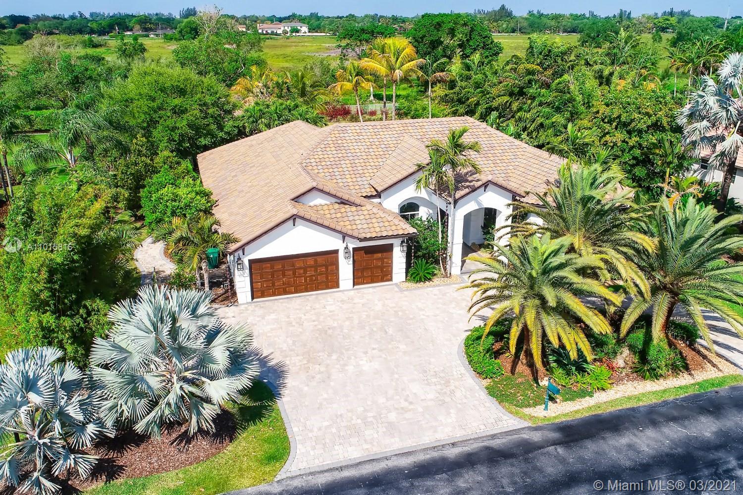 Florida Luxurious Life Style at its Best! Entertainment paradise located in the exclusive guard/gated community of Emerald Springs Estates.This home sits on a builders acre on a tropical paradise w/ breathtaking sunsets.Split floor plan w/ 4 bed + den 3 1/2 bath.Travertine marble floors & wood floors in the bedrooms.Large open kitchen w/ wood cabinets & granite counters w/ high end appliances.A Master Bedroom retreat w/ a sitting area & large windows.Master Bathroom with a walk behind shower a roman tub.A large custom made tiki hut that is just perfect for cooking & entertaining large parties.A large outside kitchen island w/ waterfall quartz.Several BBQ grills & burners outdoor shower & half a bath to enjoy outdoors.Come see for yourself to truly experience this Florida Tropical Paradise!