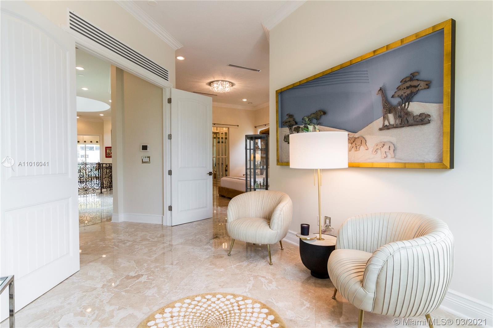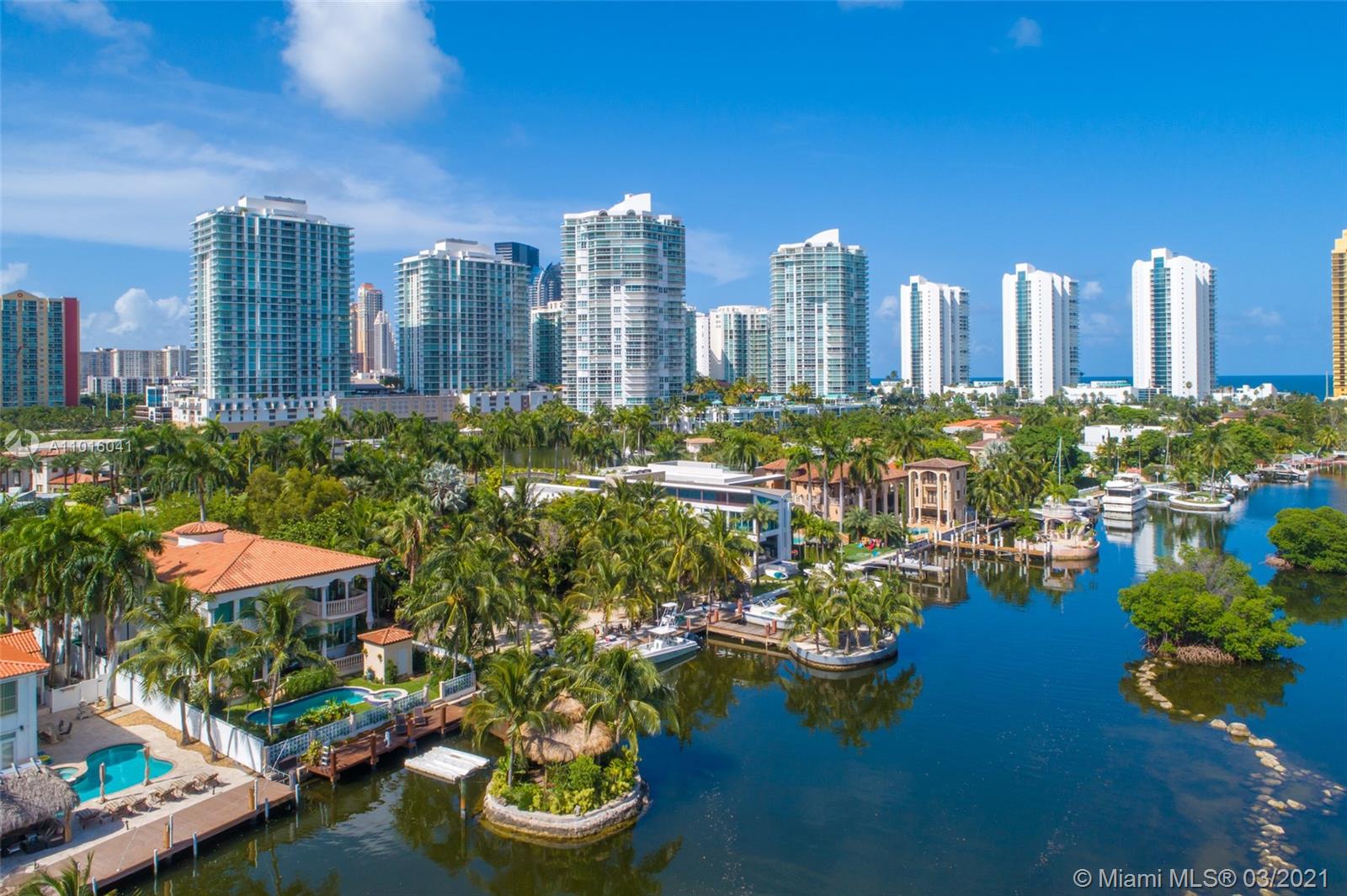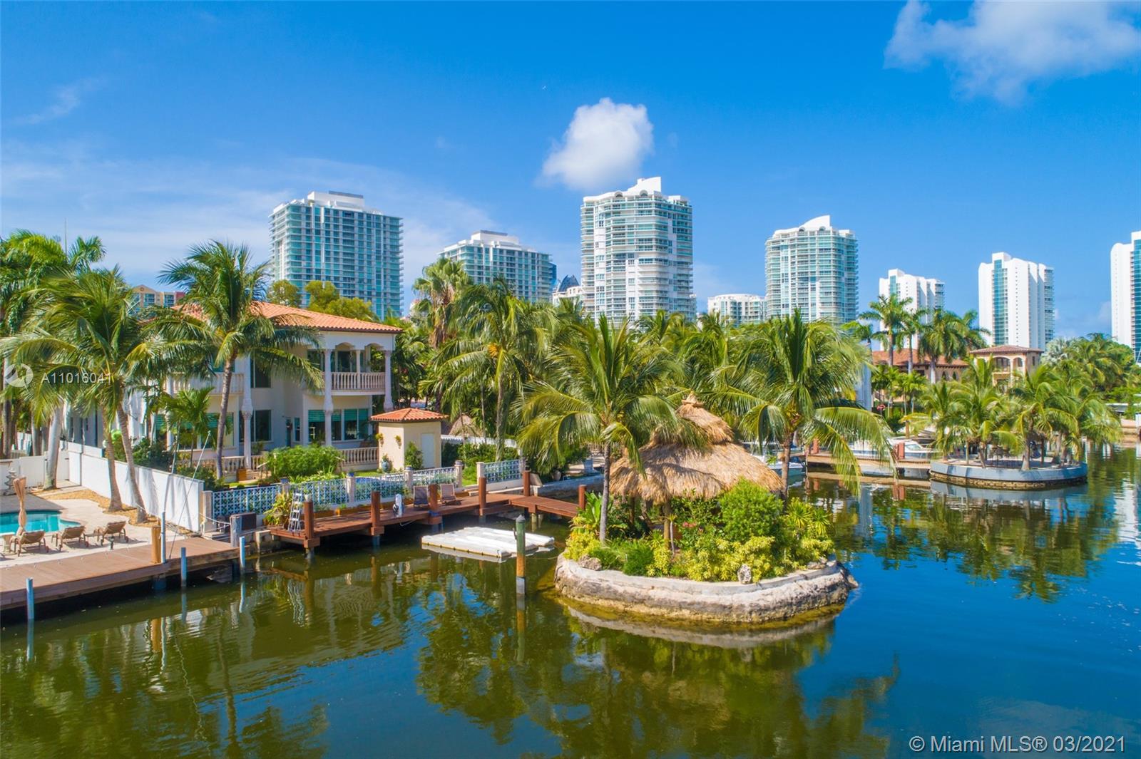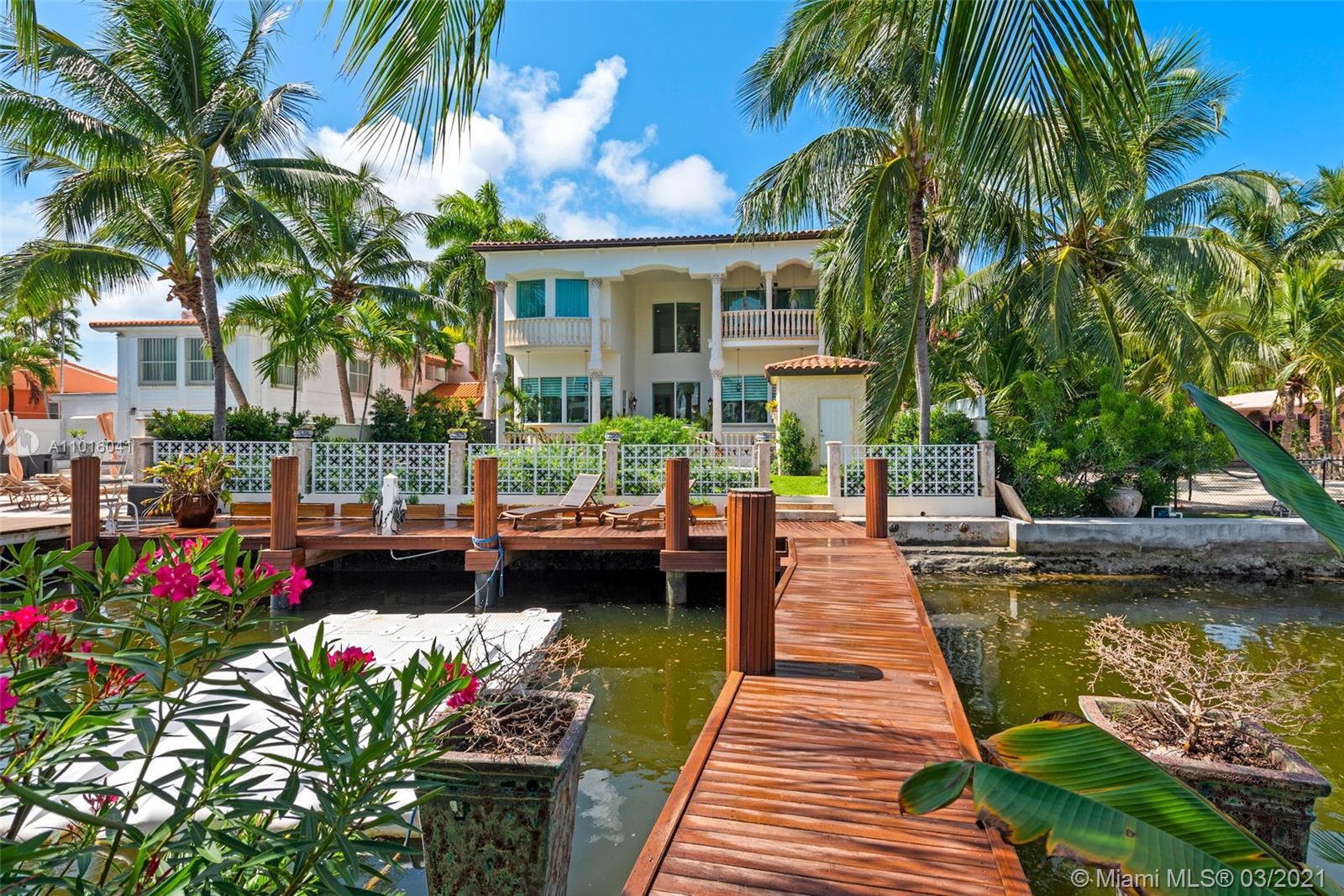 Truly an aquatic paradise, this incredibly elegant waterfront estate offers a magnificent 6,135 total SF 5bd/5.2ba floorplan situated on a 9,225 SF lot. 60ft of water frontage w/a 40ft dock + separate 2-jet ski slip overlooking the residence’s secluded private island. No fixed bridges to the bay or Ocean. Additional features include: grand atrium entrance, dramatic high-volume ceilings, designer finishes, detached guest suite, oversized impact windows/doors, elevator, 2 laundry rooms & chef’s open kitchen overlooking pool area. The regal double Master suites on the airy 2nd floor each offer gigantic walk-in closets, sitting areas, spa-like baths w/toto toilets & private terrace. 2-car garage, gym, & pool area w/cabana bathroom. Exclusive beach access from HOA for only $1 a day.