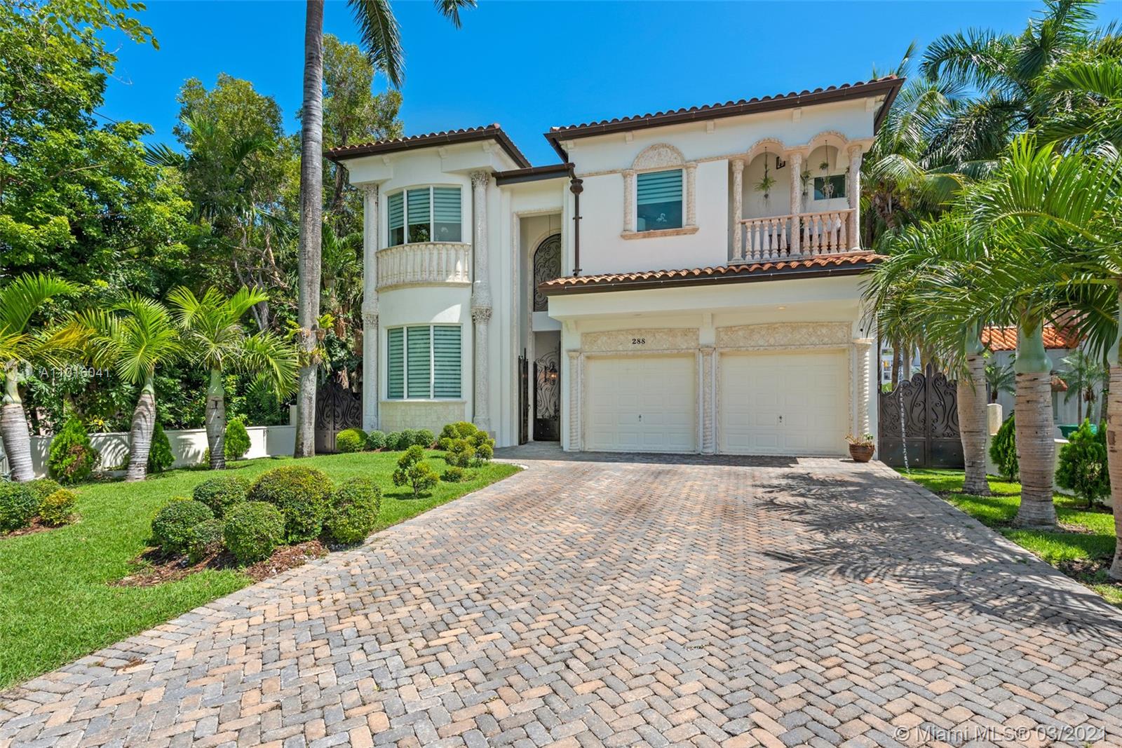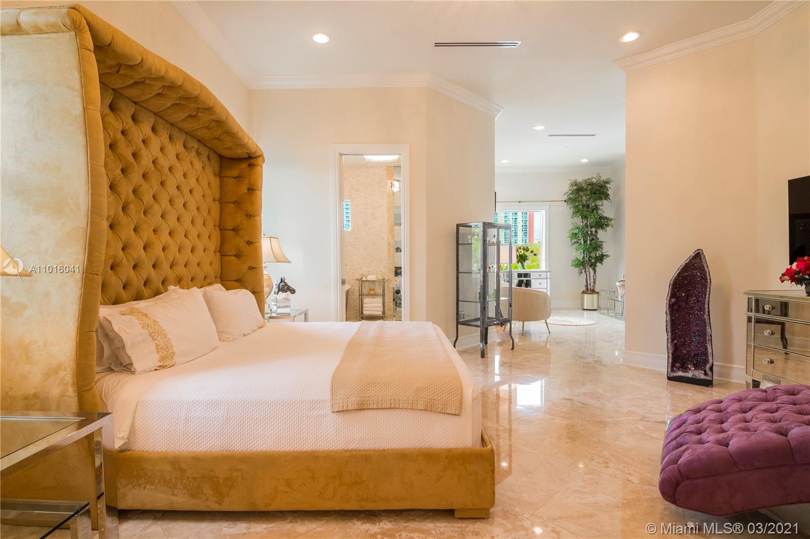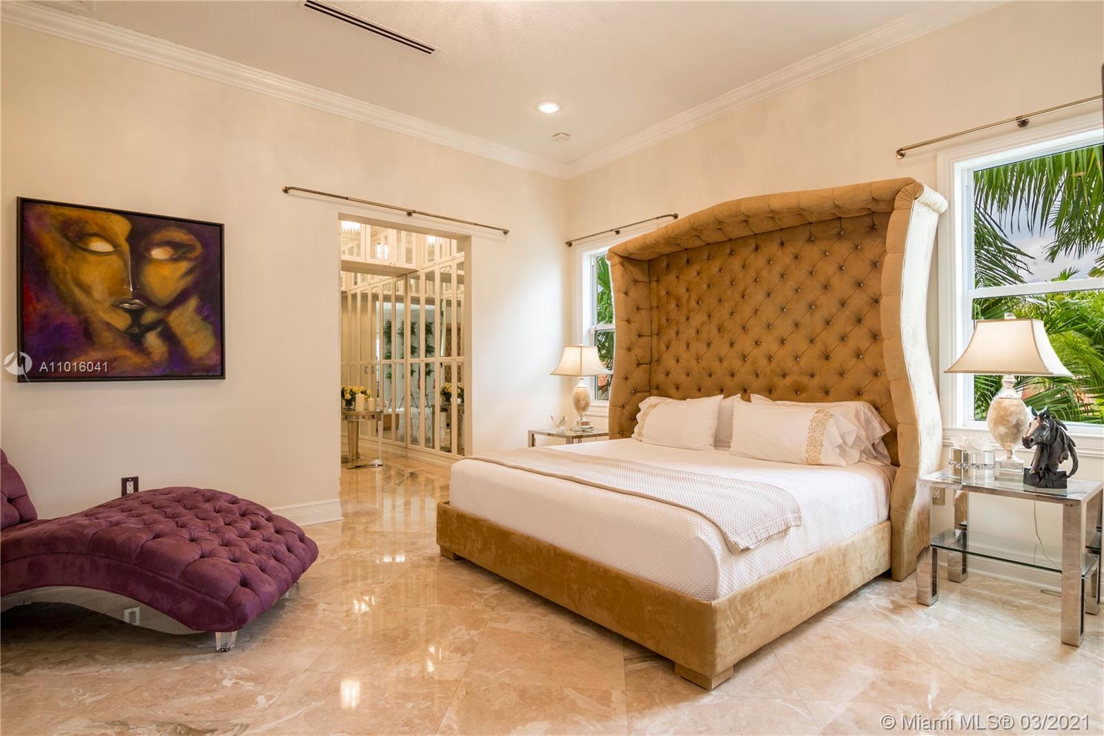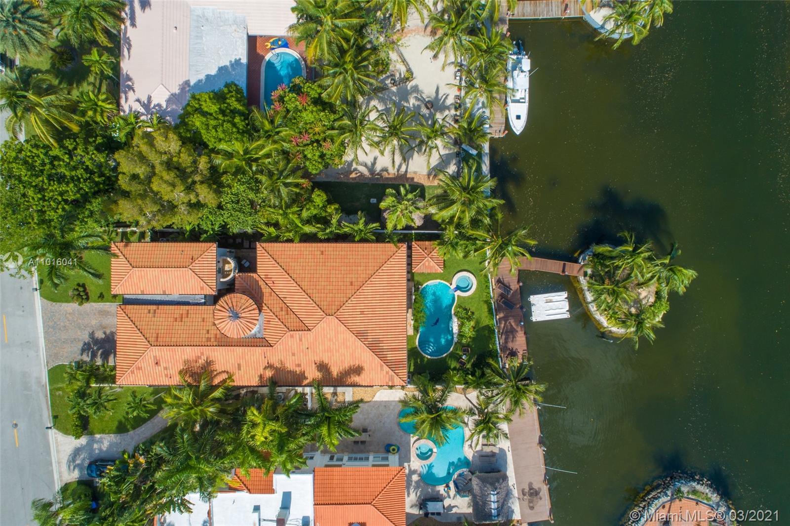 Truly an aquatic paradise, this incredibly elegant waterfront estate offers a magnificent 6,135 total SF 5bd/5.2ba floorplan situated on a 9,225 SF lot. 60ft of water frontage w/a 40ft dock + separate 2-jet ski slip overlooking the residence’s secluded private island. No fixed bridges to the bay or Ocean. Additional features include: grand atrium entrance, dramatic high-volume ceilings, designer finishes, detached guest suite, oversized impact windows/doors, elevator, 2 laundry rooms & chef’s open kitchen overlooking pool area. The regal double Master suites on the airy 2nd floor each offer gigantic walk-in closets, sitting areas, spa-like baths w/toto toilets & private terrace. 2-car garage, gym, & pool area w/cabana bathroom. Exclusive beach access from HOA for only $1 a day.