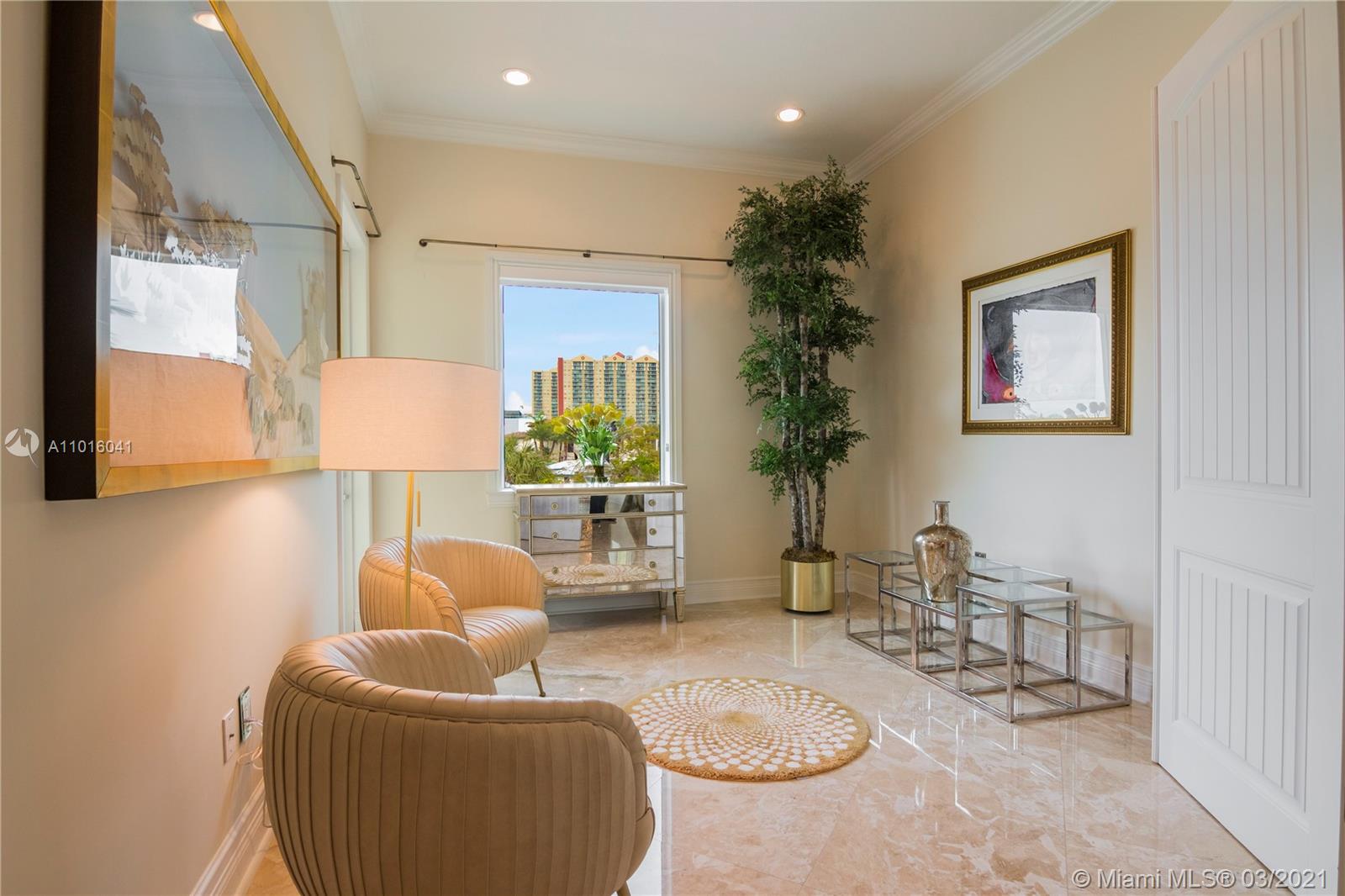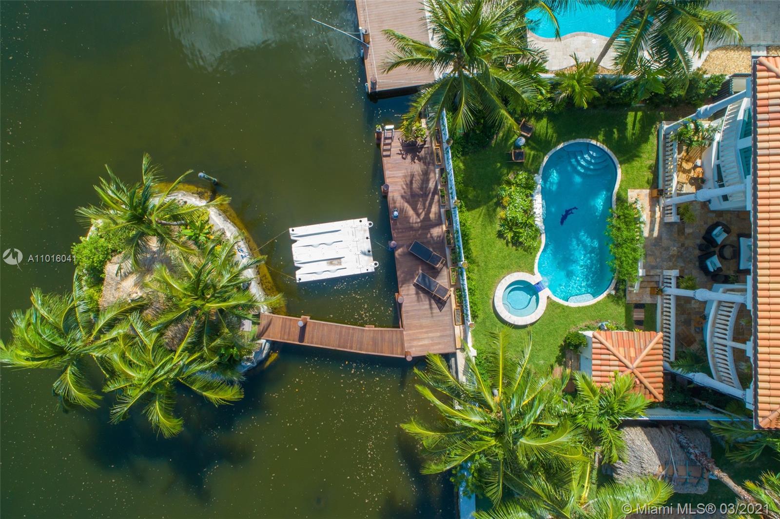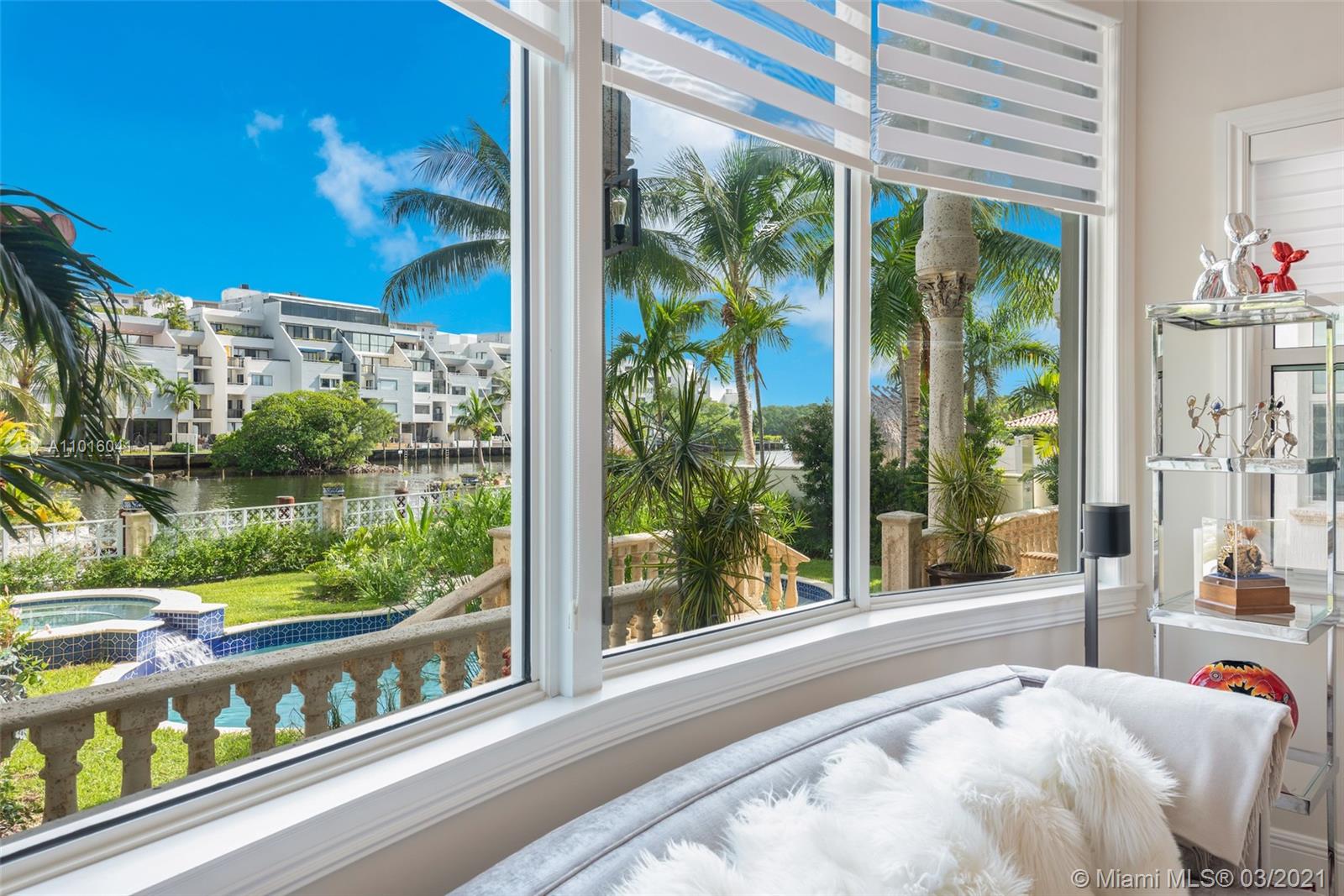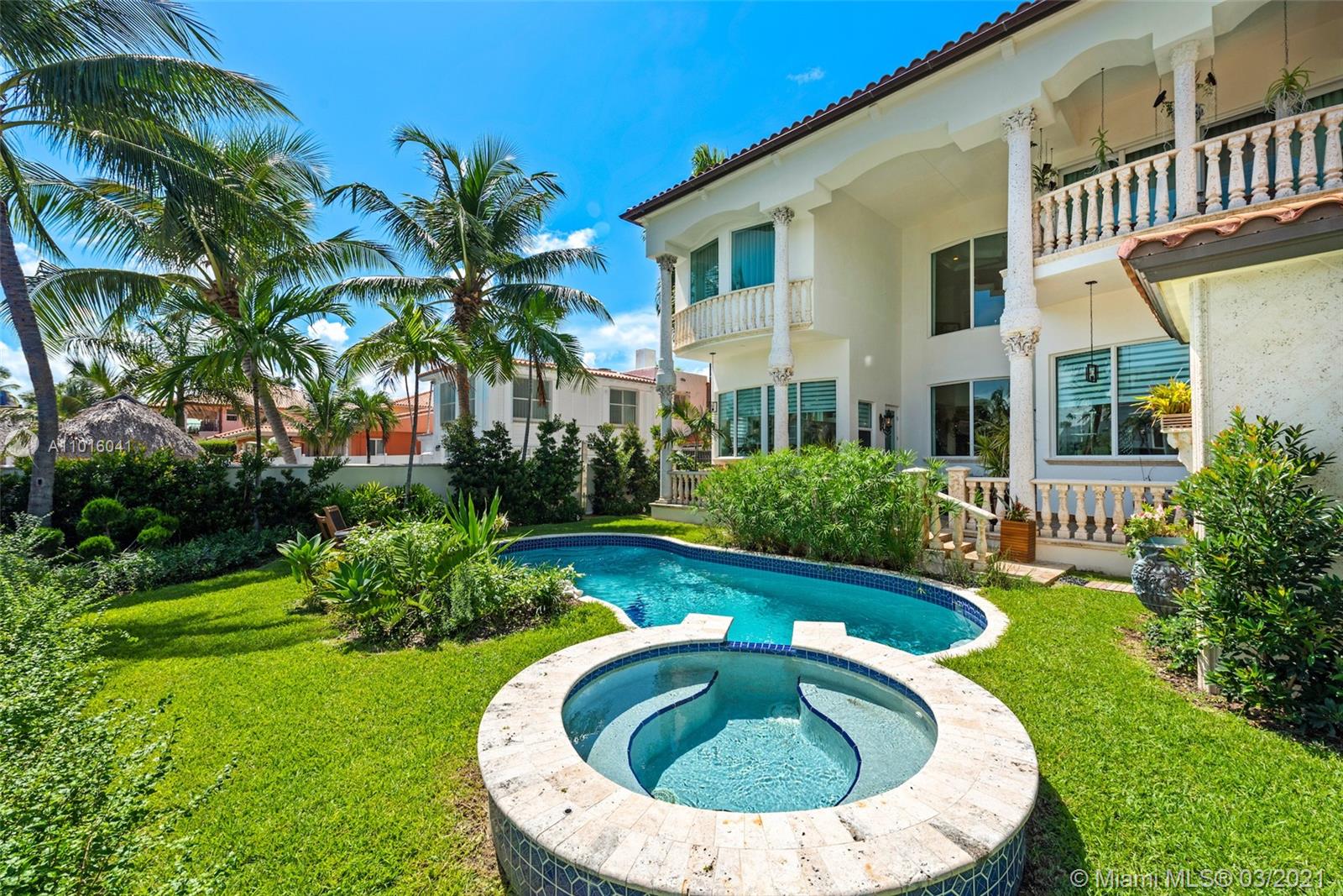 Truly an aquatic paradise, this incredibly elegant waterfront estate offers a magnificent 6,135 total SF 5bd/5.2ba floorplan situated on a 9,225 SF lot. 60ft of water frontage w/a 40ft dock + separate 2-jet ski slip overlooking the residence’s secluded private island. No fixed bridges to the bay or Ocean. Additional features include: grand atrium entrance, dramatic high-volume ceilings, designer finishes, detached guest suite, oversized impact windows/doors, elevator, 2 laundry rooms & chef’s open kitchen overlooking pool area. The regal double Master suites on the airy 2nd floor each offer gigantic walk-in closets, sitting areas, spa-like baths w/toto toilets & private terrace. 2-car garage, gym, & pool area w/cabana bathroom. Exclusive beach access from HOA for only $1 a day.