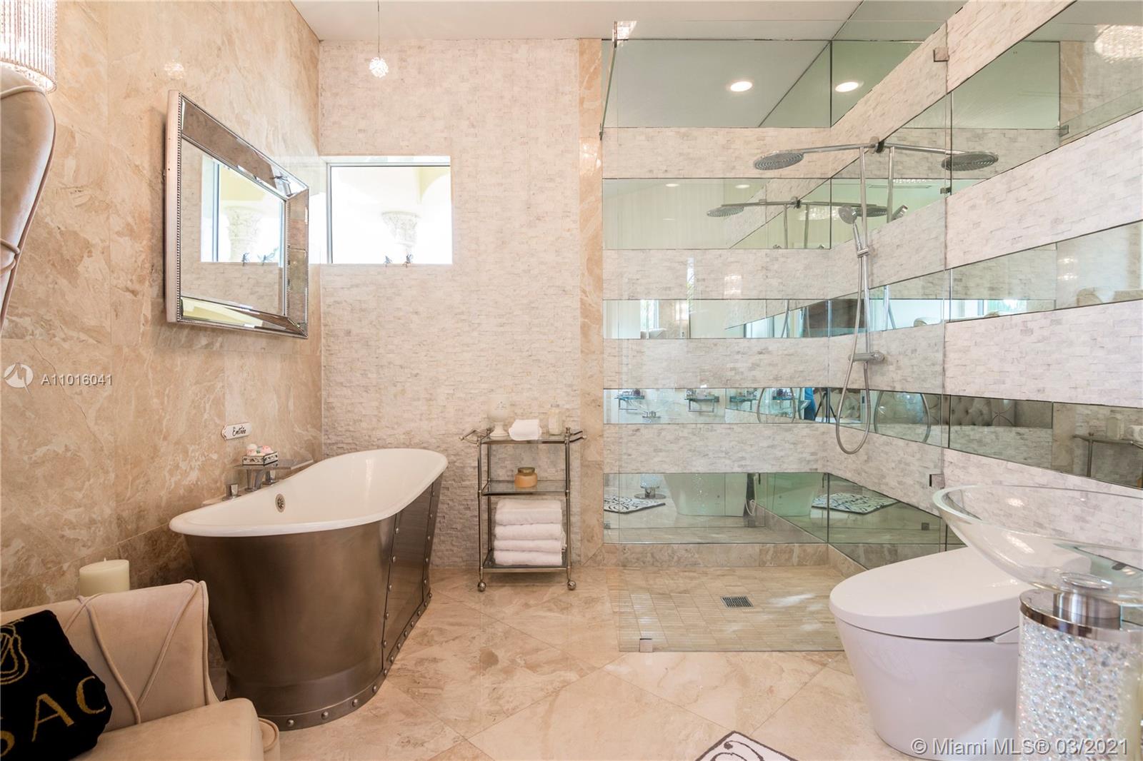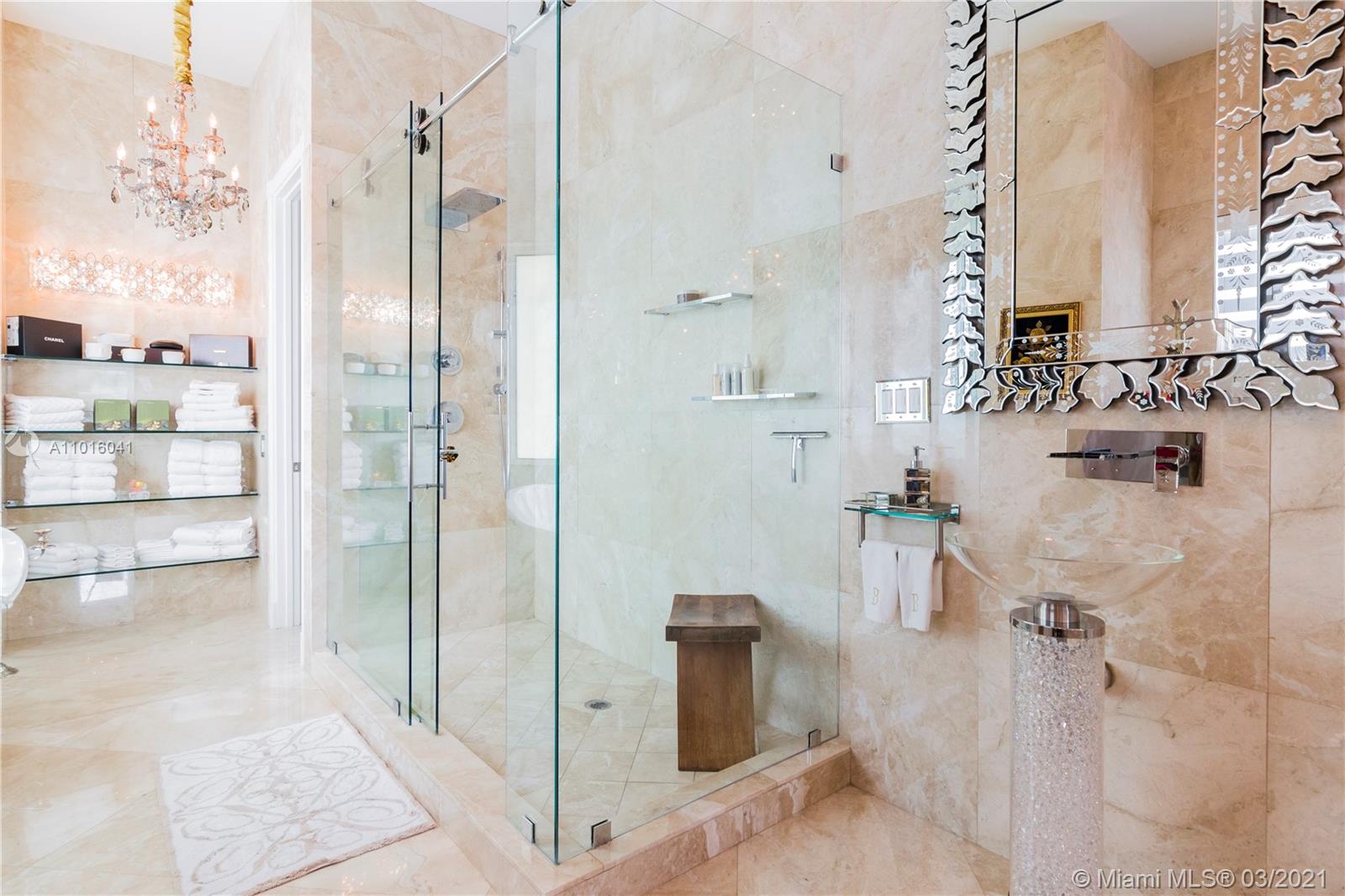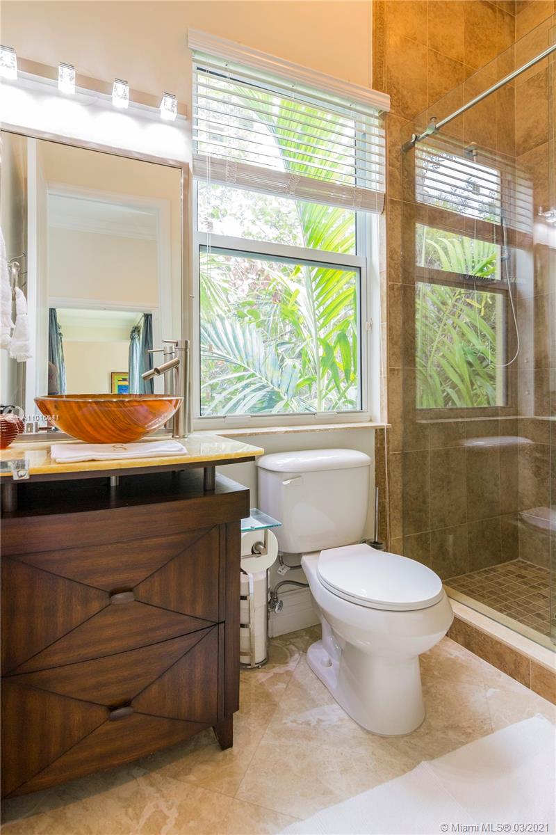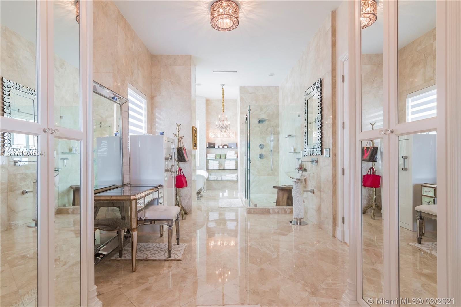 Truly an aquatic paradise, this incredibly elegant waterfront estate offers a magnificent 6,135 total SF 5bd/5.2ba floorplan situated on a 9,225 SF lot. 60ft of water frontage w/a 40ft dock + separate 2-jet ski slip overlooking the residence’s secluded private island. No fixed bridges to the bay or Ocean. Additional features include: grand atrium entrance, dramatic high-volume ceilings, designer finishes, detached guest suite, oversized impact windows/doors, elevator, 2 laundry rooms & chef’s open kitchen overlooking pool area. The regal double Master suites on the airy 2nd floor each offer gigantic walk-in closets, sitting areas, spa-like baths w/toto toilets & private terrace. 2-car garage, gym, & pool area w/cabana bathroom. Exclusive beach access from HOA for only $1 a day.