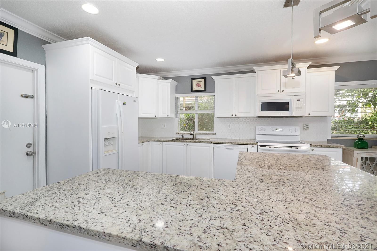 This lovely two bedroom home in highly desirable Coral Gables is flooded with natural light and sits on a quiet street lined with beautiful mature oak trees. From the cozy front porch, enter the spacious open concept living space, featuring a charming dining/living room and a newer open kitchen with granite countertops. Updated bathrooms, plantation shutters, all impact windows and doors, one car garage, separate family room/den/office, small covered patio and open outdoor brick area perfect for al-fresco dining and BBQ's. This well maintained home is centrally located, close to Granada Golf Course, Coral Gables Country Club, Venetian Pool, the Biltmore Hotel, UM, Miracle Mile shopping district, and Miami International Airport. A beautiful place to call home.