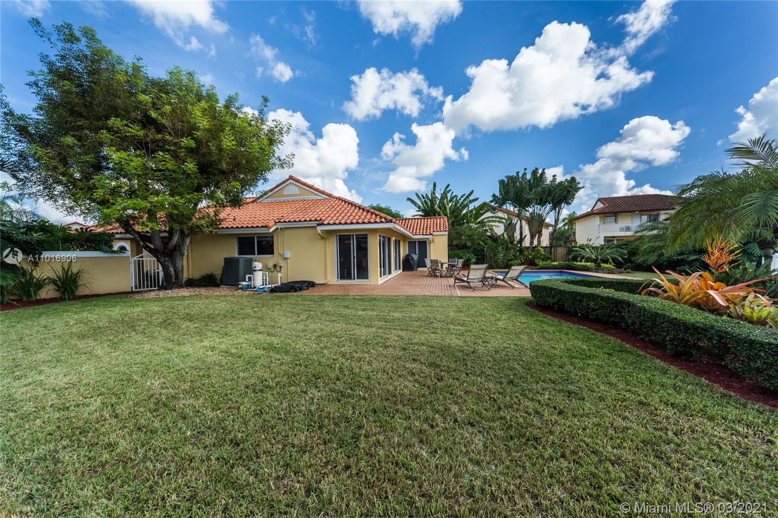 Doral Dunes. Beautiful one story lake view single home . Open floor, well maintained and ready to move in. 3 bedrooms / 2 full baths. Gated community. Family room, formal dinning room, nice kitchen with window, granite counter tops, eat-in kitchen,laundry room. Marble floors thru-out and wood floor in bedrooms. Blinds, shades and impact windows. Master bedroom has 2 built in walk in closet, shower , dual sinks. Huge great patio porch with pool. Lake and golf views. Covered Garage door opener total parking for 6 vehicles two inside and 4 outside driveway. AAA RATED SCHOOL, SHOPPING AND HIGHWAYS.LOCATED BLOCKS FROM THE DORAL PARK COUNTRY CLUB,GOLF,TENNIS,POOL,GYM & 19TH HOLE RESTAURANT AT CLUB HOUSE.