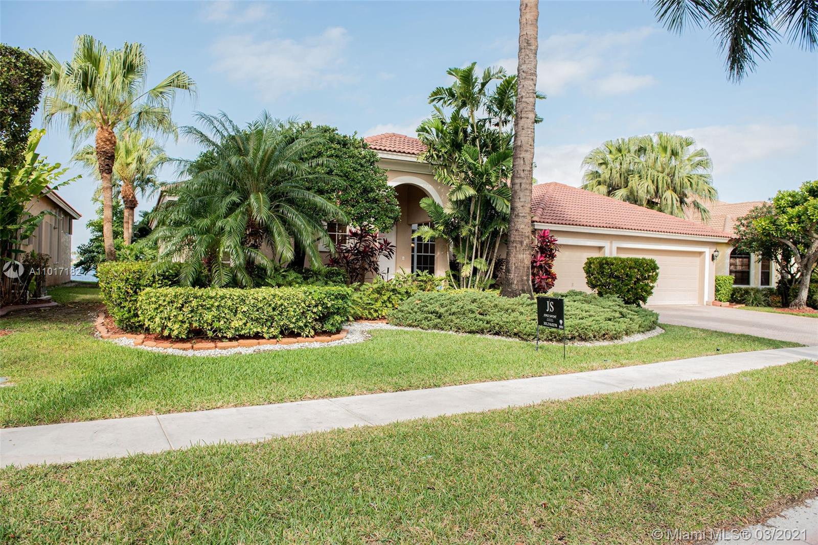 Beautiful single story home with a spectacular lake view. This home is nestled on one of the the largest lakes in west Miramar with water views that are unobstructed. In the beautiful community of Sunset Lakes on models row, this home is a 4/3, immaculately kept with a brand new AC, accordion shutters, freshly painted interior with new carpet in all the bedrooms. Community features include an Olympic size pool, clubhouse with gym, playground, and a 24 hour guarded visitors entrance.