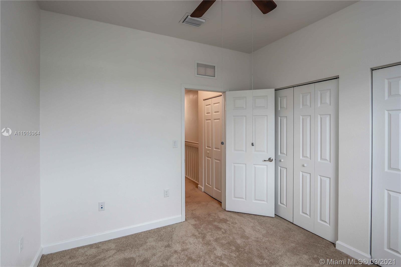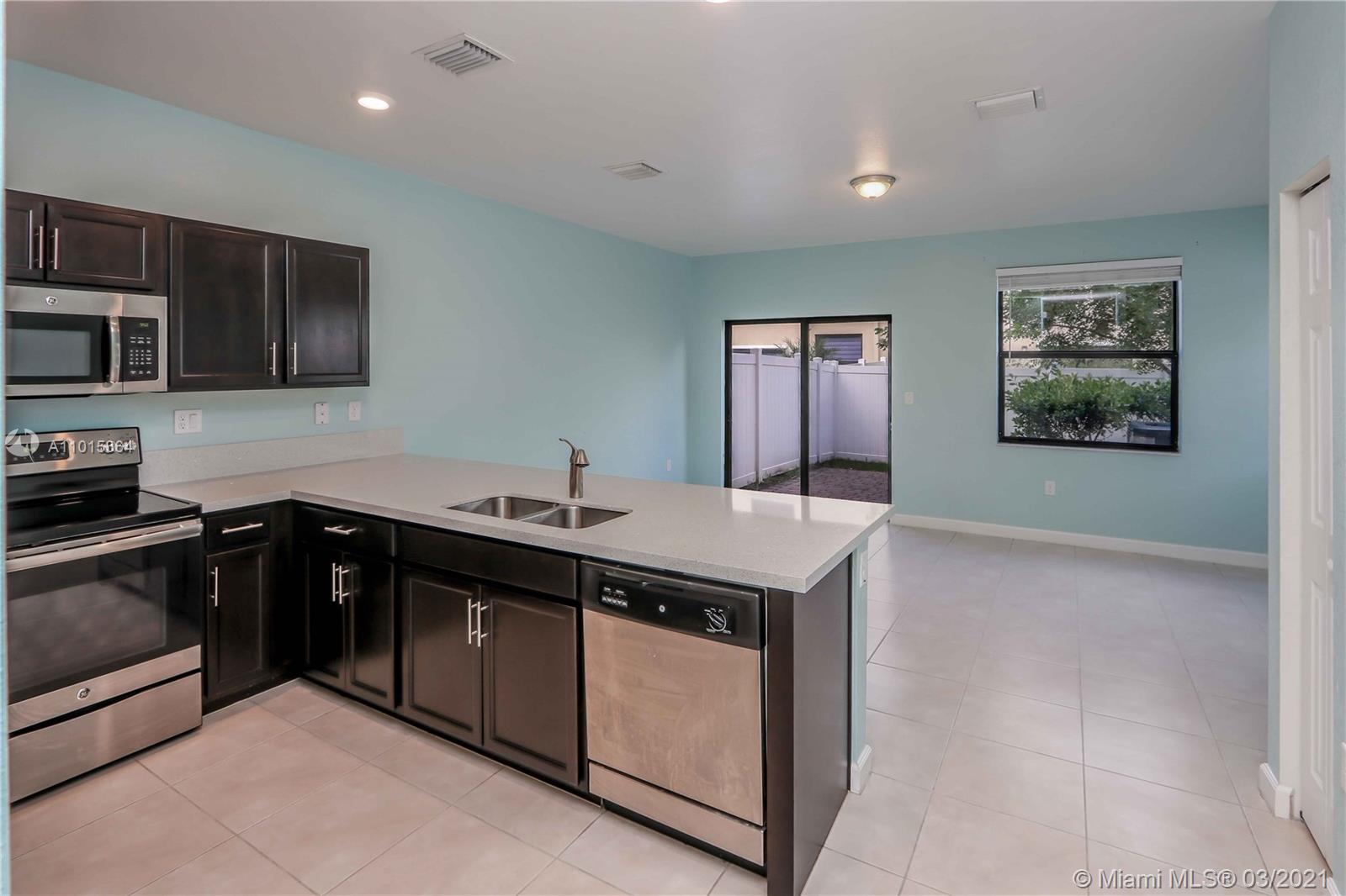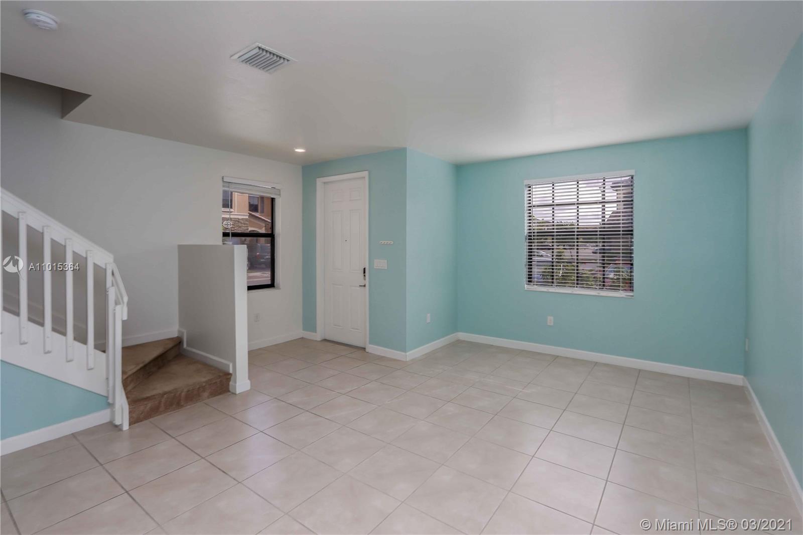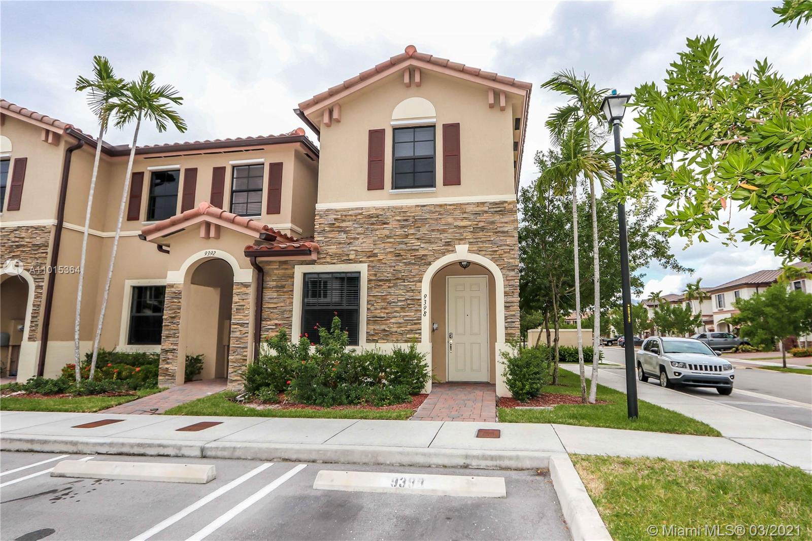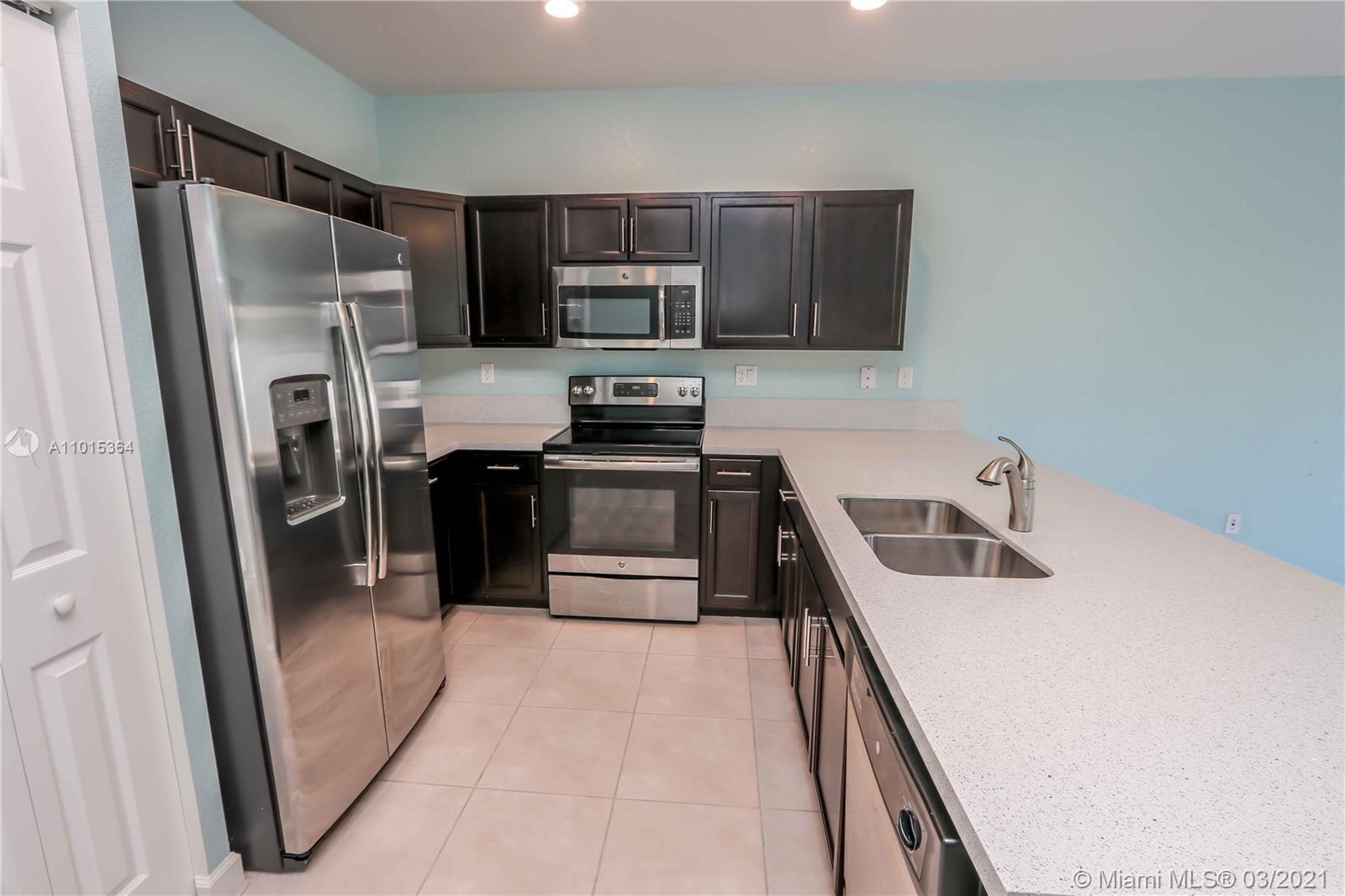 Gorgeous 3-bedroom, 2-full Bath, 1-half Bath, and two assigned parking spaces! Gourmet kitchen with granite counter tops, new stainless-steel appliances, pantry and hardwood kitchen cabinets! Porcelain floor downstairs and carpet upstairs, washer/dryer, water heater, tile showers, glass door in master bedroom bathroom, and fence in backyard! In the gated new community, Bonterra. Brand new Clubhouse with community pool with splash pad for kids, full gym, children playground, entire community family friendly, multiple visitor’s parking spaces! Close to supermarkets, gas station, schools and close to the turnpike, I-75 and Palmetto Expressway!