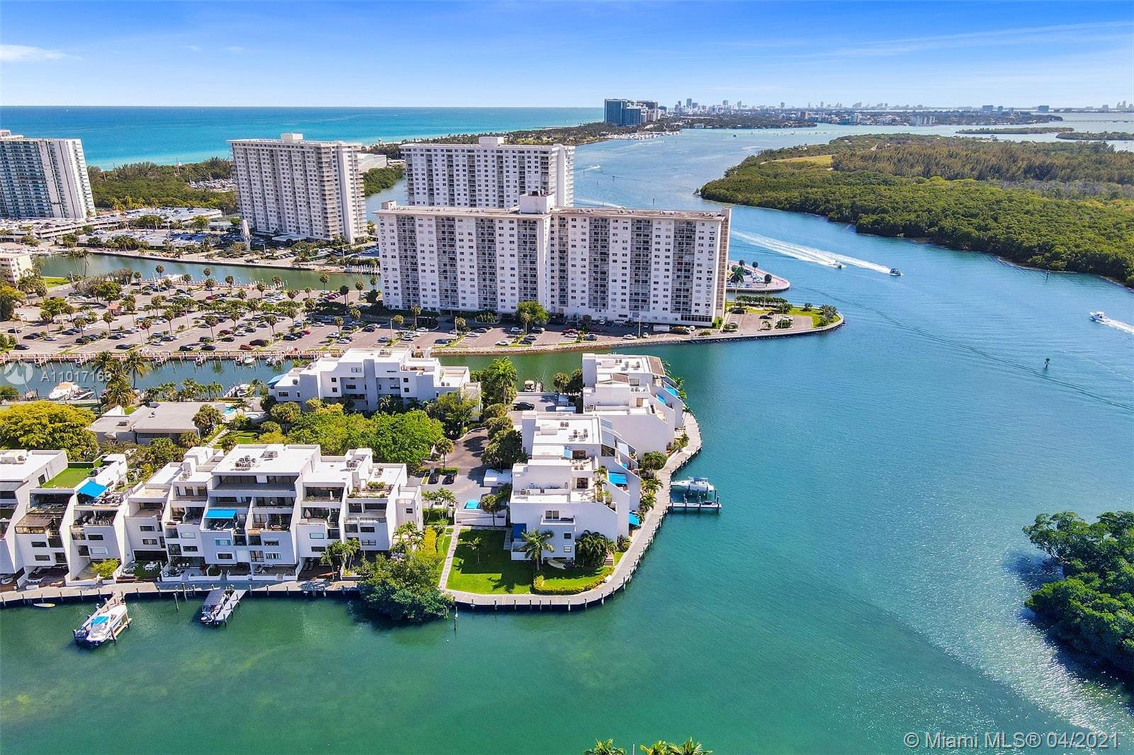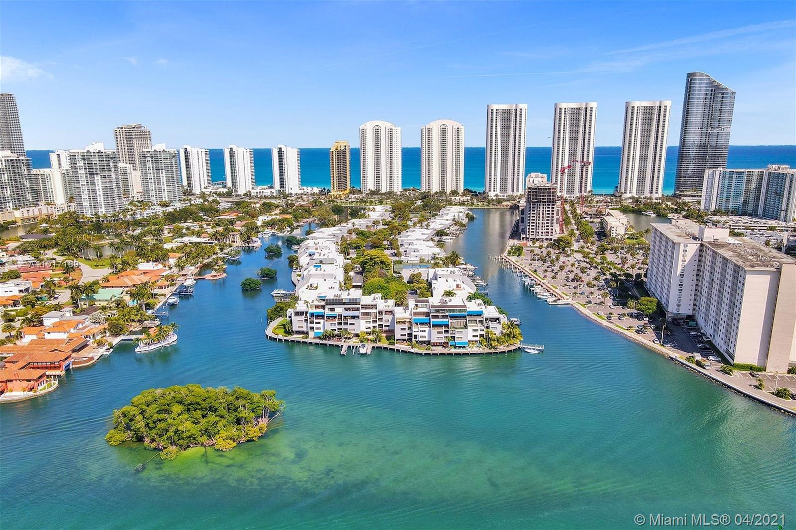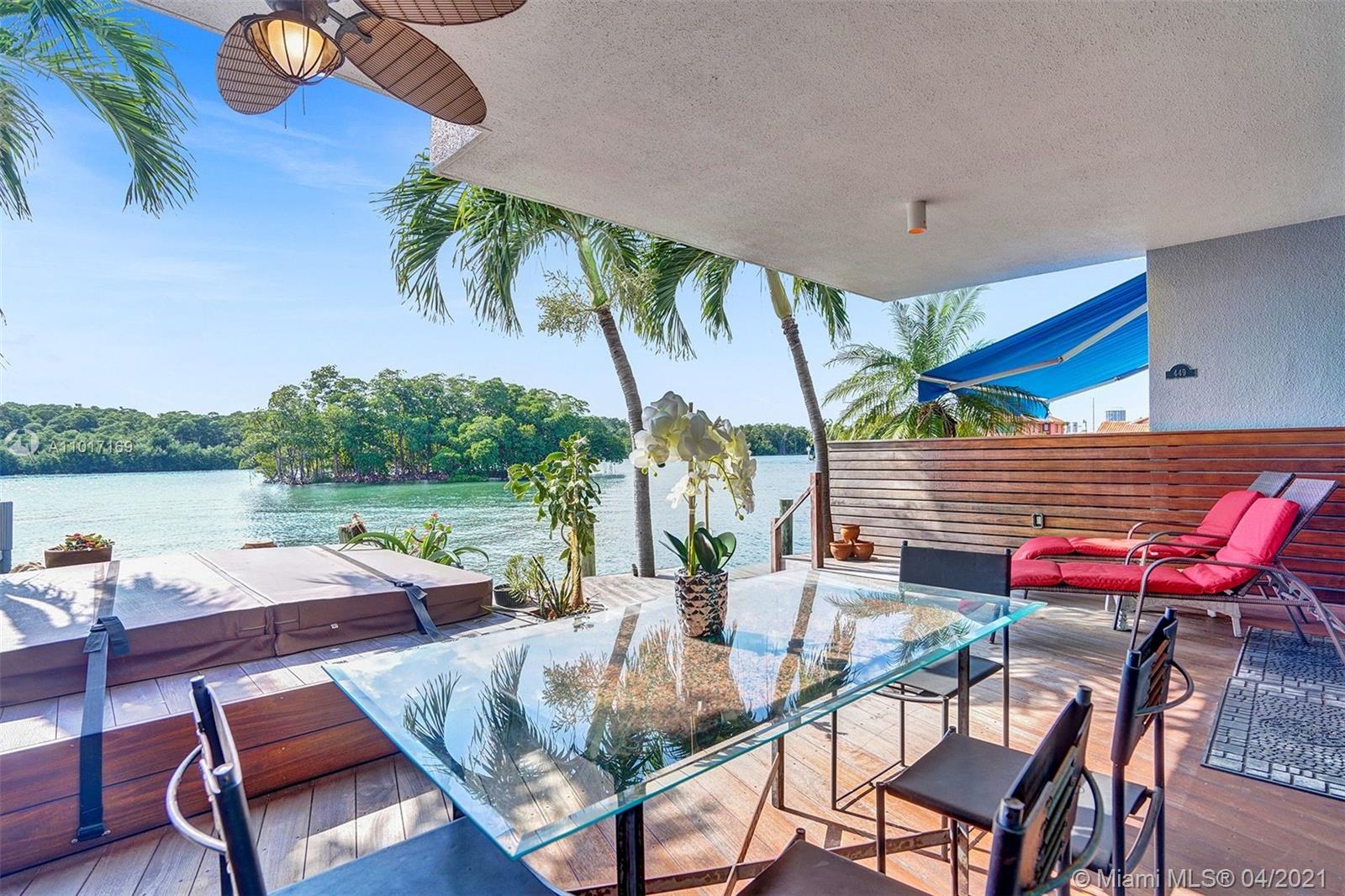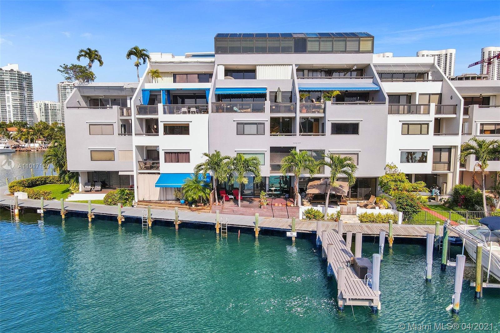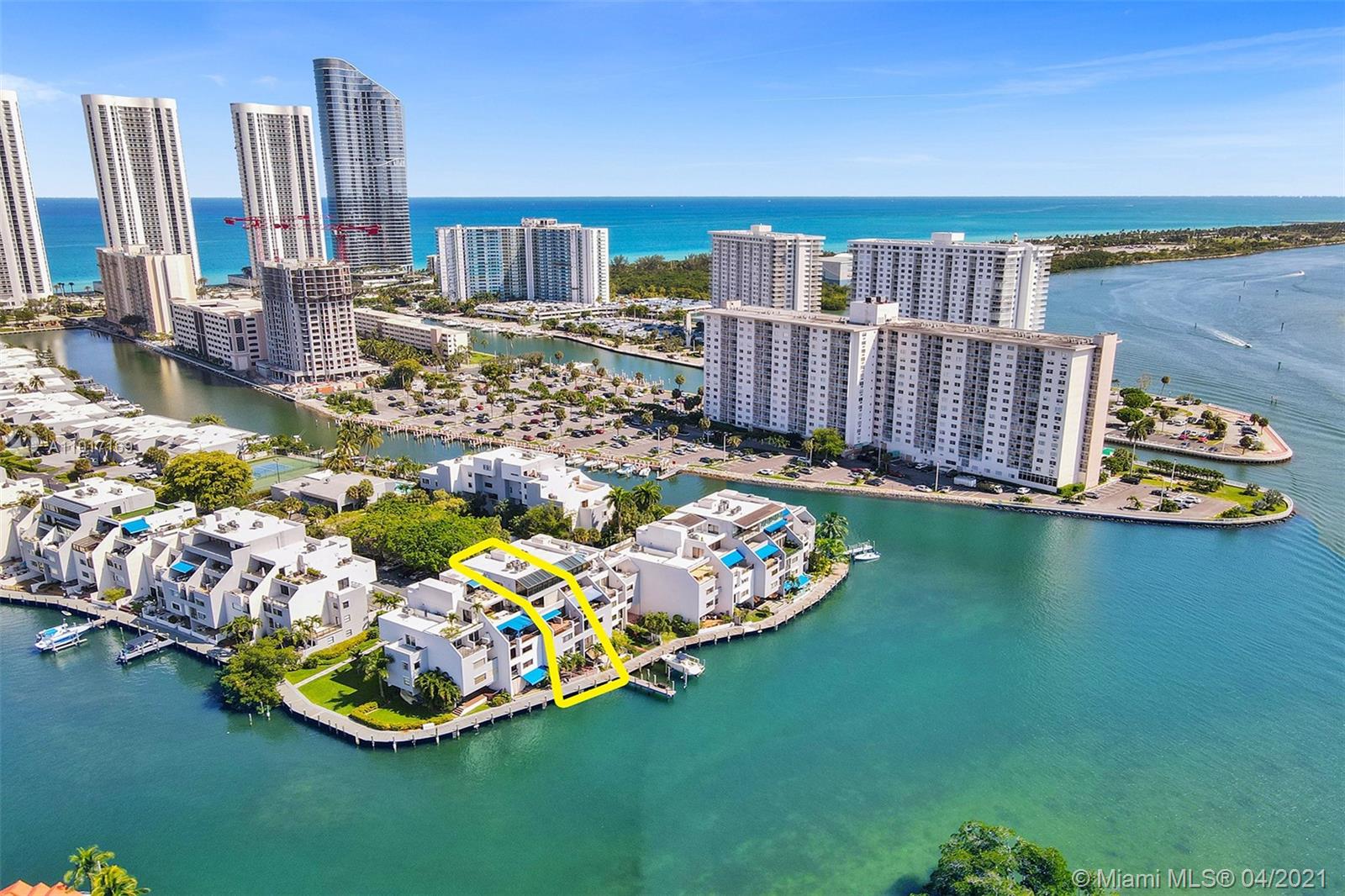 THE BEST VIEWS ON THE ISLAND with an oversized back patio and a Thermo spa jacuzzi. This gorgeous townhouse has a magnificent open gourmet kitchen, ceramic cherry floors, volume ceilings renovated bathrooms and more. The master bedroom is overlooking the intercostal and has an additional closet space. Enjoy water views & romantic sunsets on this private Island of Sunny Isles with 24 hours guarded security. The island offers a swimming pool, tennis courts, gym, dog park & kids play area. For those who like to fish, the fishing is right off the dock as well! The beach is only 5 min walk. Minutes to the best attractions in Miami.