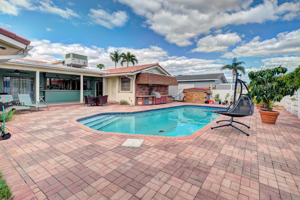 Come see this amazing Hollywood Hills pool home.This rarely available highly sought after area is the perfect place to call home.This home boasts a wide open floor plan with porcelain floors throughout. Enjoy the oversized kitchen with a pass through window to the pool area.This home has a separate living, family, and dining room. This home has been recently painted and has oversized baseboards and crown moldings throughout.The master bathroom has been completely upgraded with granite counters and plenty of storage. This home has a wonderful tropical fenced in backyard with a pool and an outdoor kitchen.This home has hurricane complete hurricane shutters.Just bring your tooth brush to this super clean home, Located just mins to Casino. REALTORS PLEASE READ SPECIAL CLAUSES PRIOR TO OFFER.