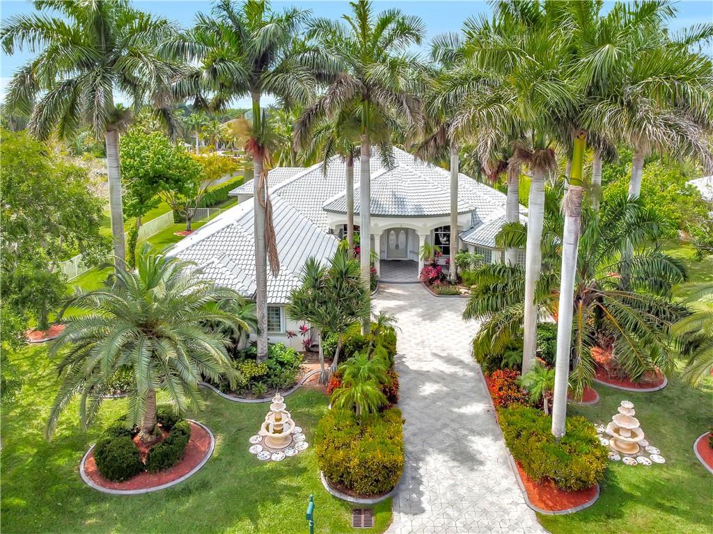 High Polished Marble flooring throughout living areas. Custom Crown moldings throughout. Coffered ceilings throughout home, Custom architectural details in foyer with built ins, Family room with custom built ins, Wet bar with refrigerator and wine cooler, Master bedroom with sitting area, Walk in closets, Bathrooms off every bedroom, Custom built-ins in office, custom wrought iron accents between wet bar and breakfast area, family room and kitchen area, Huge pool patio entertainment area, Home generator, Accordion shutters, Great water view!