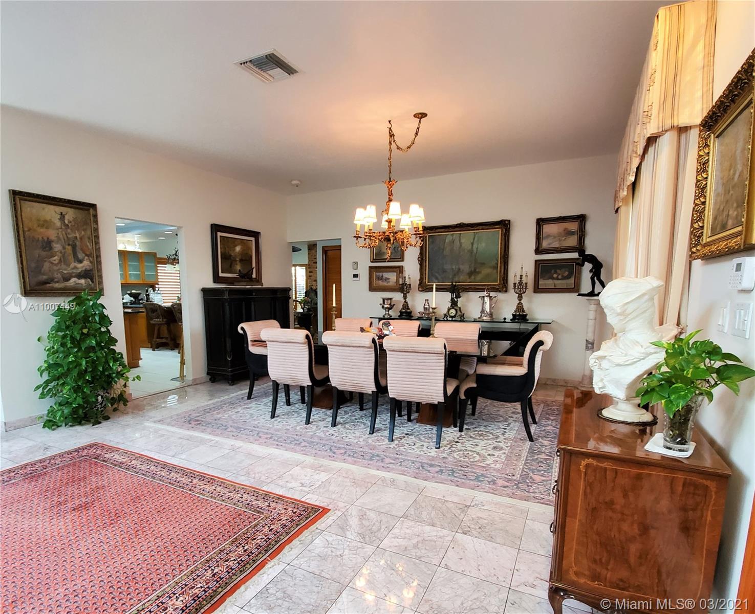 This is a one of a kind home where no expense has been spared and meticulous attention to detail, for a buyer with decerning taste. Airy 9 ft. ceilings, 130 Sq. Ft. enclosed Atrium with waterfall and greenery pool, Brick fireplace, Sub-Zero Fridge and Freezer, Custom built office with two work stations and filing cabinets and plenty of storage, Huricane windows and doors including garage door, 1900 Sq. Ft. screen enclosed Lania, custom built-in closets thoughout, Plantation shutters throughout, Custom kitchen with slide-out drawers all dressed in beautiful Azure/Black granite. Sub-Zero Side by Side Two Kitchen Aid dishwashers.Fantastic gardens with mango, avacado, and banana trees. Marble floors, solid wood doors, and many other features too numerous for this space.