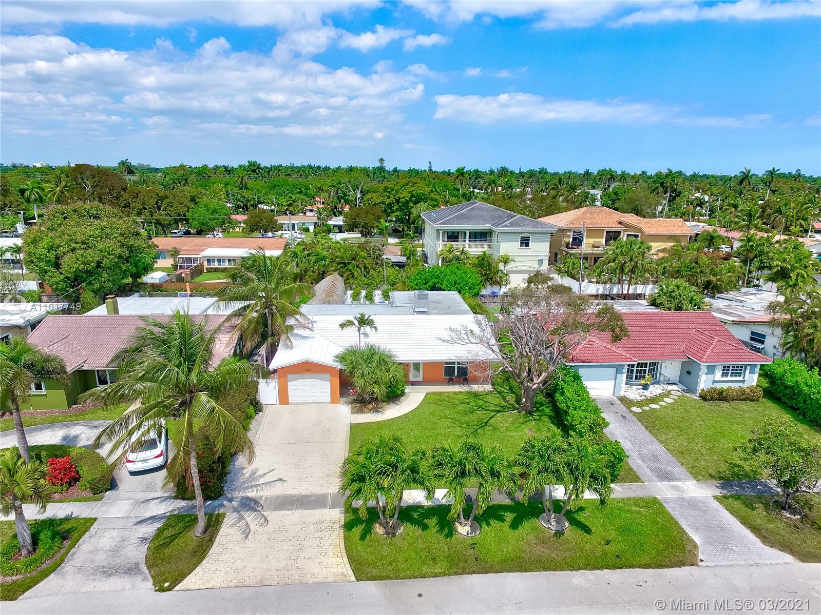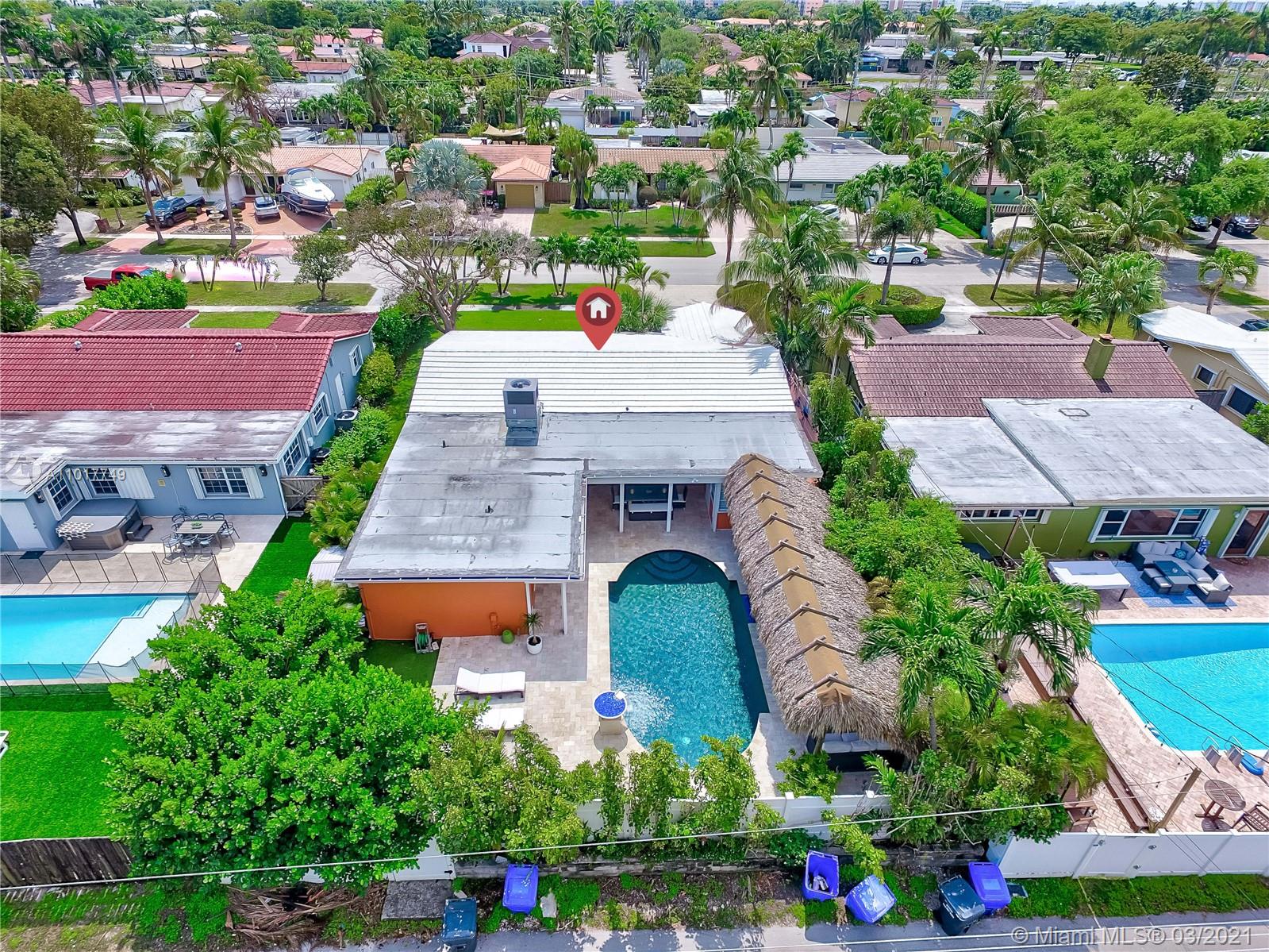 Gorgeous Tropical Retreat! No detail was missed remodeling this exquisite home. Private backyard surrounded by lush, new landscaping is truly a hidden oasis. Have a fun day in the Sun under your luxurious massive Tiki Hut or relax by the majestic saltwater heated pool w/ spectacular gas fire torch waterfall, river rock & jacuzzi. Fabulous Travertine patio. Impact windows & doors. Plantation Shutters. Open beautiful kitchen w/ granite countertops & tile backsplash. Master suite is spacious w/ a large bathroom w/ glass shower door & direct access to the pool & patio. Highlights include new pool pump & central AC, new sprinkler system w/ well, 24” porcelain tiles throughout living area & kitchen. Close to the Beach, houses of worship, restaurants & shopping. Truly a “Must See”