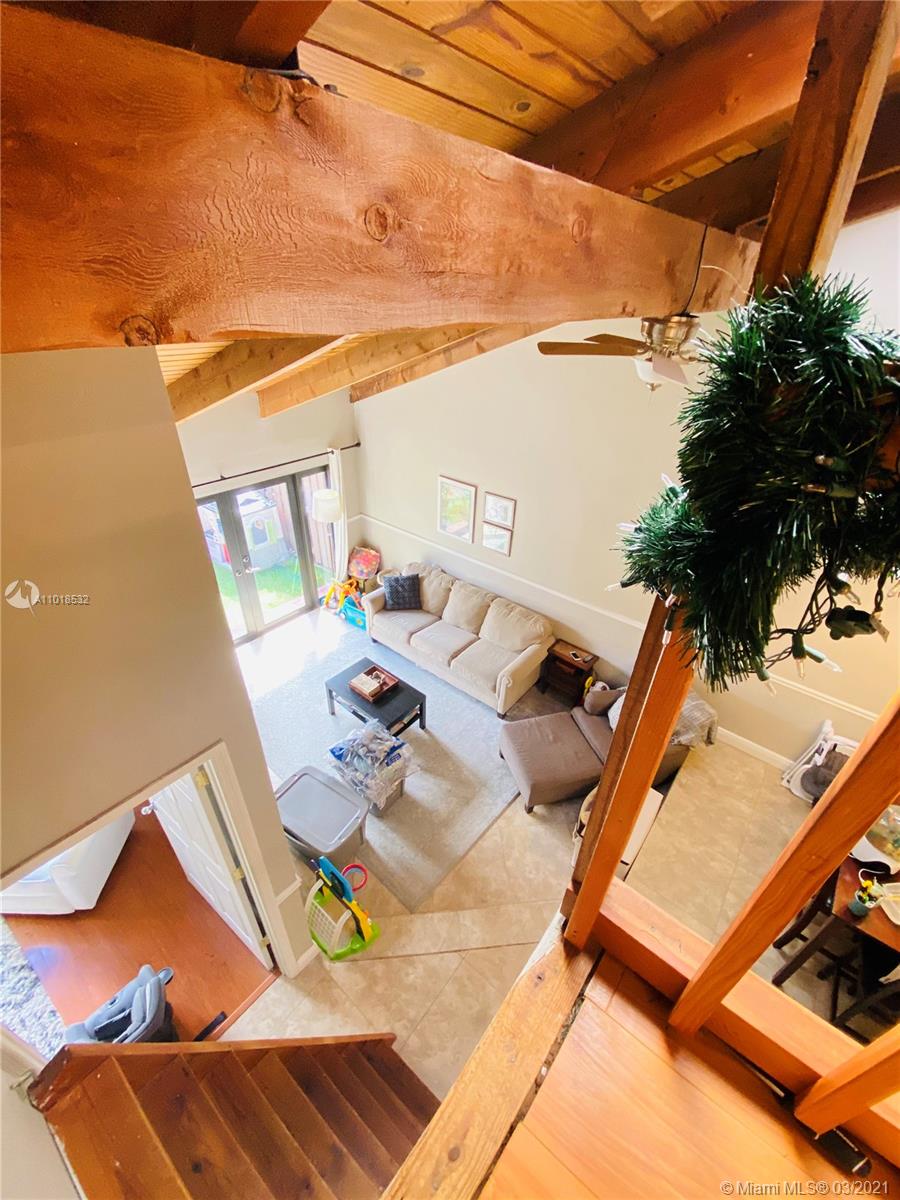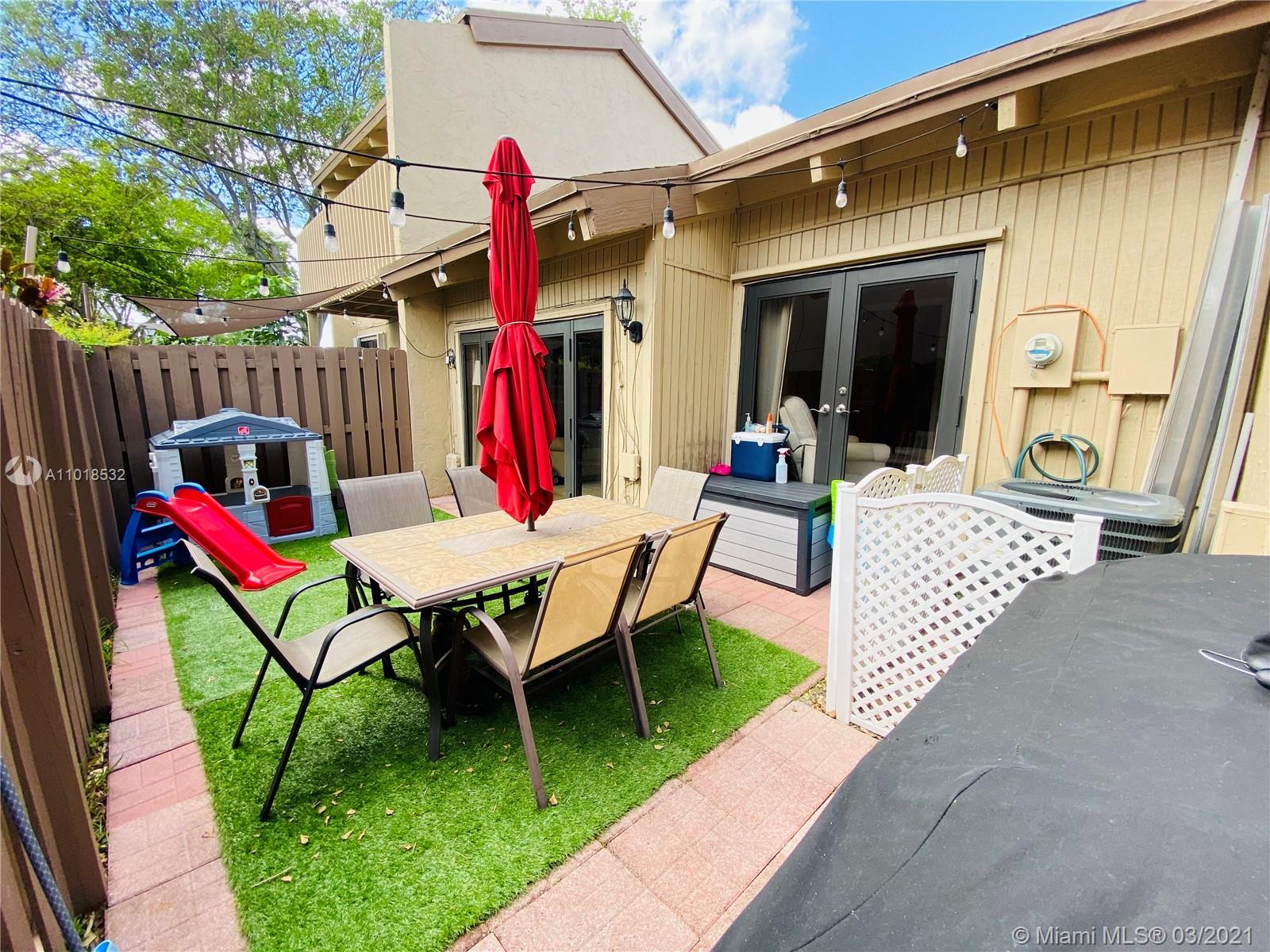 This beautiful 2 bedroom townhouse is fully protected with hurricane impact windows and doors (including the skylights), has a BRAND NEW AC, updated kitchen and bathroom, high vaulted ceilings, 2nd story loft can be used as a 3rd bedroom or office, assigned parking spot is located directly in front of the entrance door, additional parking spaces are just steps away. There is a front patio, which can be used as additional storage, or another seating area, just off the kitchen. The backyard has artificial grass for easy maintenance. The community offers a large, resort-style pool, playground, tennis courts, a pickle ball court, & basketball half court.