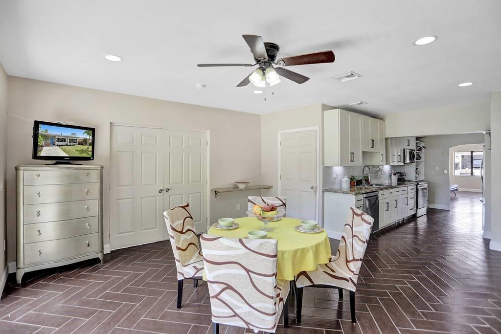 This 5 bedroom, 3 bath home with efficiency/in-law suite has a newly updated kitchen with granite and stainless steel appliances. New floor tiling throughout and a fresh coat of paint will allow you to move right in. The rear yard is spacious and ready for a new outdoor kitchen, pool, and patio as there is room for all 3! Exterior doors from the efficiency and the Master bedroom. New Hurricane rear patio doors.